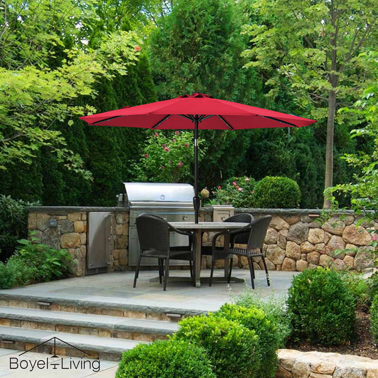 9-ft Patio Umbrella with LED Lights (Red)