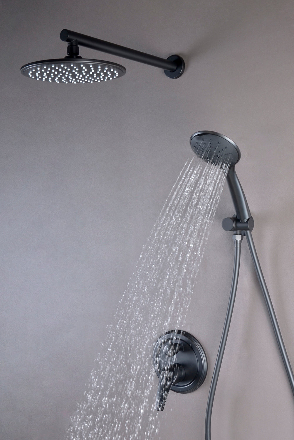 - Ceramic disc cartridge smooth, long-lasting drip-free operation cUPC ceramic disc cartridge, single lever design for effortless flow and temperature control, comes with solid brass shower valve, rainfall shower head, 5-function hand shower, 15.7 in. extra-long shower arm, shower holder and other installation necessary parts