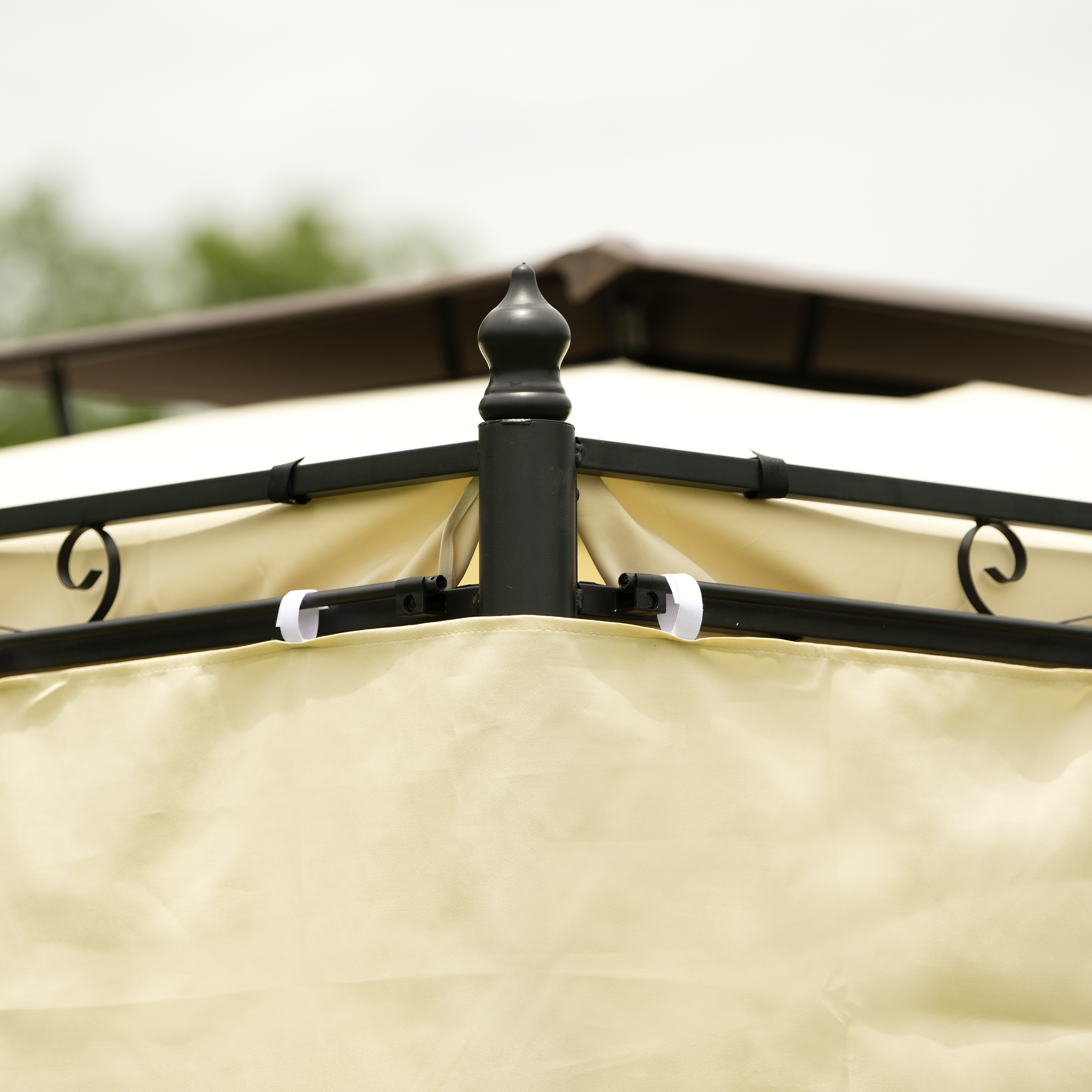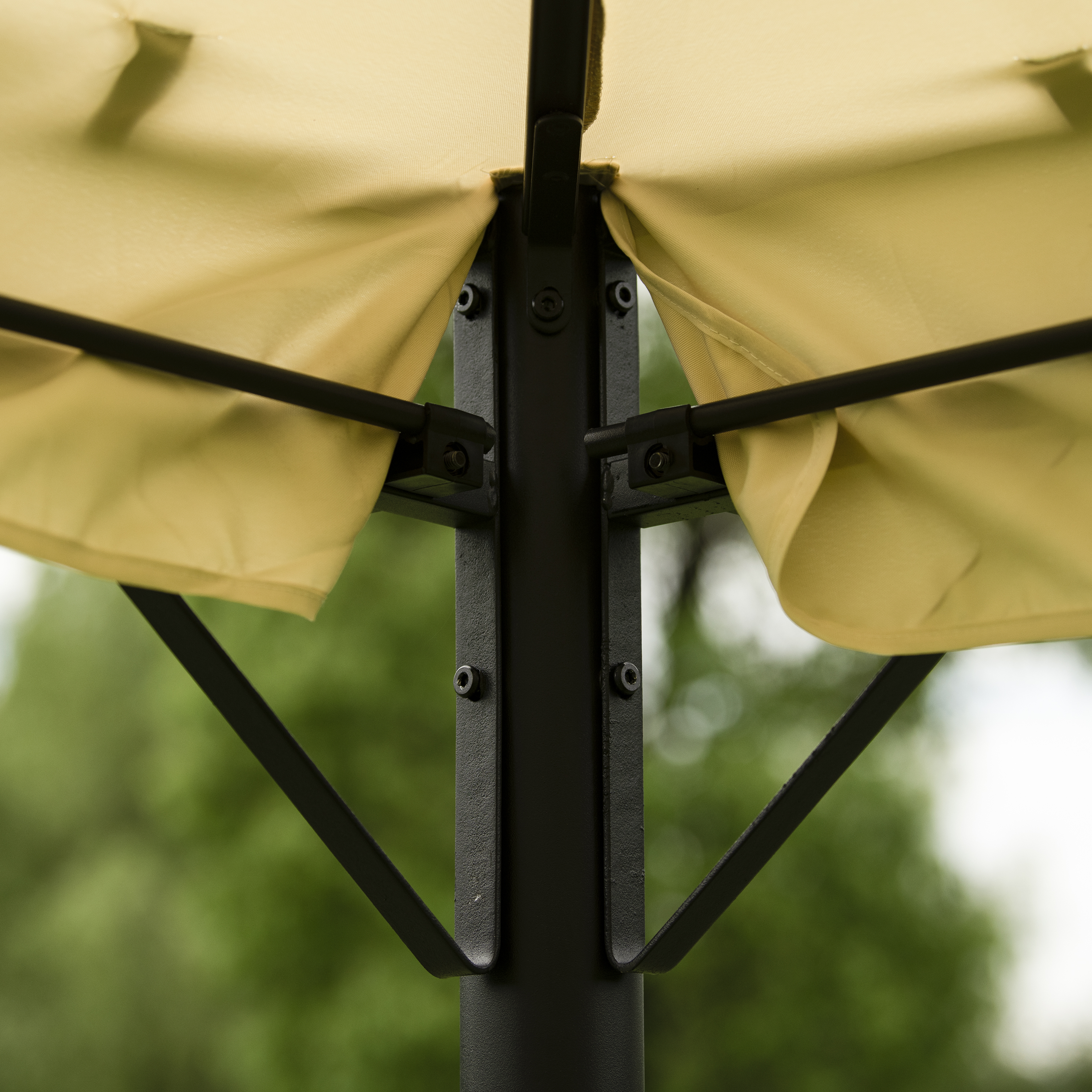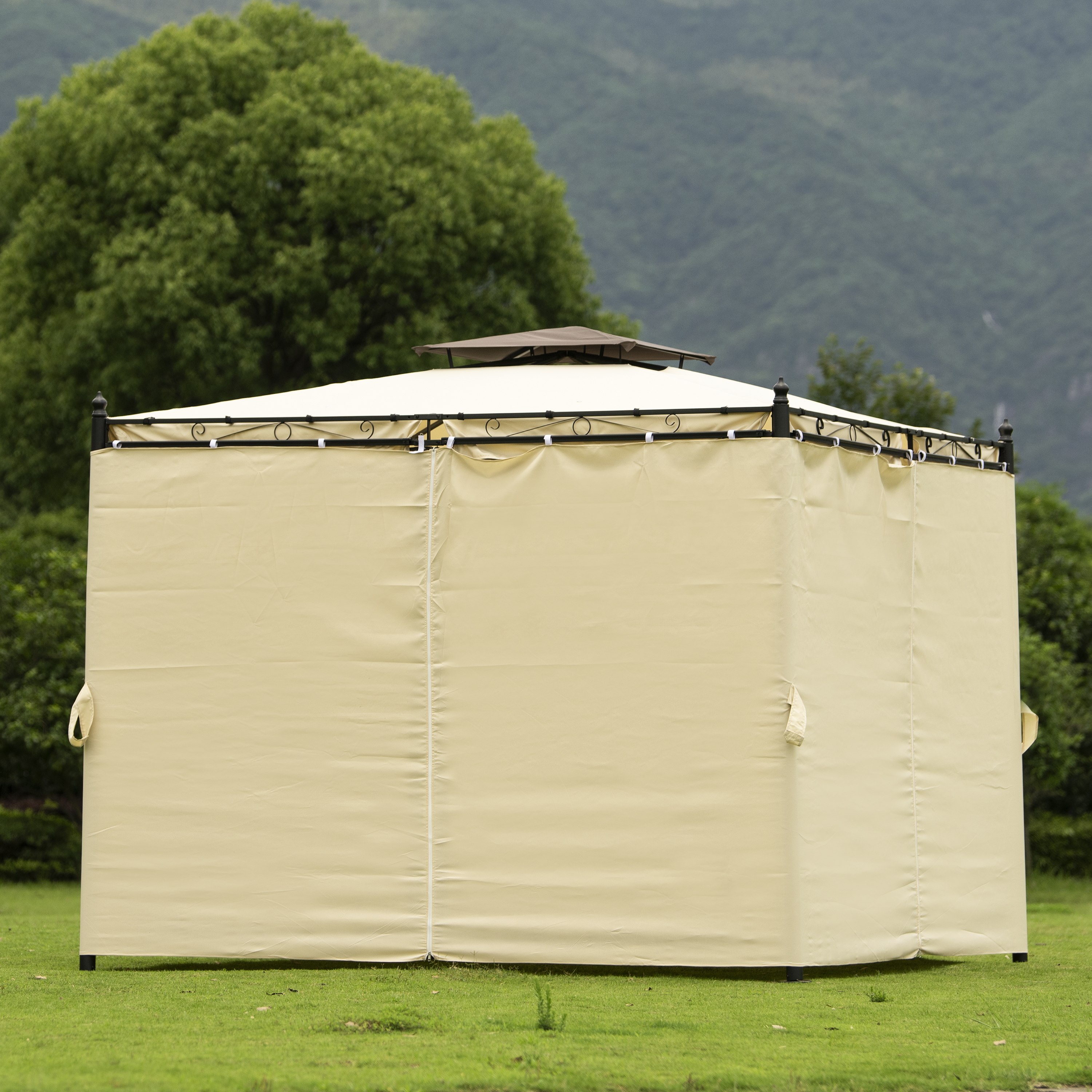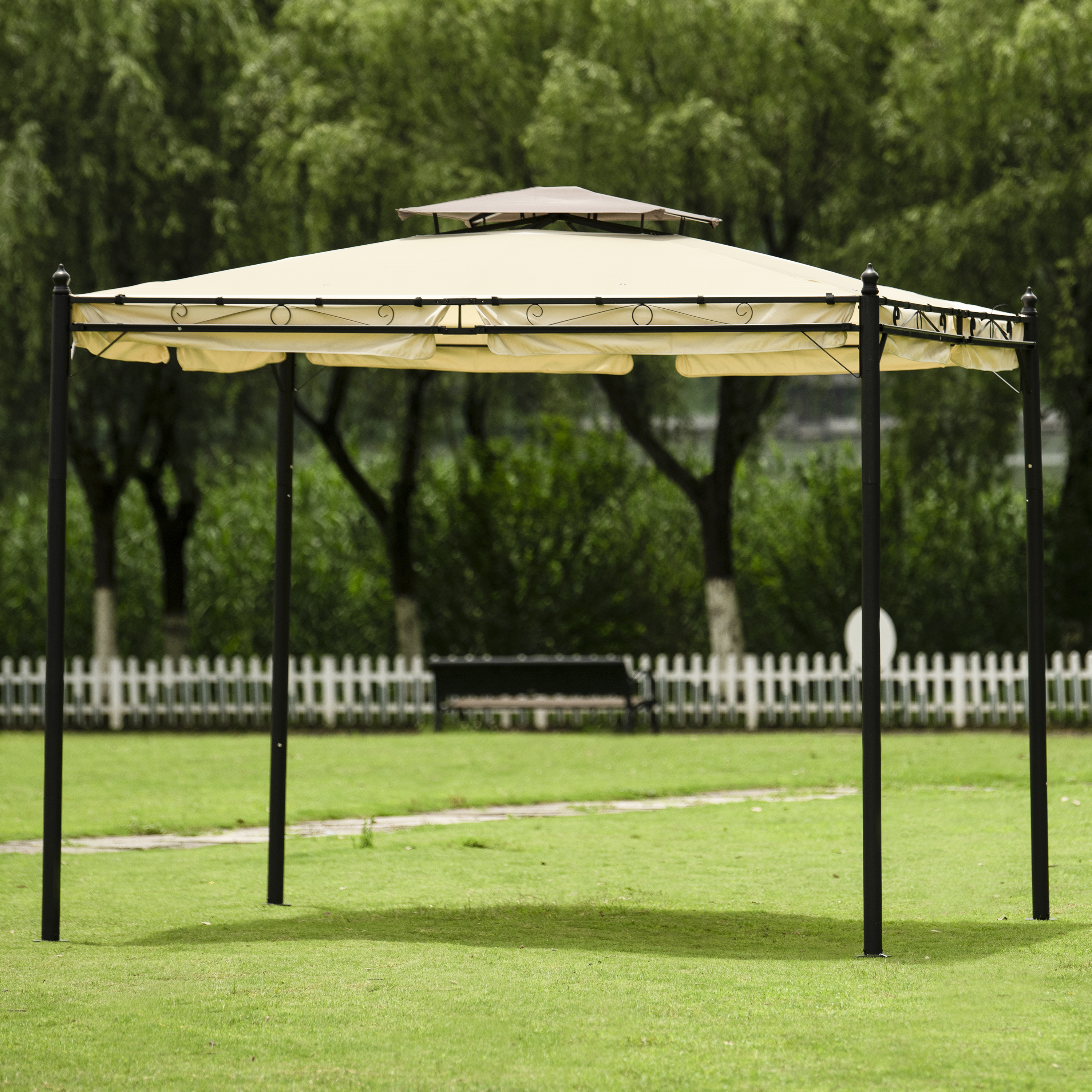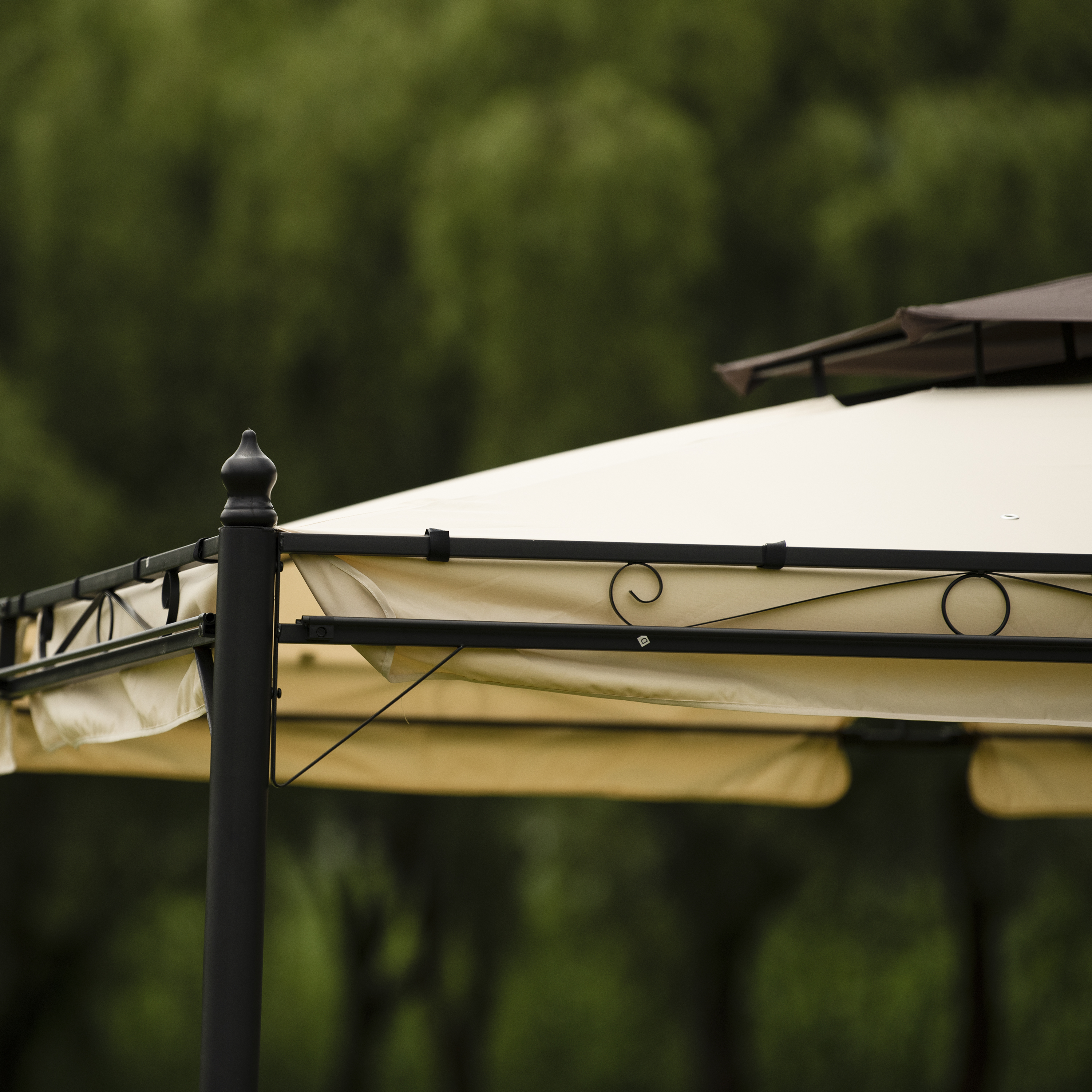 Double Vented Tops---Our gazebo roofs are covered with 180g/�polyester coated with PU paint for water resistance. Designed with 2-tier roofs, it improves air circulation while keeping stable on windy days. 8 built-in holes in the canopy offer better drainage to avoid water accumulation in the rain.
