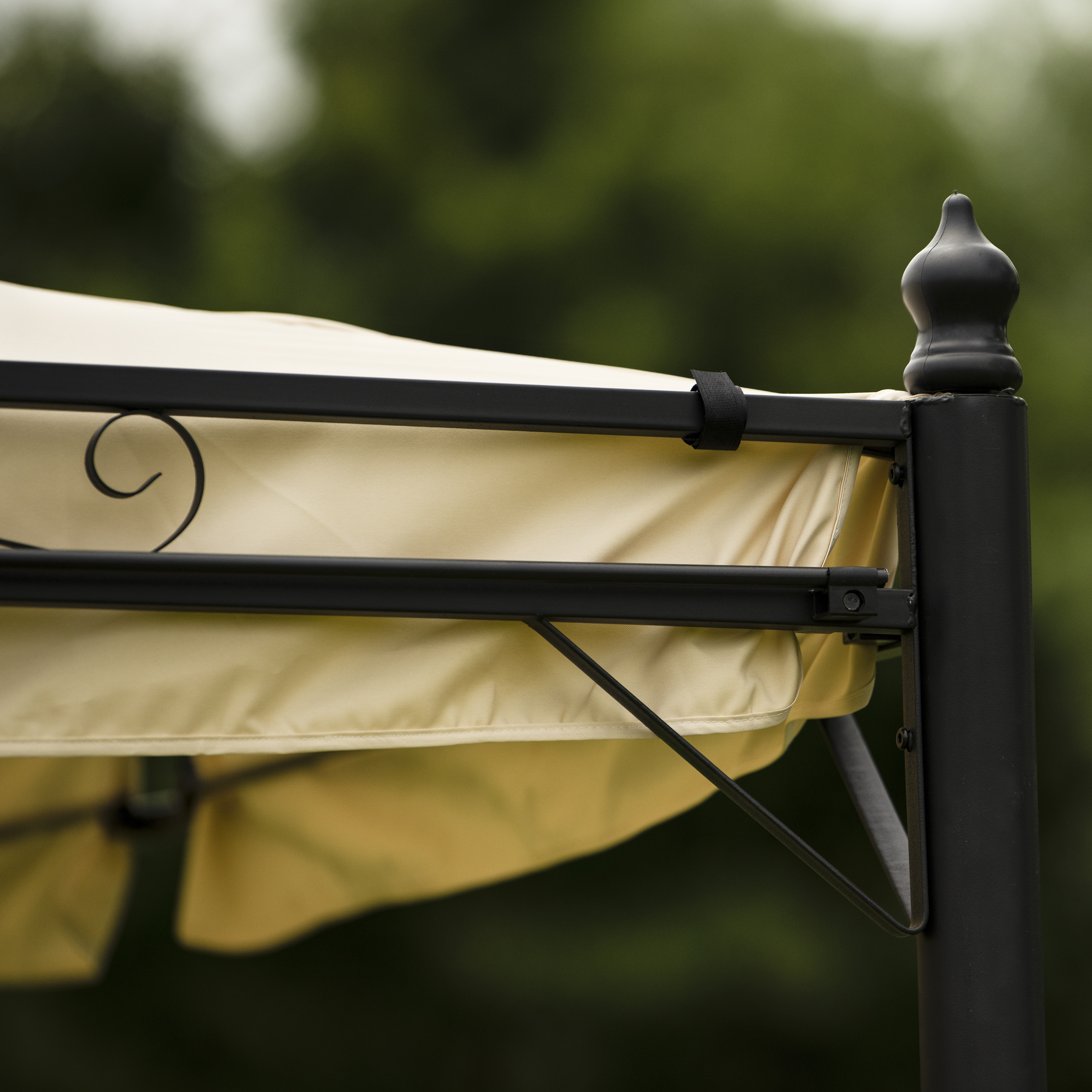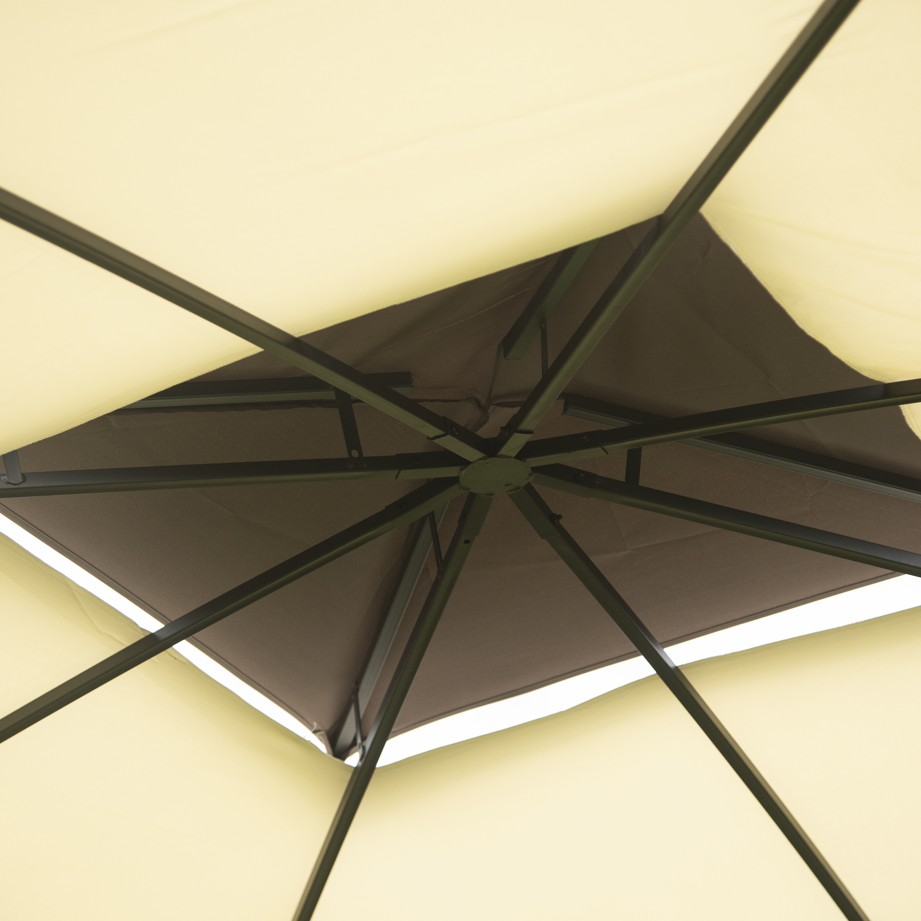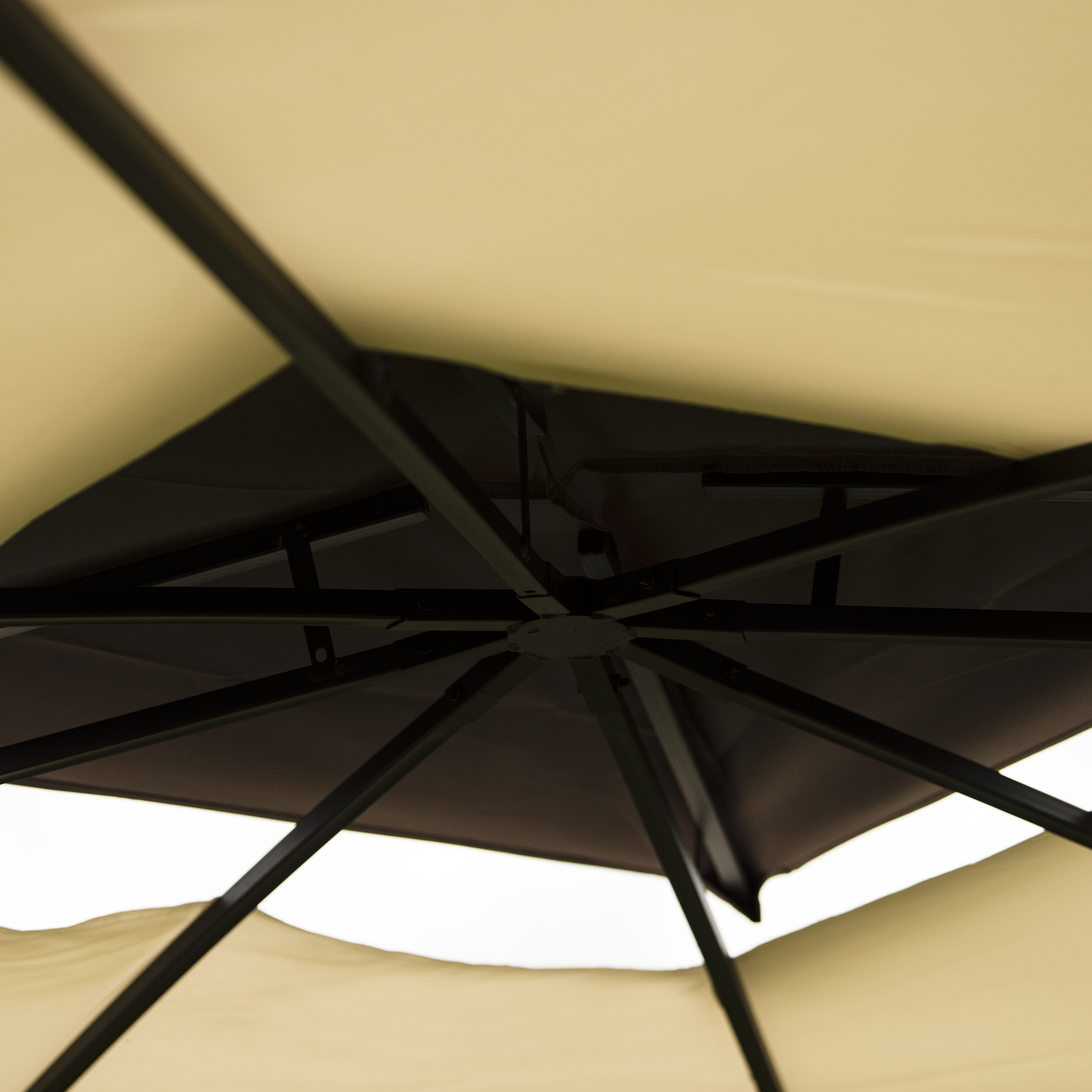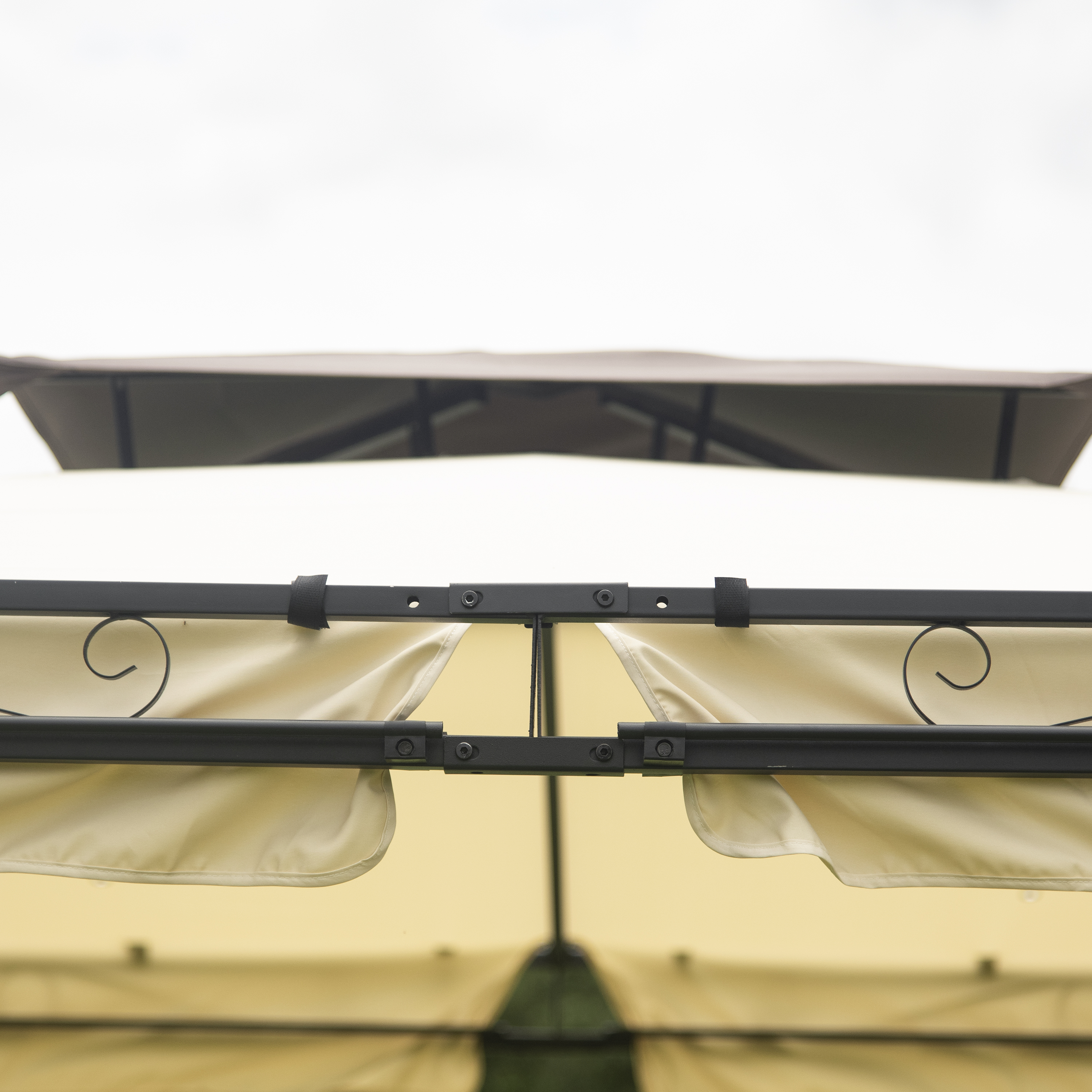 Double Vented Tops---Our gazebo roofs are covered with 180g/�polyester coated with PU paint for water resistance. Designed with 2-tier roofs, it improves air circulation while keeping stable on windy days. 8 built-in holes in the canopy offer better drainage to avoid water accumulation in the rain.