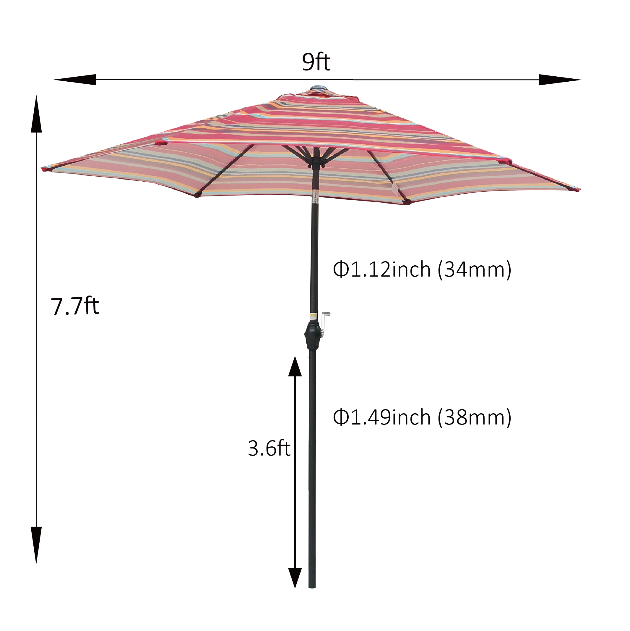 Umbrella Shade Size: | 108"(Dia) x 92.4"(H) |