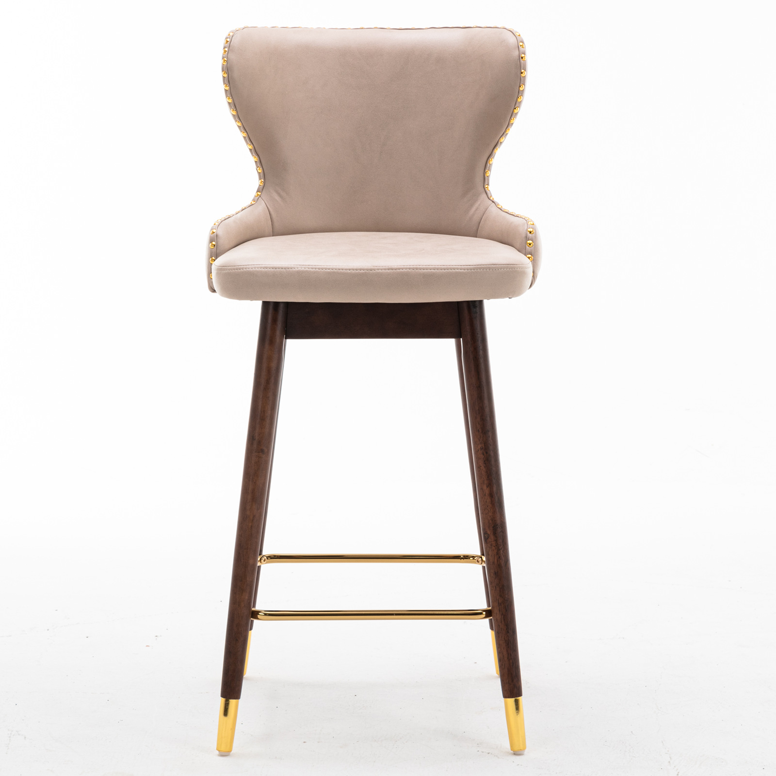 AA Furniture,29.9' Modern Leathaire Fabric bar chairs, Tufted Gold Nailhead Trim Gold Decoration Bar stools,Set of 2 (Beige)