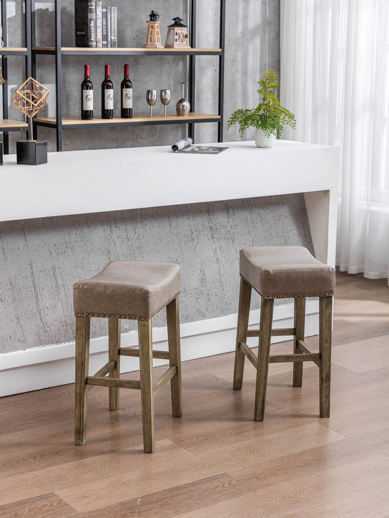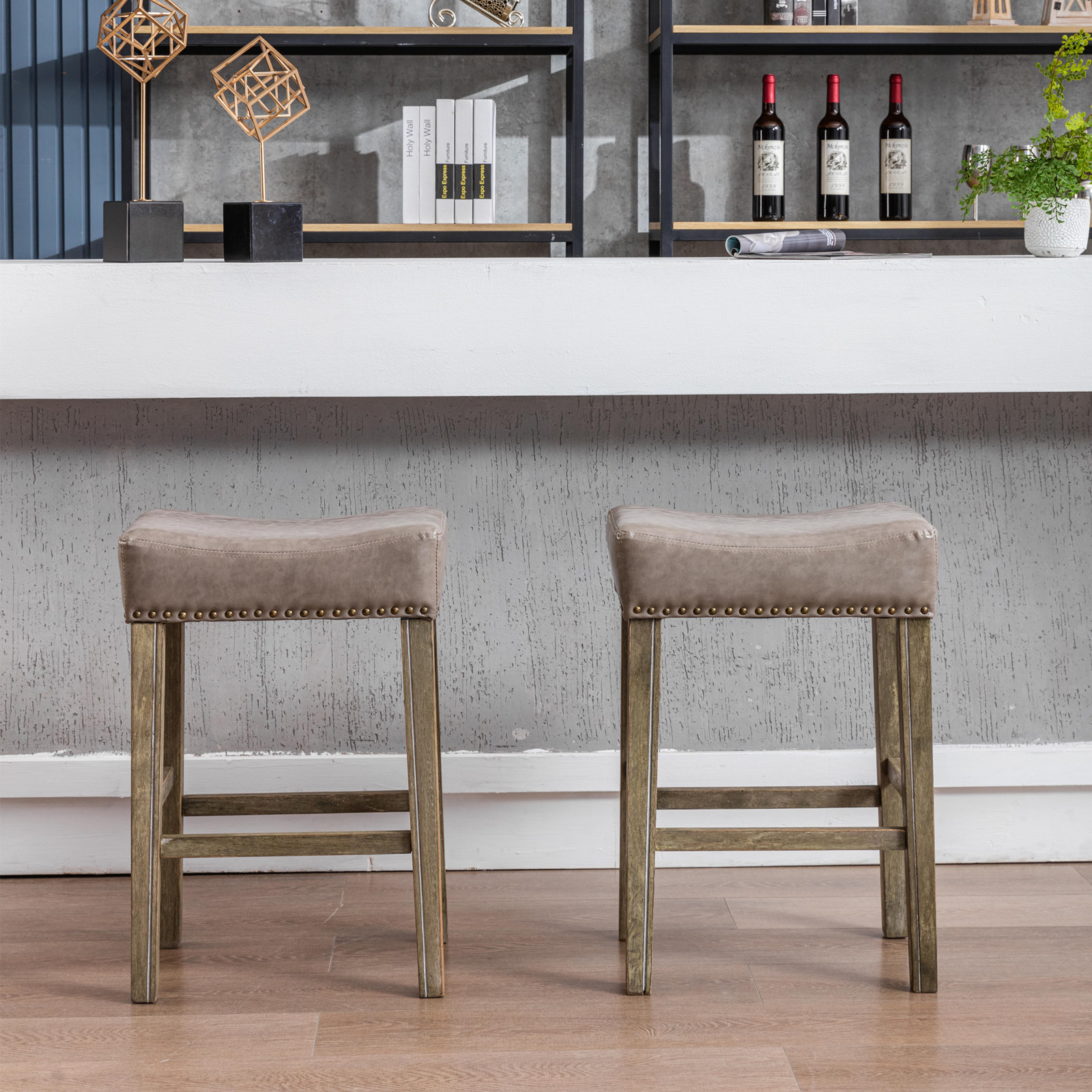 AA Furniture,Counter Height 26' Bar Stools for Kitchen Counter Backless Faux Leather Stools Farmhouse Island Chairs (26 Inch, Gray, Set of 2)