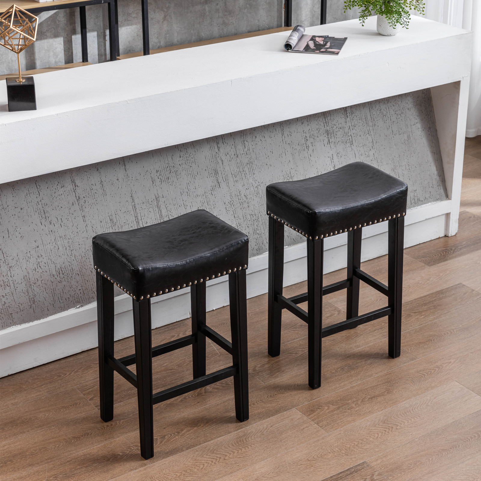AA Furniture,Counter Height 29' Bar Stools for Kitchen Counter Backless Faux Leather Stools Farmhouse Island Chairs (29 Inch, Black, Set of 2)
