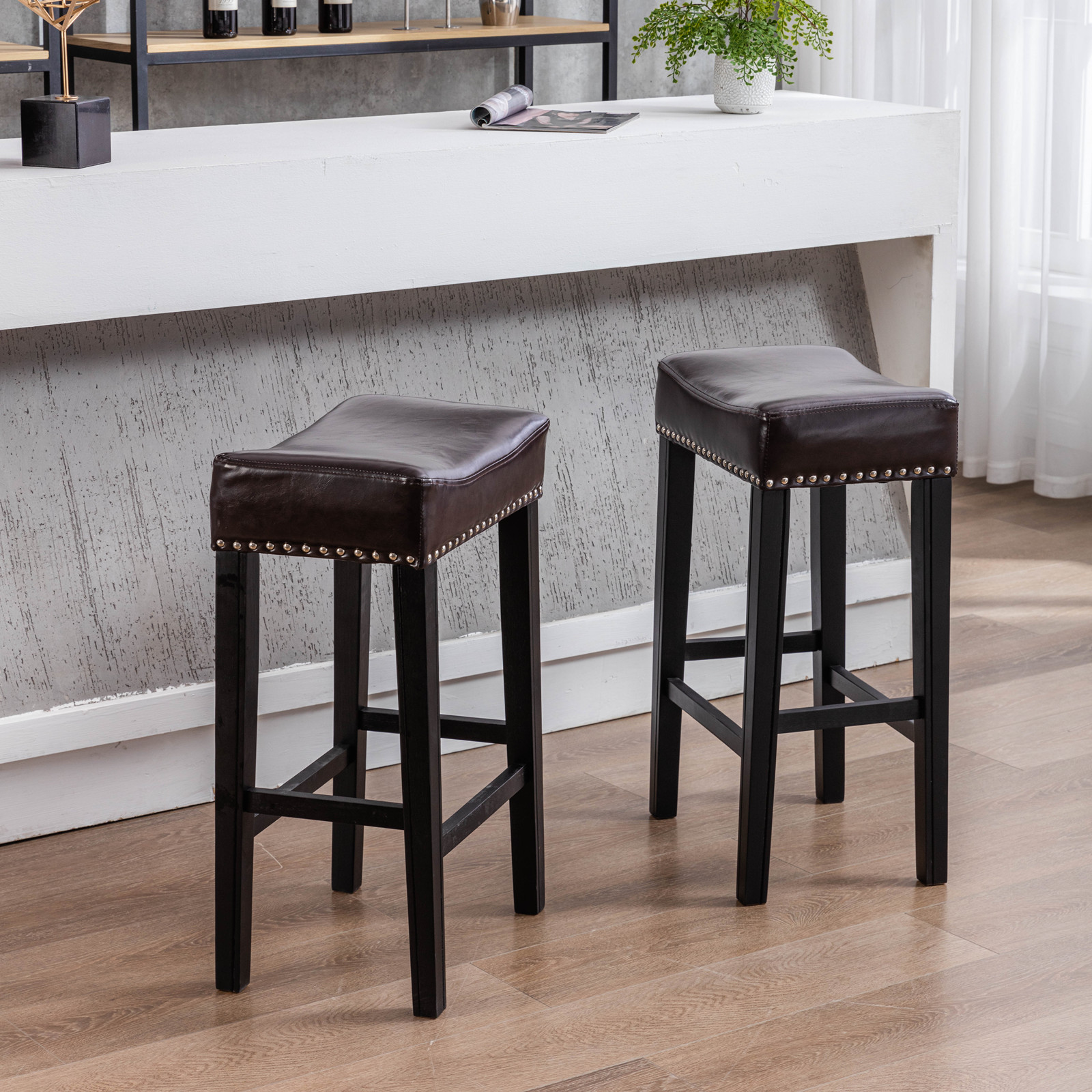 AA Furniture,Counter Height 29' Bar Stools for Kitchen Counter Backless Faux Leather Stools Farmhouse Island Chairs (29 Inch, Brown, Set of 2)