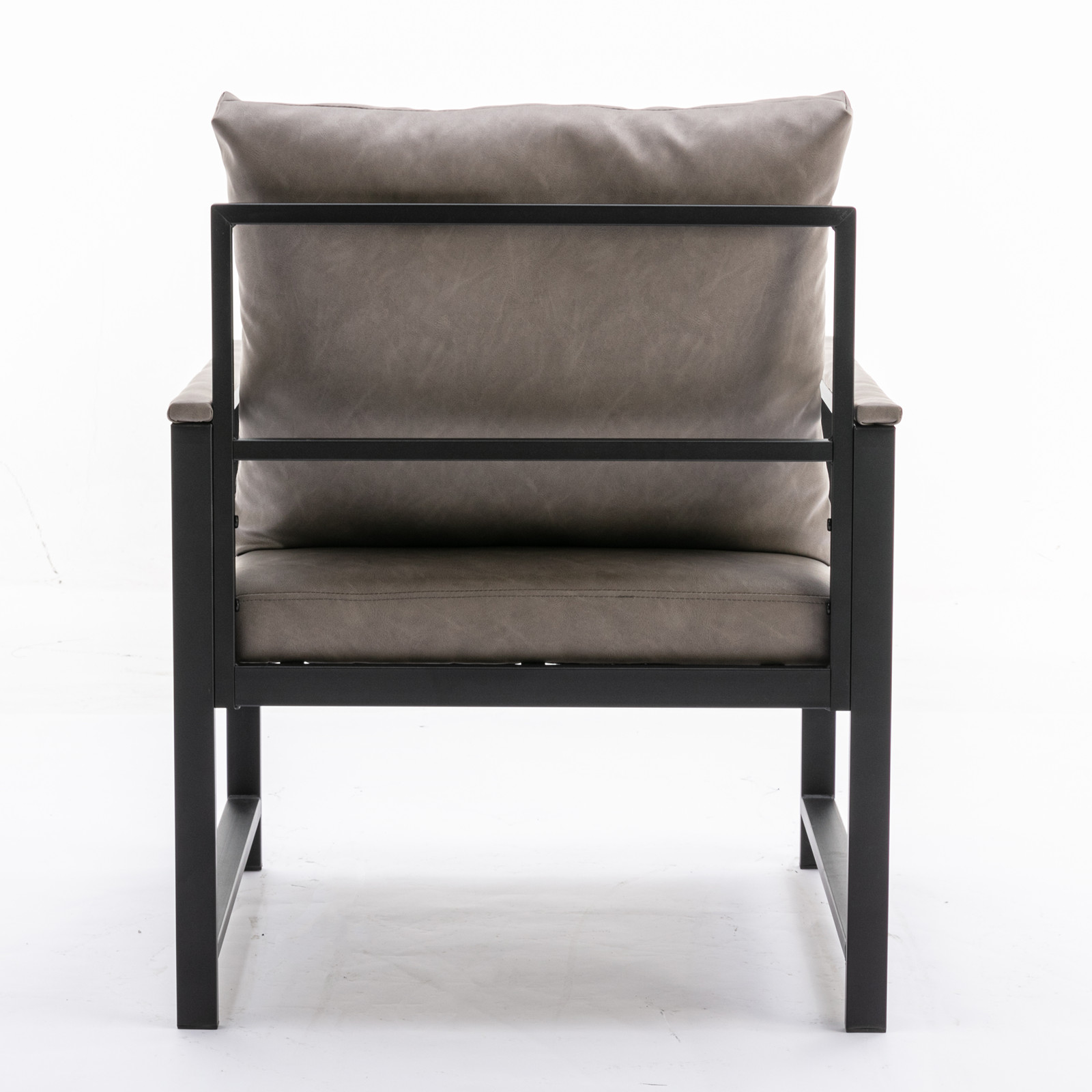 AA Furniture,Modern Faux Leather Accent Chair with Black Powder Coated Metal Frame, Single Sofa for Living Room Bedroom, Gray