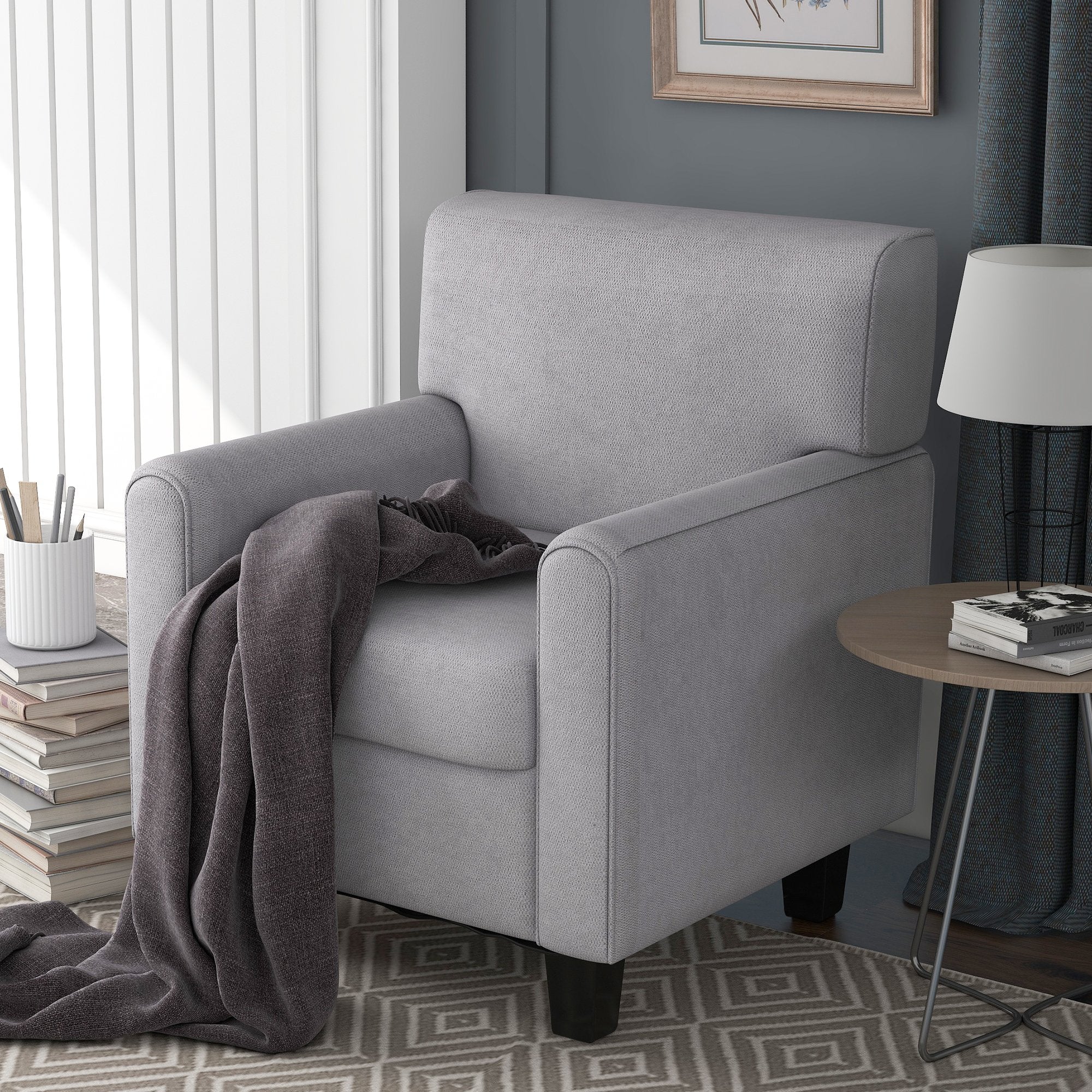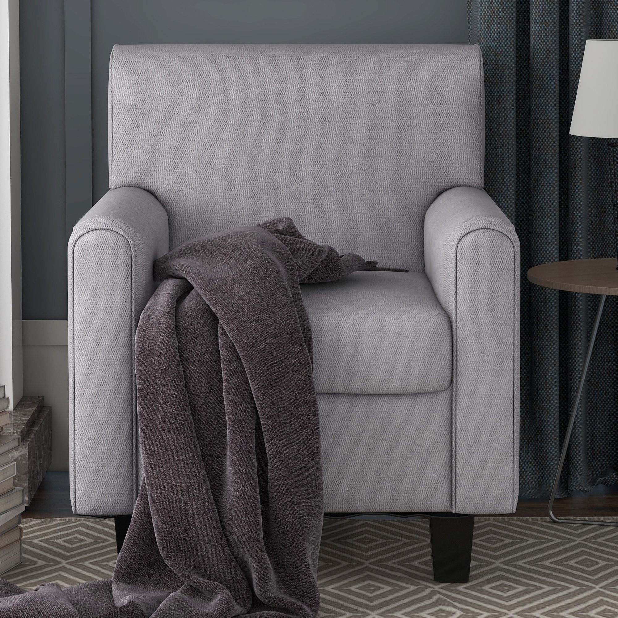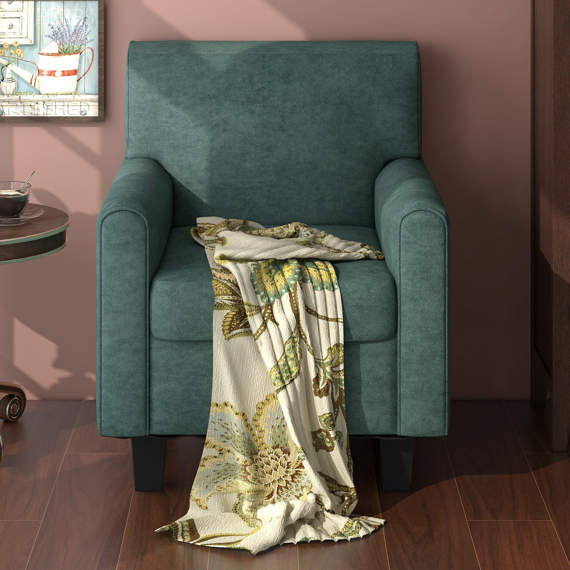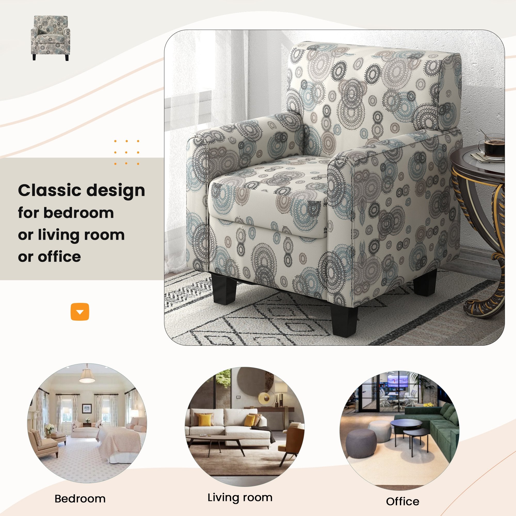 This armchair is the perfect pick for your home, whether it's used to round out your living room look or acting as the star of an inviting reading nook. It's built on top of four tapered feet crafted from solid wood, and its frame strikes an understated silhouette brimming with classic charm.