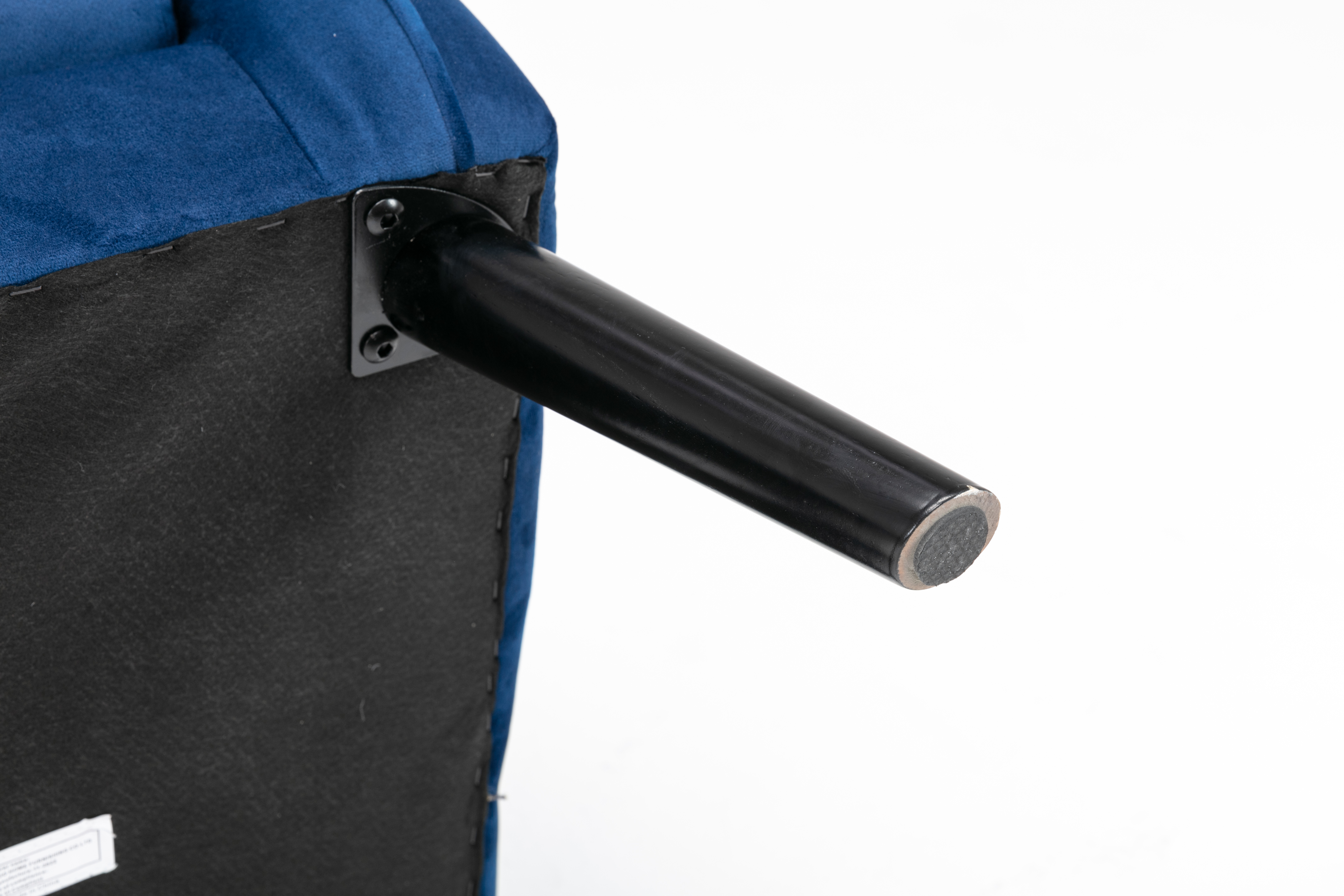 This accent armchair makes a great statement in your living room, bedroom, reception office, and most of the contemporaryhome decorIncludes: One (1) Accent chairMaterial: Fabric, metla, foamColor: Navy and blackAssembly requiredDimensions: 33.07 inches high x 28 inches wide x 29.1 inches deepAccent chair ,Leisure chair, Arm chair ,
