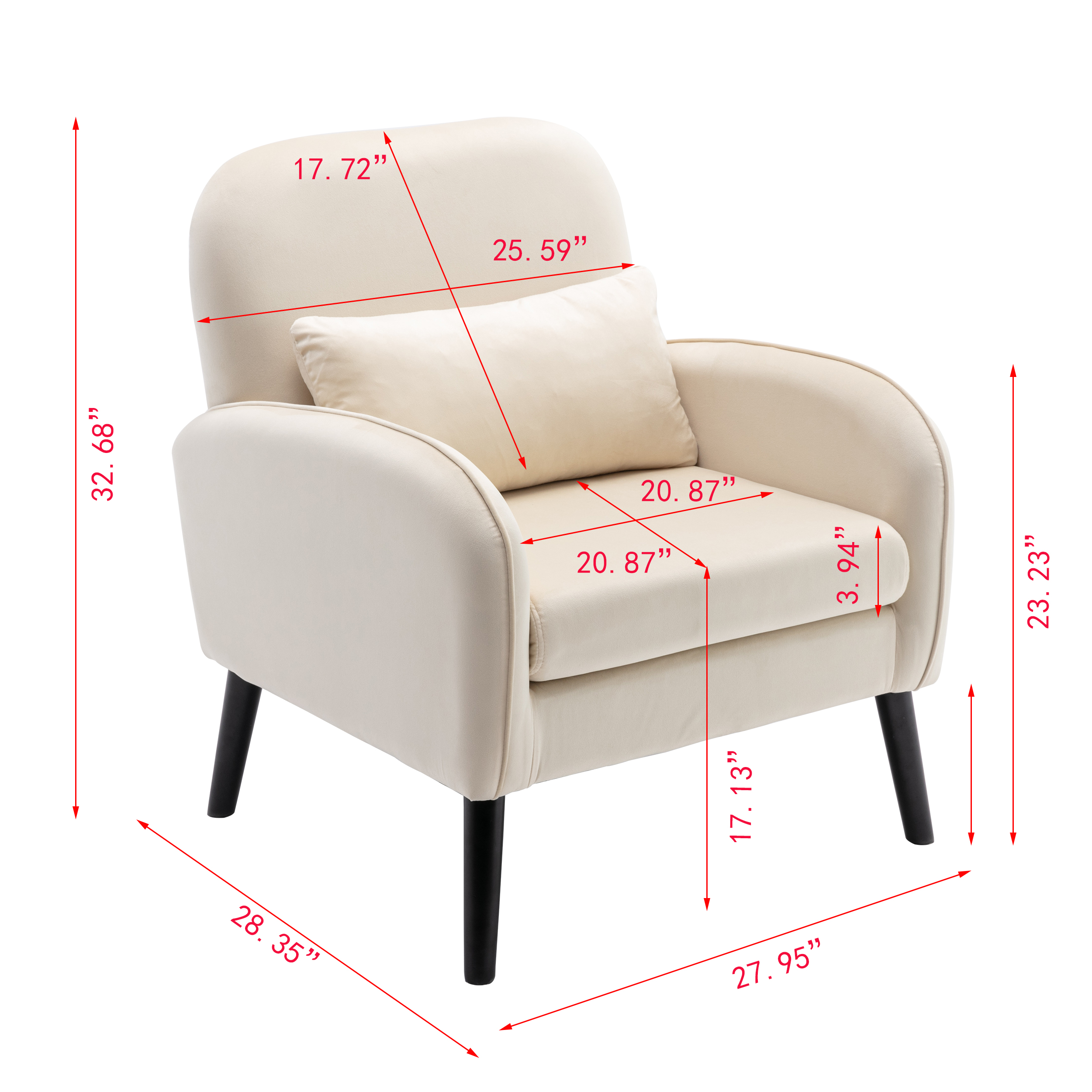 Accent chair with back and seat cushion with fabric , the cushions are romovable and one waist cushion.This accent armchair makes a great statement in your living room, bedroom, reception office, and most of the contemporary home decor Includes: One (1) Accent chair
