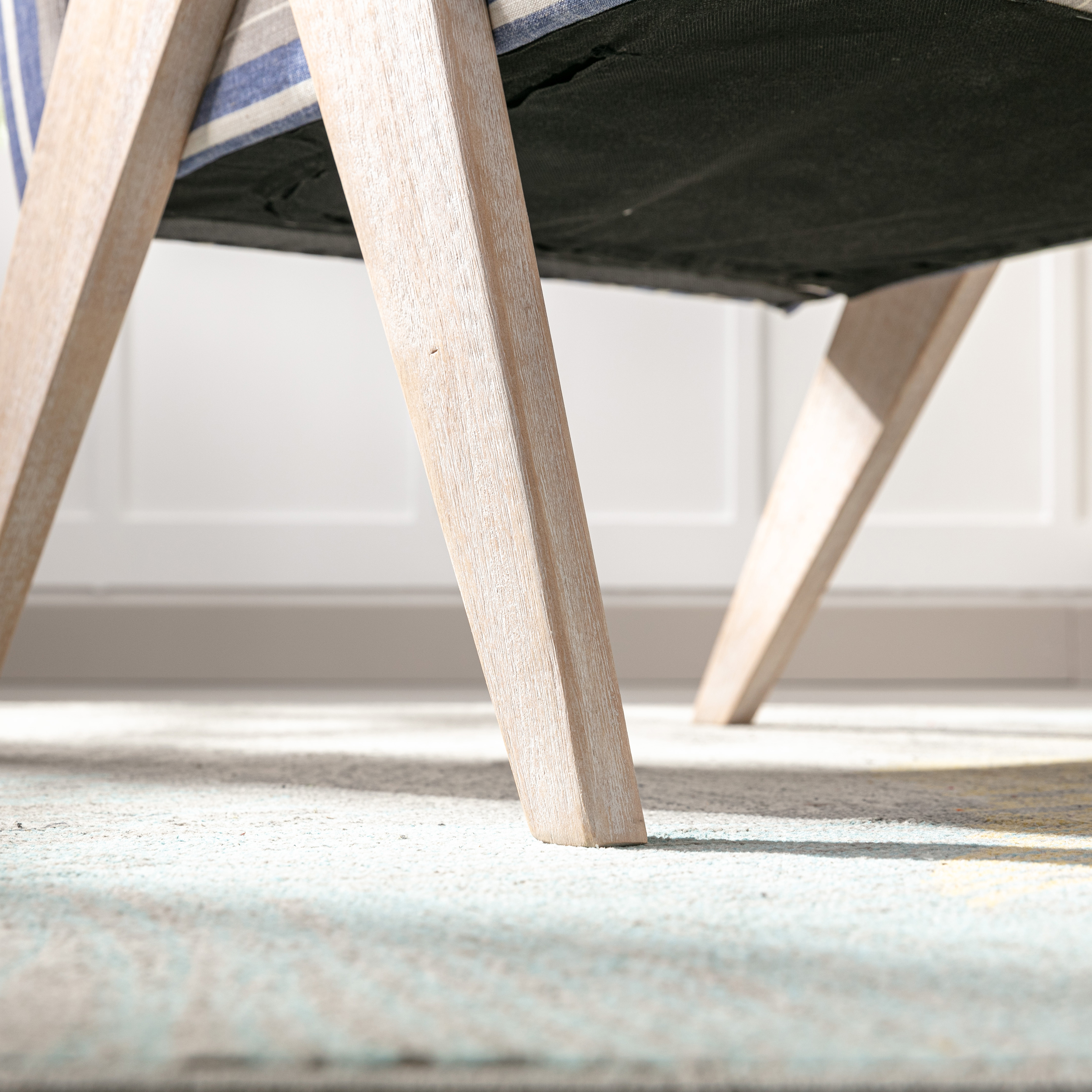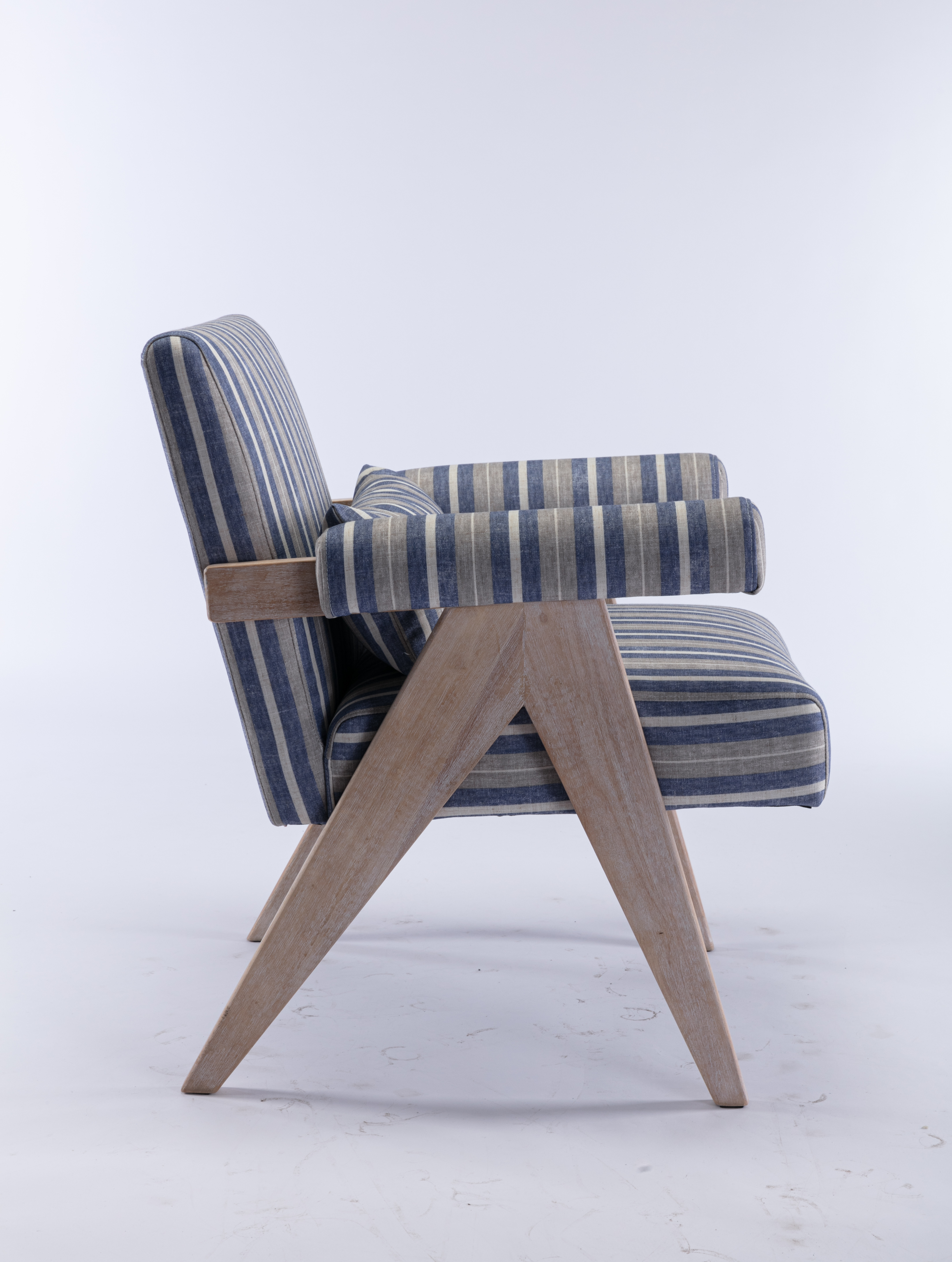 Accent chair, KD rubber wood legs with black finish. Fabric cover the seat. With a cushion.Blue Stripe