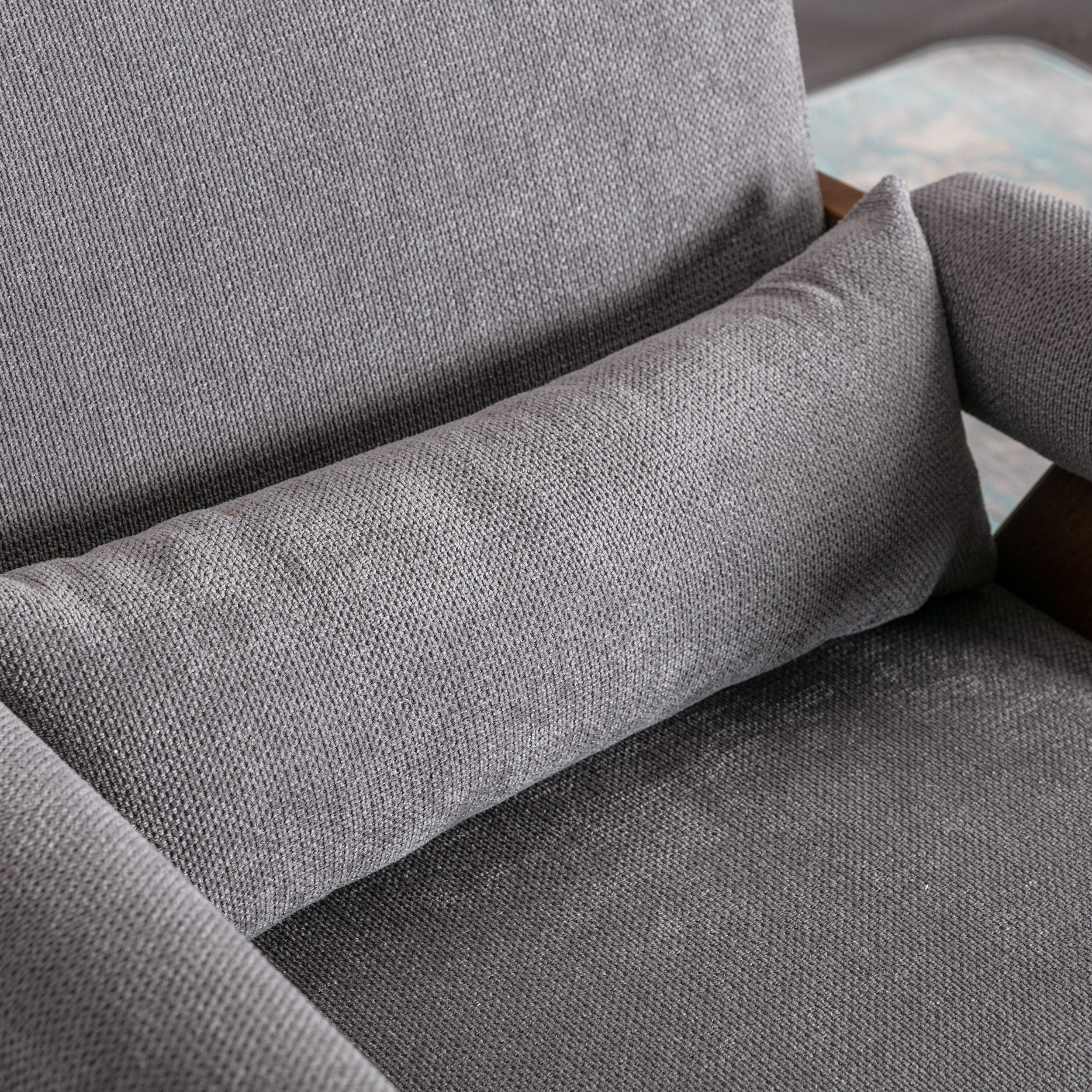 Accent chair, KD rubber wood legs with Walnut finish. Fabric cover the seat. With a cushion.Grey