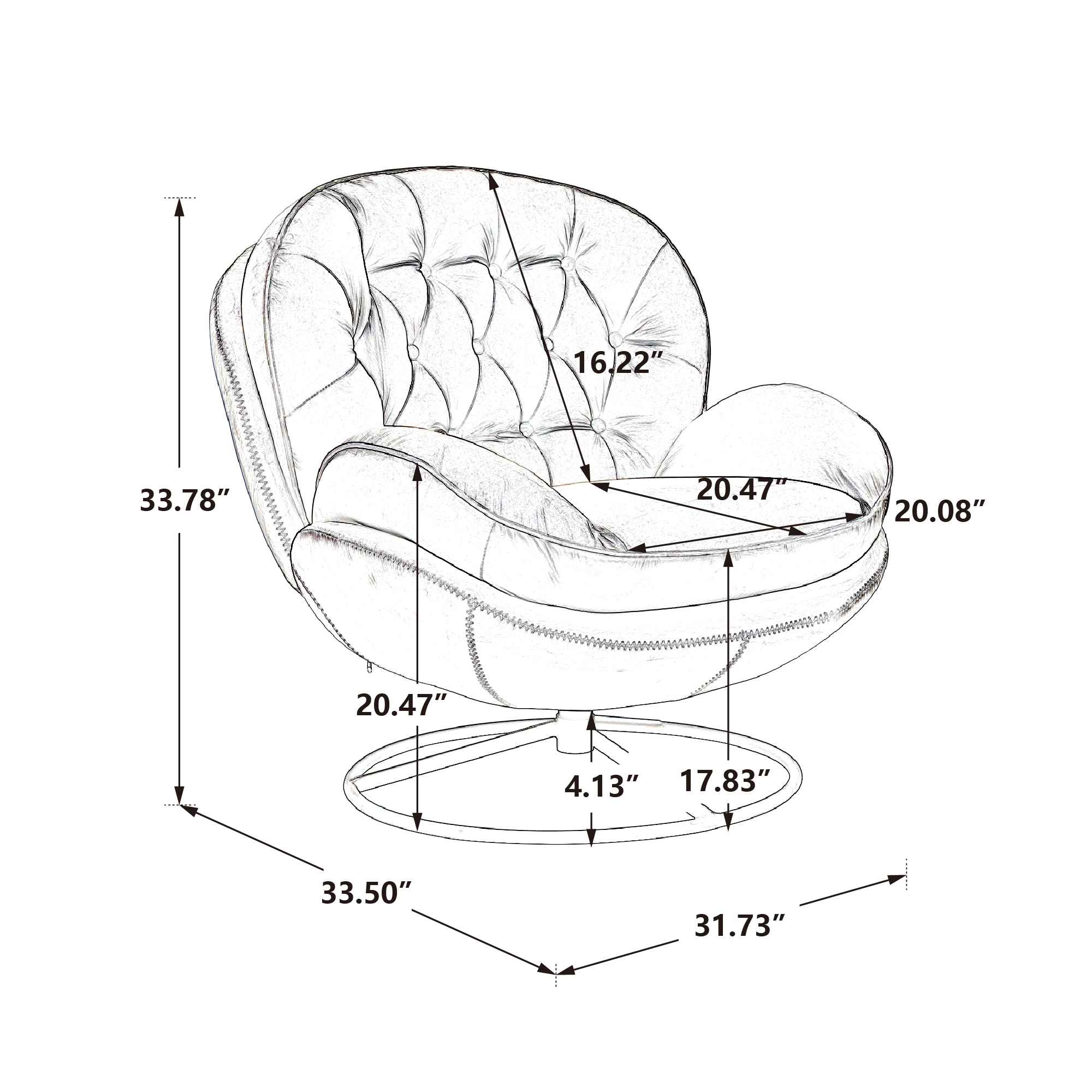 1. Chair Dimensions:31.73"W x 33.50"D x 33.78 H
