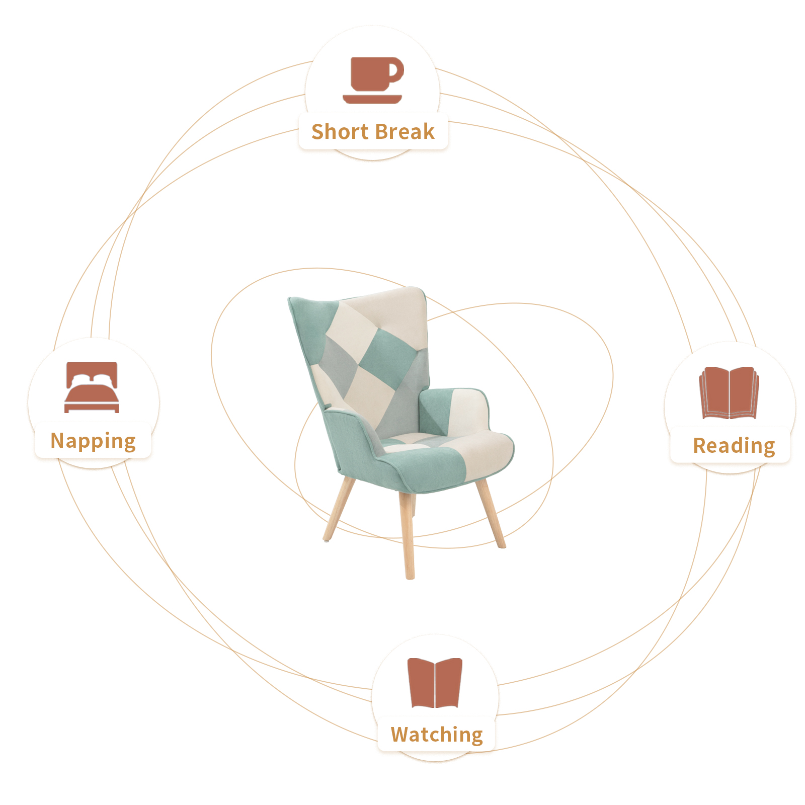 - Special Design: This accent chair with an ottoman set has a creative splicing cloth surface and a curved tall back. Its design makes it eye-catching and beautiful, compared with other chairs. Otherwise, the armchair also can be used as a home decoration