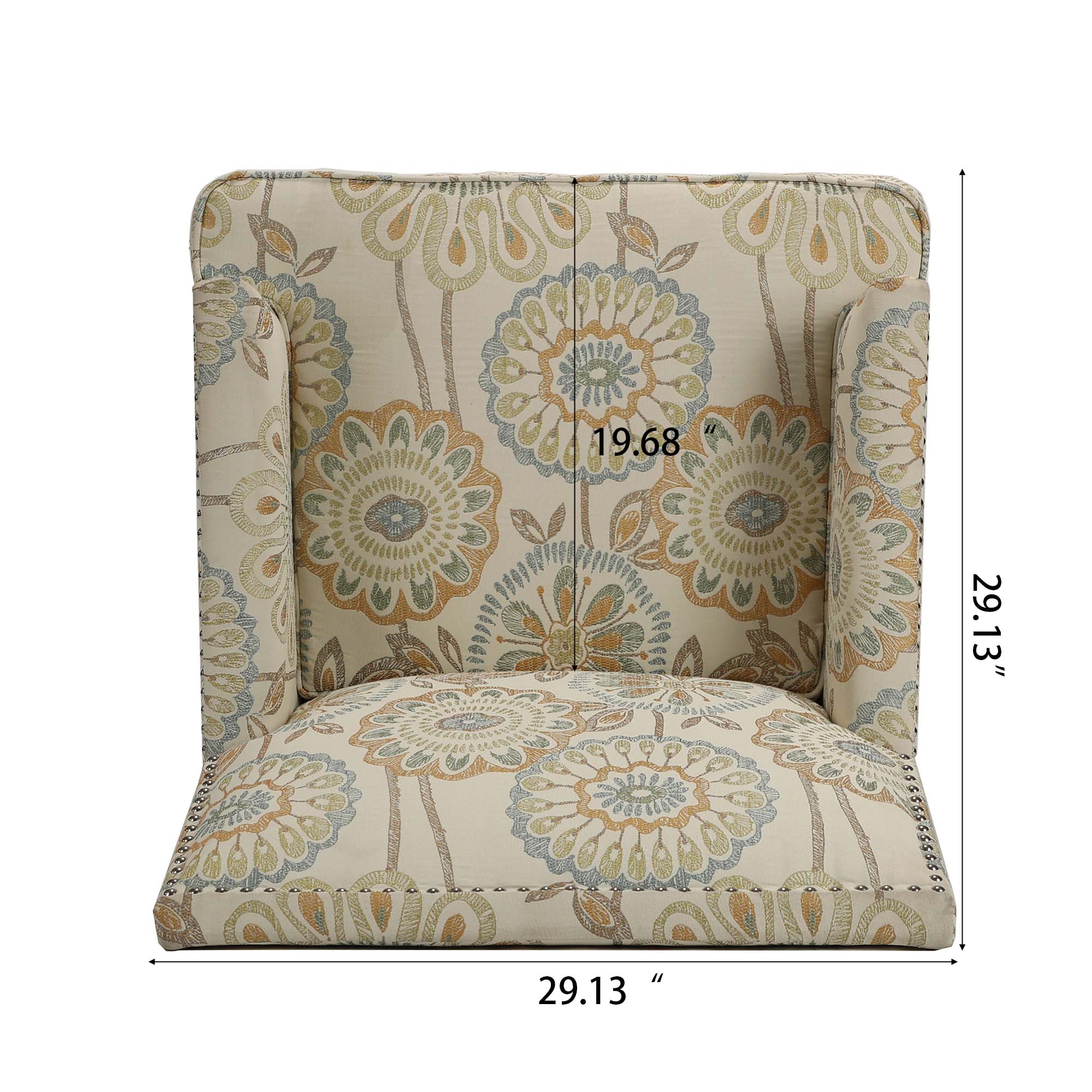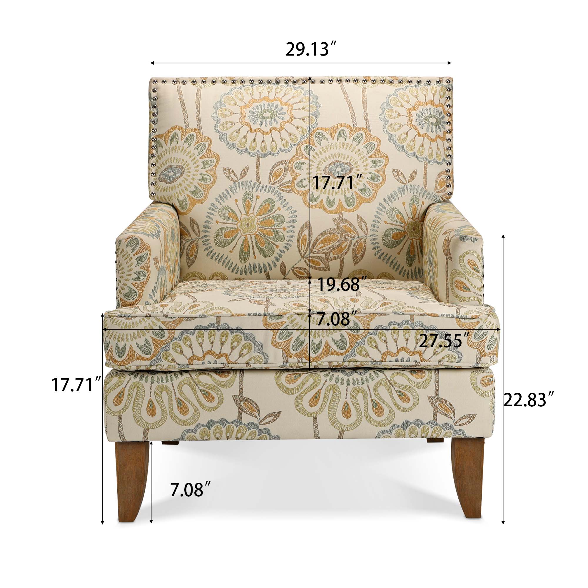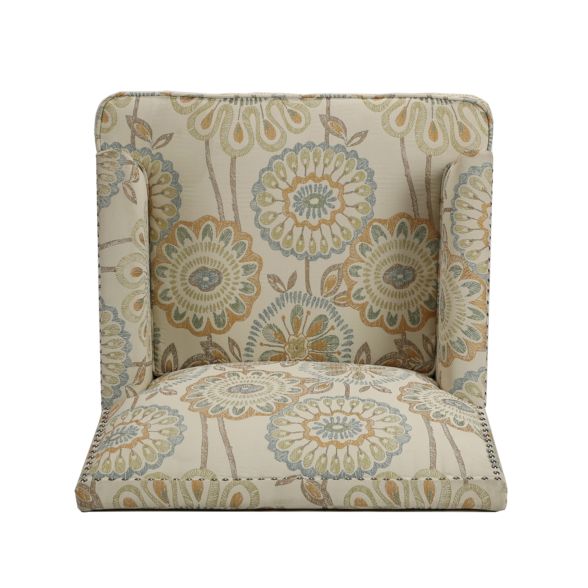 This armchair brings a traditional style to your office or living room. It's built with plywood and a solid wood frame that sits on tapered legs with an ancient walnut hue, while its square arms and tight back showcase polyester blend upholstery. The printed fabric pattern features a design. The seat is filled with foam for just the right amount of support. We love how metallic nailhead trim adds a dash of refined style.