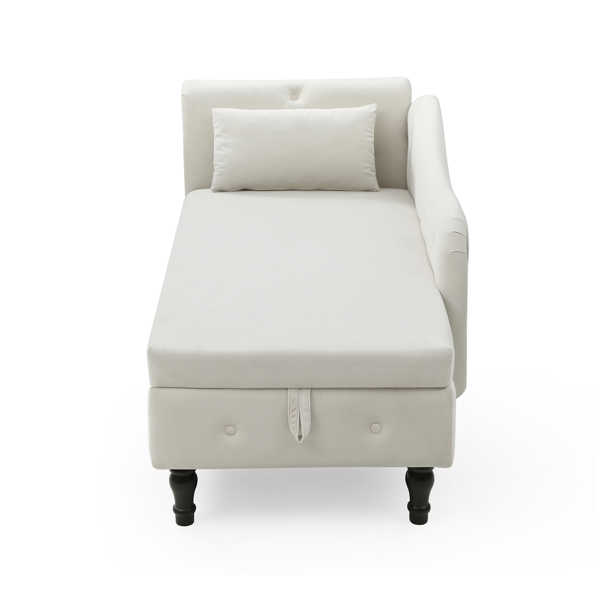 Aijia 60' Velvet Multifunctional Storage Chaise Lounge Buttons Tufted Nailhead Trimmed Solid Wood Legs with 1 Pillow , Beige
