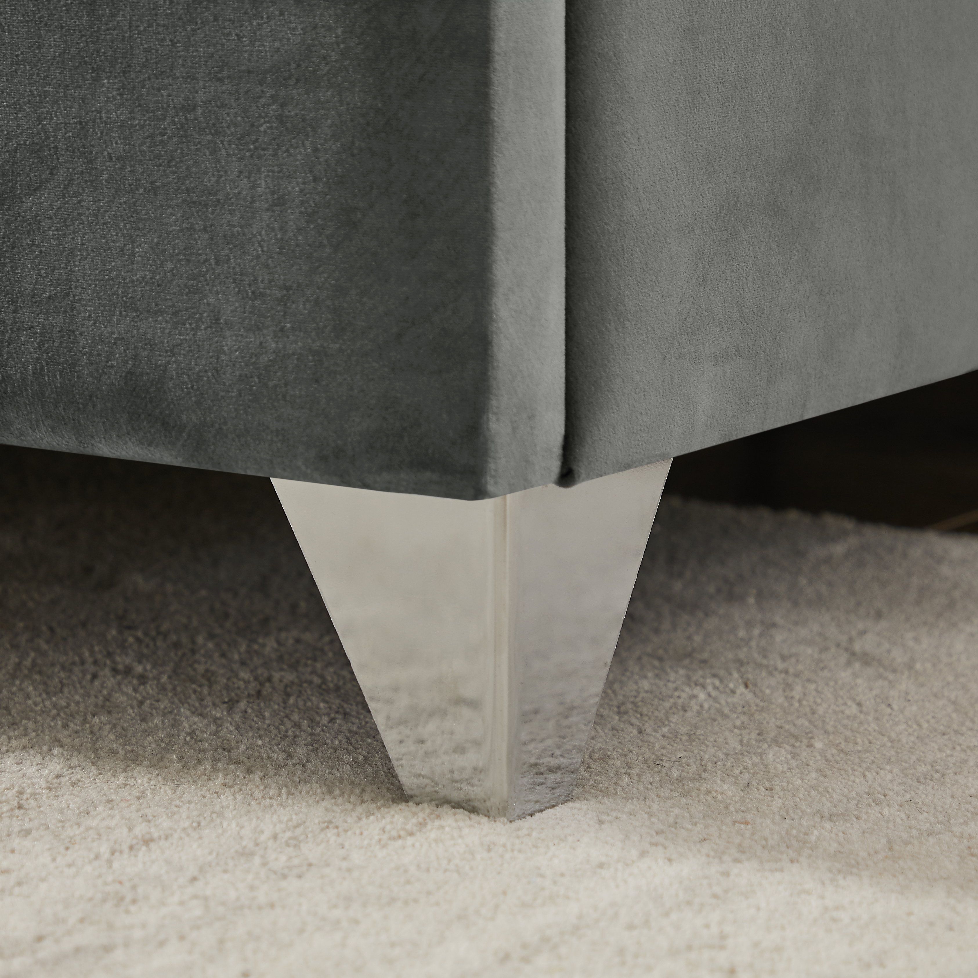 This beautiful Upholstered Platform Bed features an upholstered headboard that adds a contemporary chic look to your bedroom and is filled with thick foam to add extra comfort. Sturdy wood frame construction and a wooden slat system add extra stability and safety.