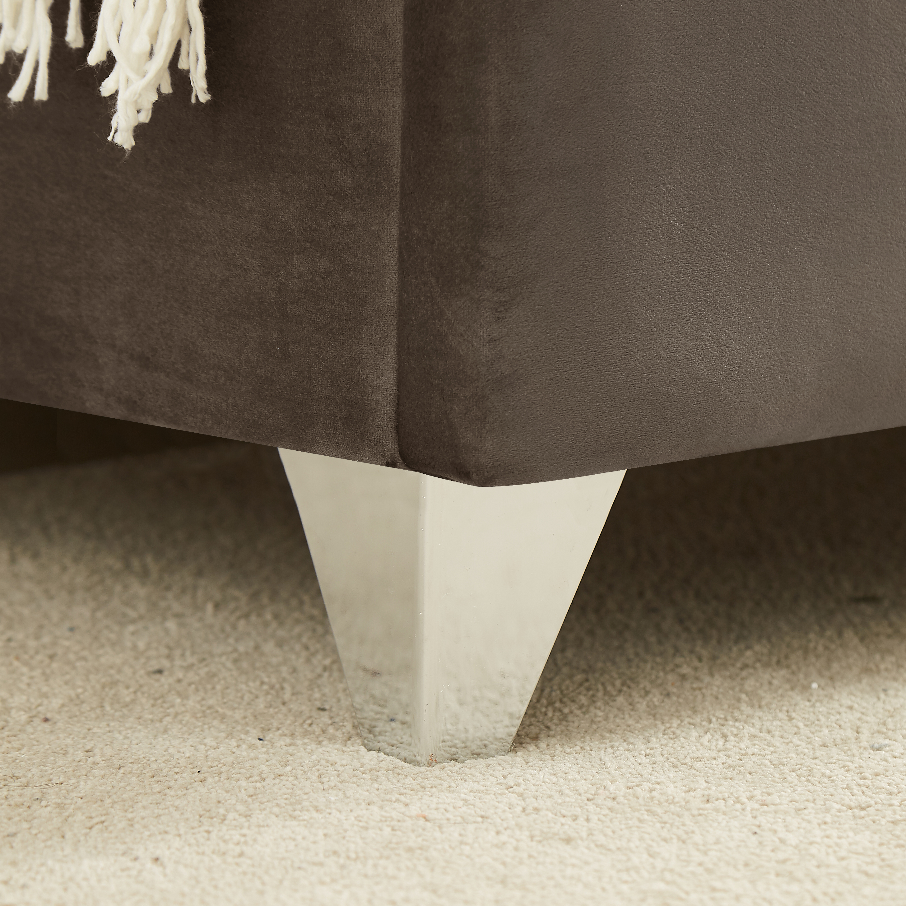 This beautiful Upholstered Platform Bed features an upholstered headboard that adds a contemporary chic look to your bedroom and is filled with thick foam to add extra comfort. Sturdy wood frame construction and a wooden slat system add extra stability and safety.