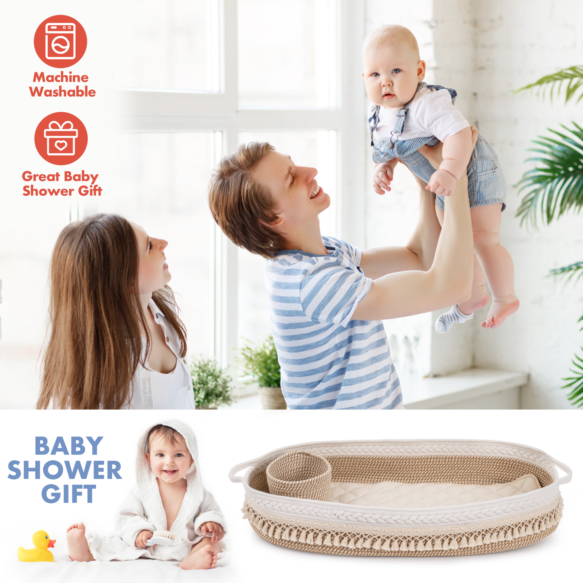 BABY SHOWER GIFT: Whether They Are Having A Boy Or A Girl, Our Boho Inspired Baby furniture will Suit Either. Calming Colours, Complimentary Style And Neutral Design will Enhance The Features Of Boy’s And Girl’s Nursery Decor. Wether It’s Farmhouse, Contemporary Or Any Other Style, This Basket will Be A Beautiful Gift For Your Friends And Family.