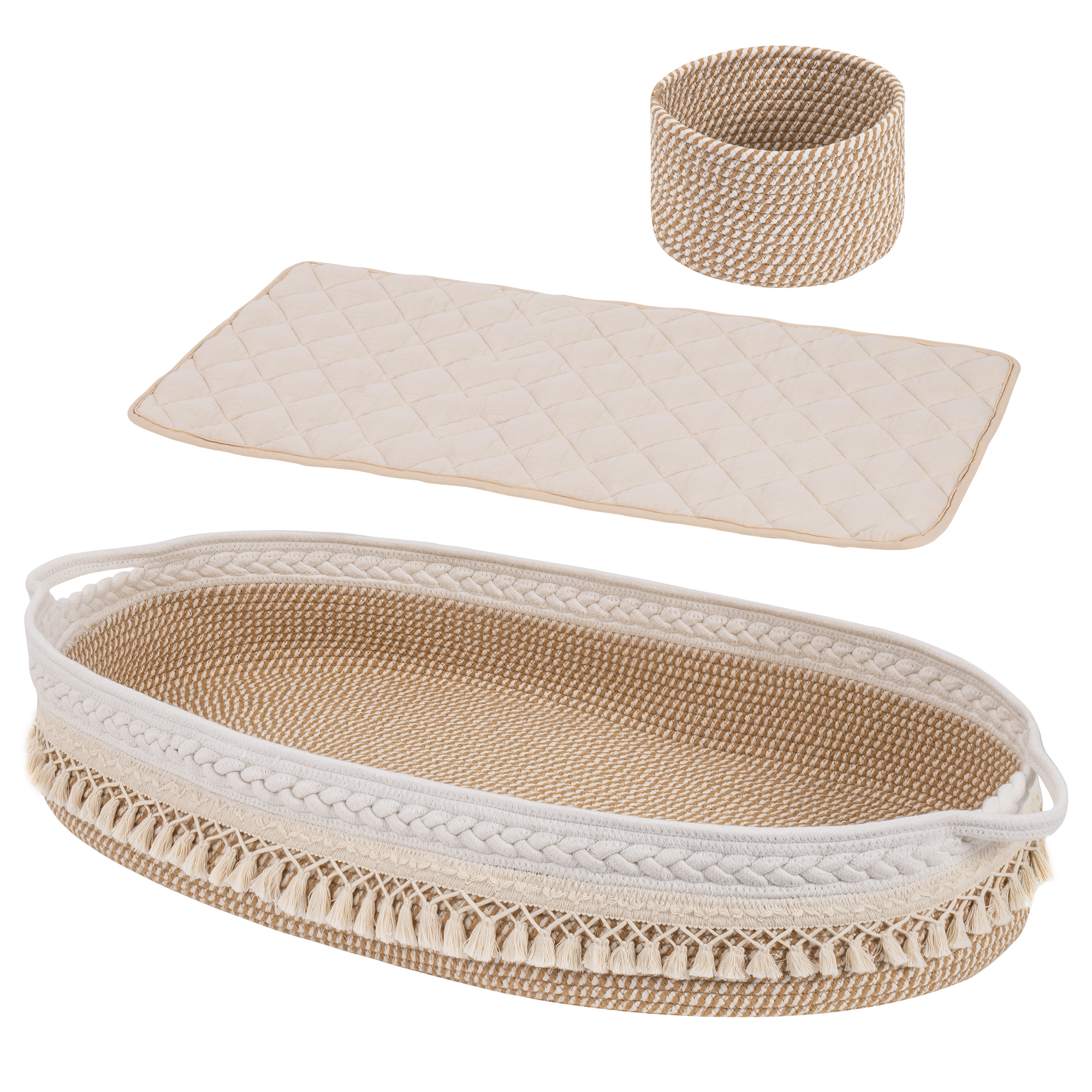 Baby cotton rope diaper basket with storage basket and soft pad