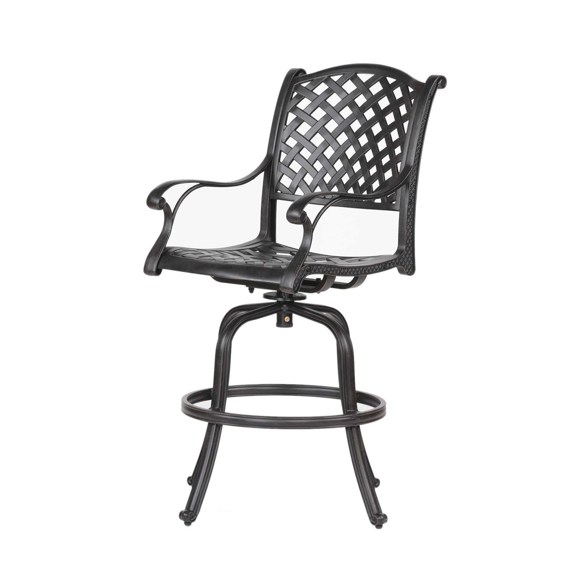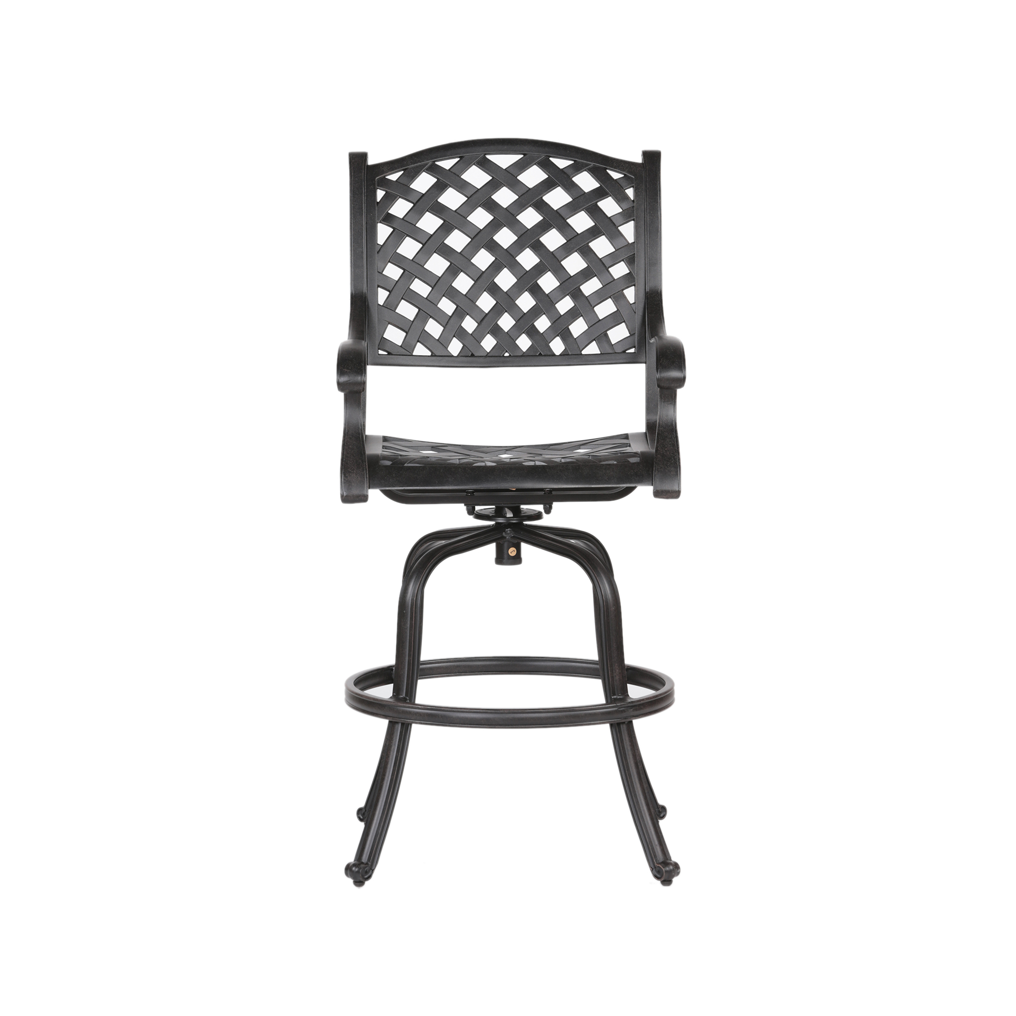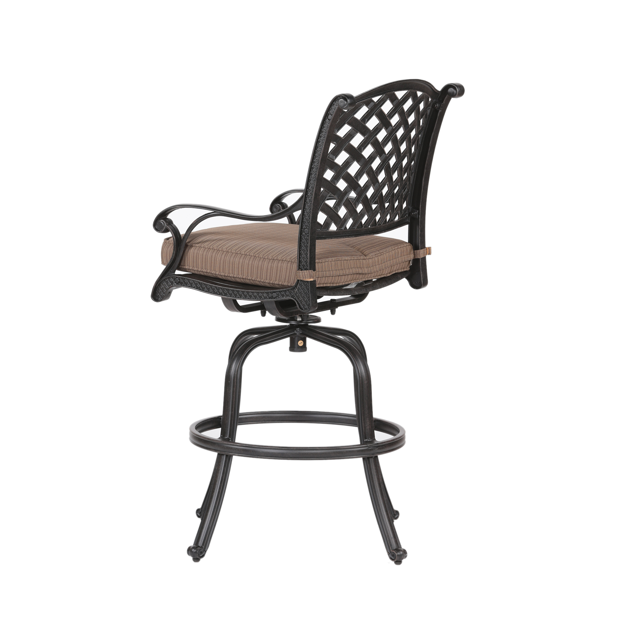 • Expertly crafted with bold patterns and a classic silhouette, this die-cast aluminum Bar Stool with cushion brings a modern and sophisticated style to your outdoor living area.
