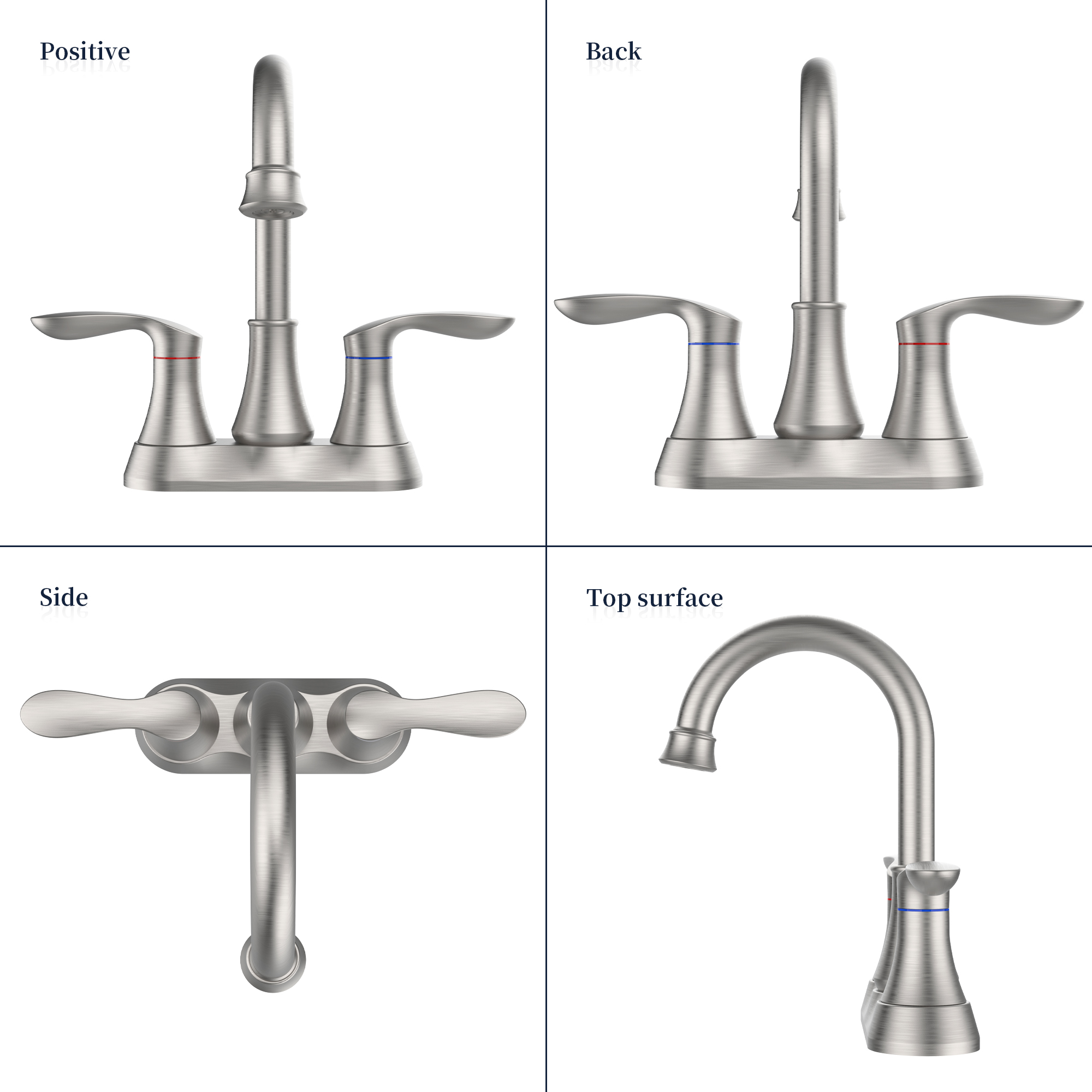 💧【 TWO-HANDLE METAL LEVER 】- Two-handle lever bathroom faucet design for precise control in both volume and water temperature. The handle torque can reach up to 18MM, which greatly extends the handle life.(The current industry standard is 9MM). The high-quality ceramic & copper cartridge has passed 500,000 cycles of water tightness test to ensure that the brushed nickel bathroom faucet is stable.