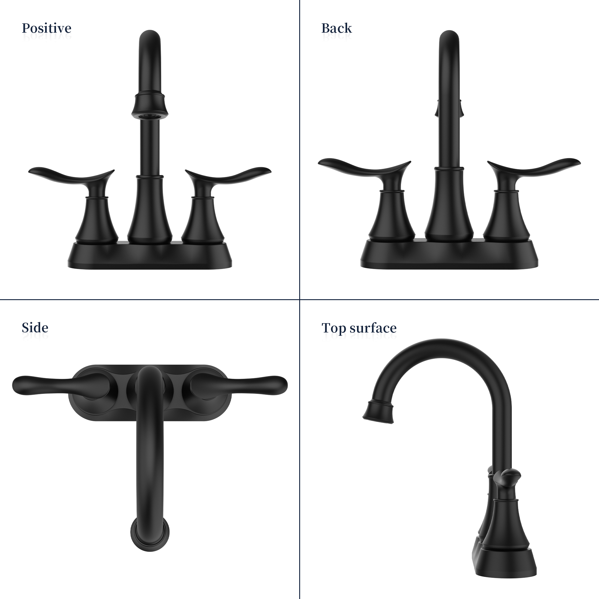 Item Weight 2.99 pounds Product Dimensions 9 x 2 x 9 inches Color Matt Black-S Finish Matte Black Material Stainless Steel Pattern Modern Installation Method Centerset Item Package Quantity 1 Flow Rate 1.5 Gallons Per Minute Number Of Holes 3 Spout Height 5.4 Inches Handle/Lever Placement Centerset Number of Handles 2 Handle Material Zinc Mounting Type Floor Included Components Pop-up Drain, Supply Hoses*2