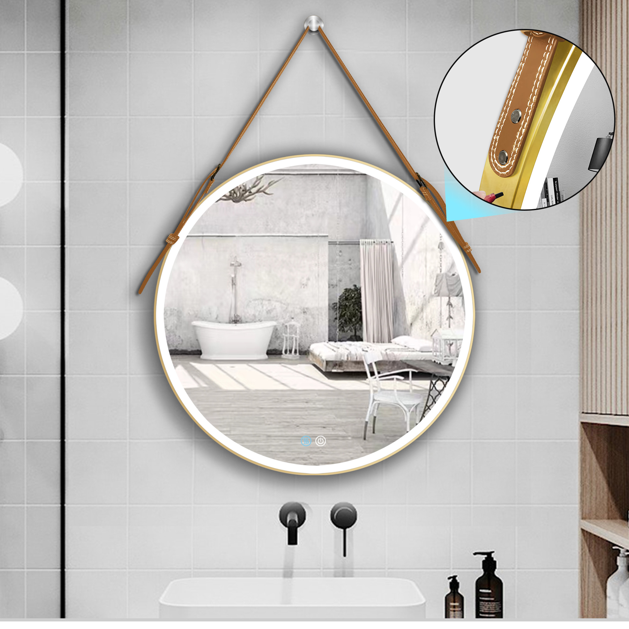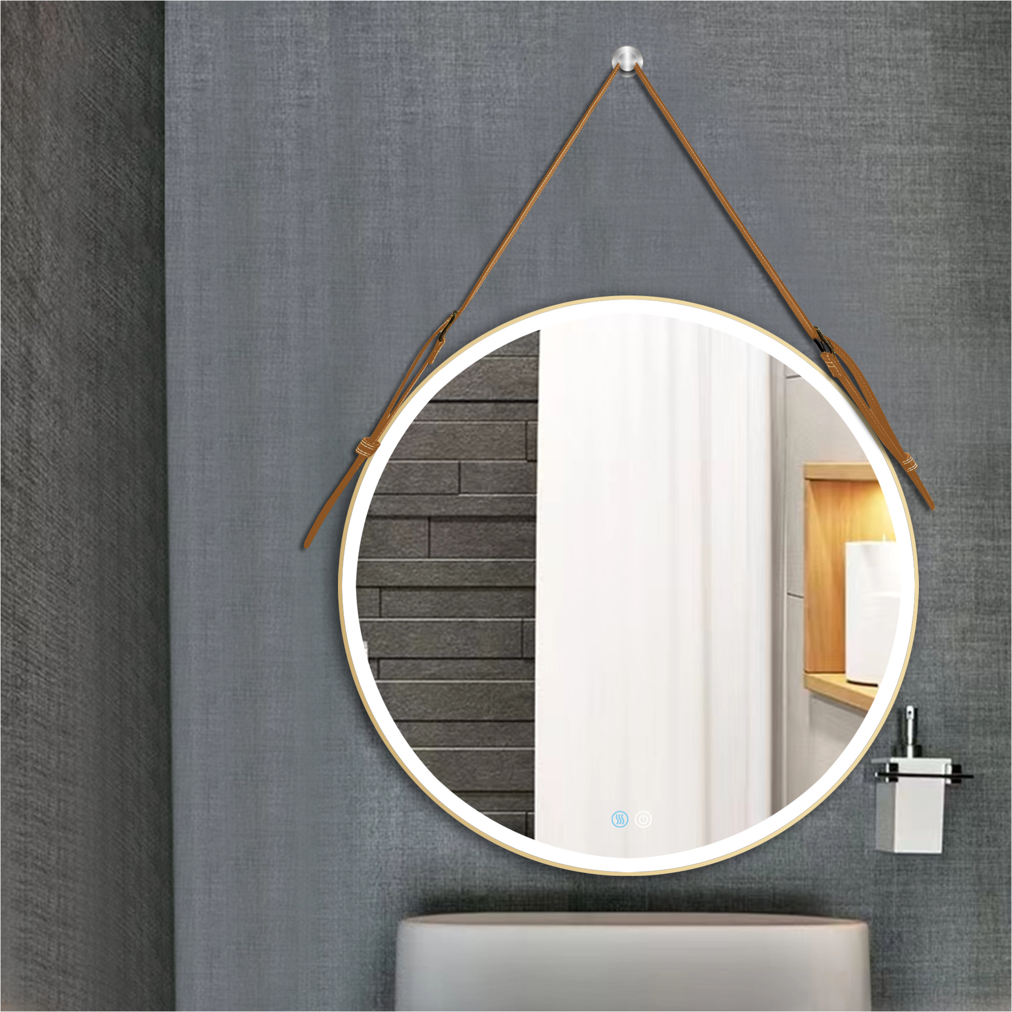 √Exquisite workmanship: Our 32*32 inch hanging bathroom mirror is made of high-definition environmentally friendly copper-free silver glass, with a 1.6-inch gold metal frame and high-quality PU belt, which can enhance the sense of fashion and stability.
