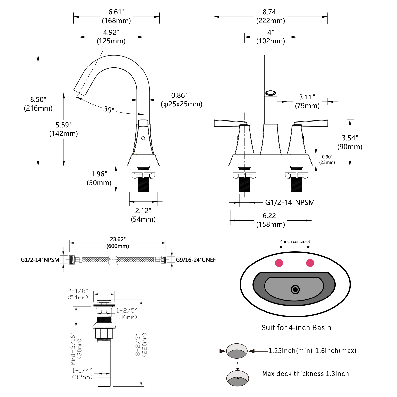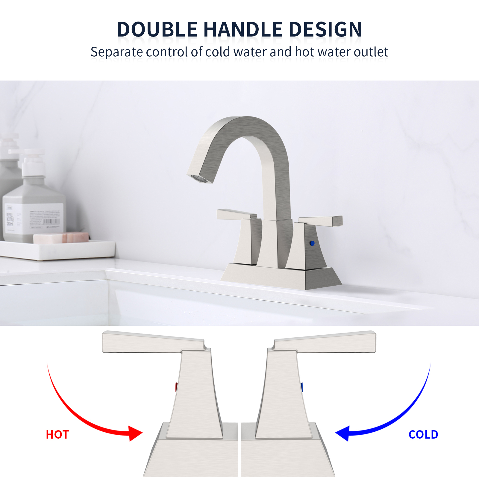 What’s In The Set: A bathroom sink faucet, a pop -up sink drain with an overflow hole, and two hot&cold supply lines are included in the package. Consumers do not need to buy other parts separately, we are trying to provide you with a better consumer experience and product with higher cost-effective.