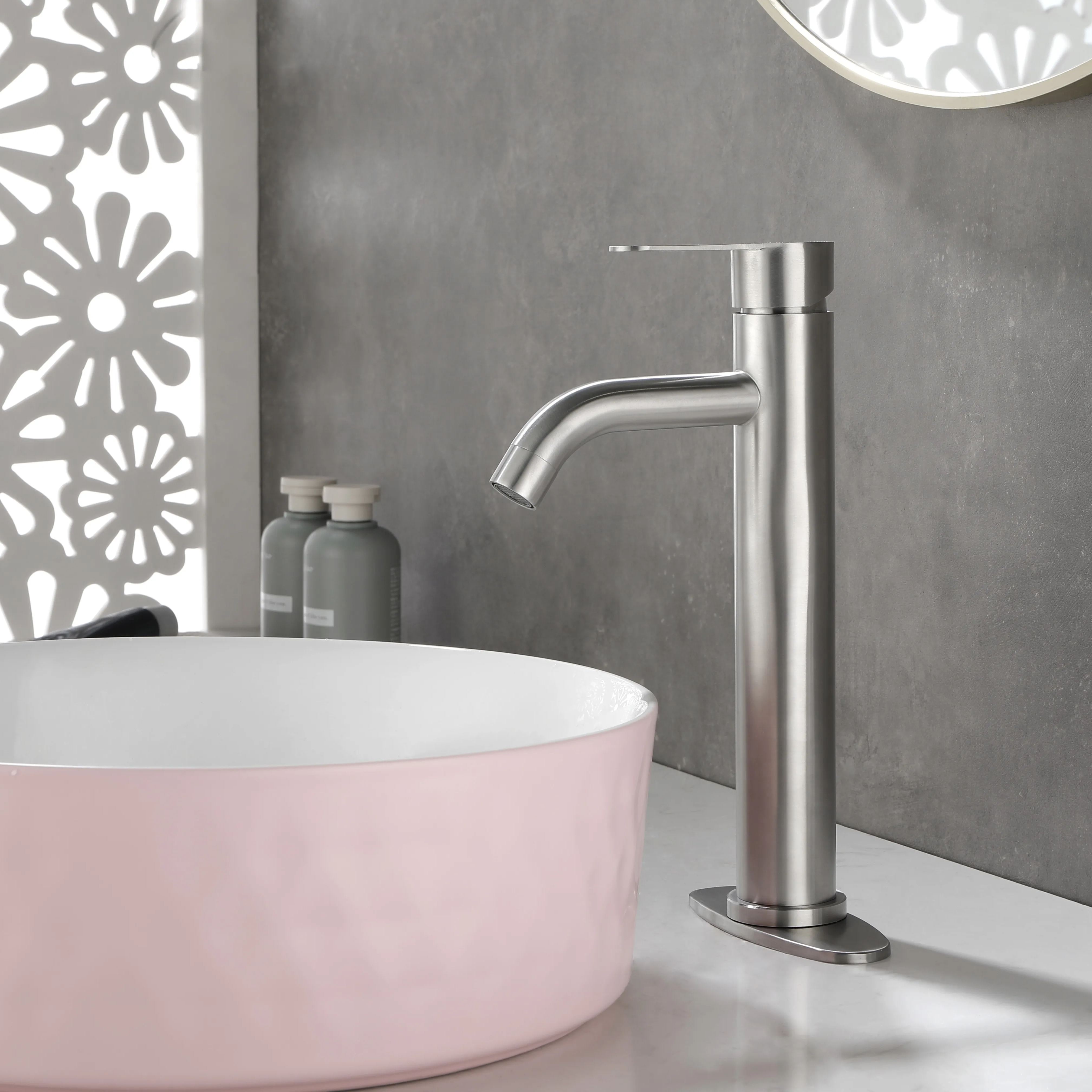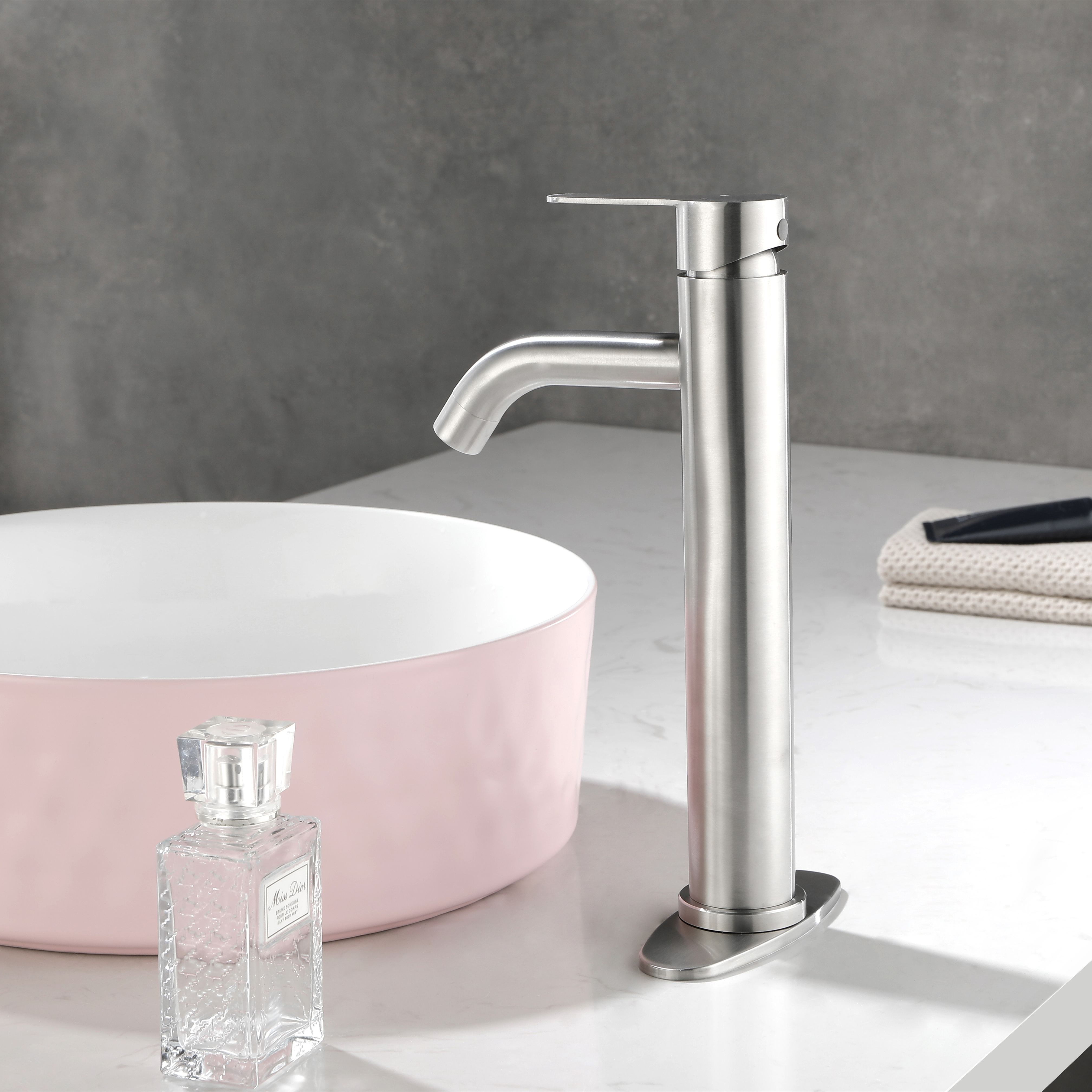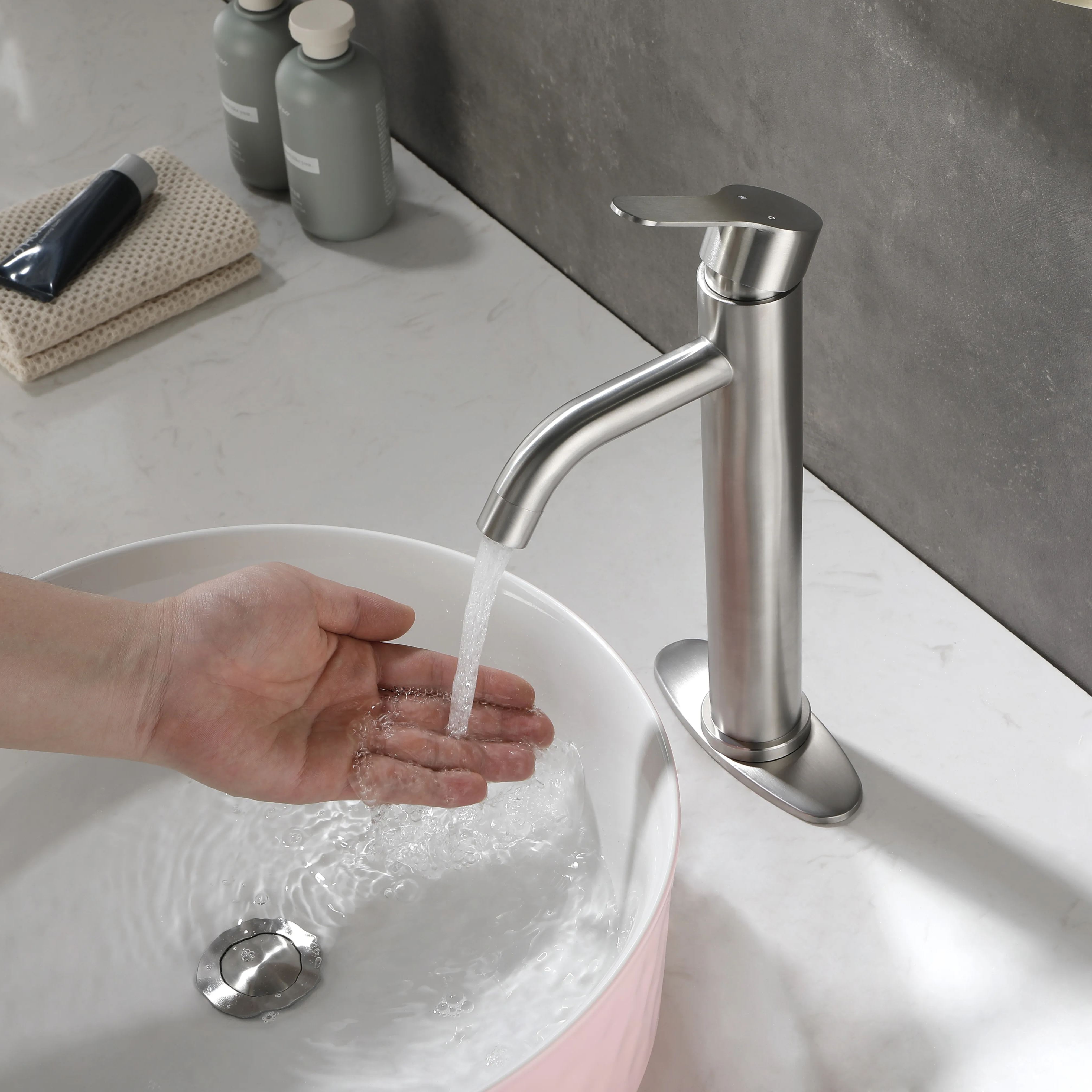 Bathroom Sink Faucet Single Handle Stainless Steel Lavatory Commercial Bathroom Faucet Bathtub Basin Vanity Faucets with Deck Plate & Drain Assembly Fit for 1 & 3 Hole, MODERN DESIGN - bathroom faucet designed with timeless style mixed with distinctly modern features to bring a refreshed modern look to your bathroom.EASY TO USE - The single-handle lever makes switching from hot to cold water easy.PREMIUM QUALITY - This matte black bathroom sink faucet is constructed with 304 stainless steel body and ceramic disc cartridge to deliver leak proof & rugged performance.EVERYDAY CONVENIENCE - Bathroom vanity sink faucets with effortless flow and water temperature control, making it more convenient for your daily life. Aerated flow is ideal for everyday bathroom tasks, like brushing teeth and washing hands.drain included.