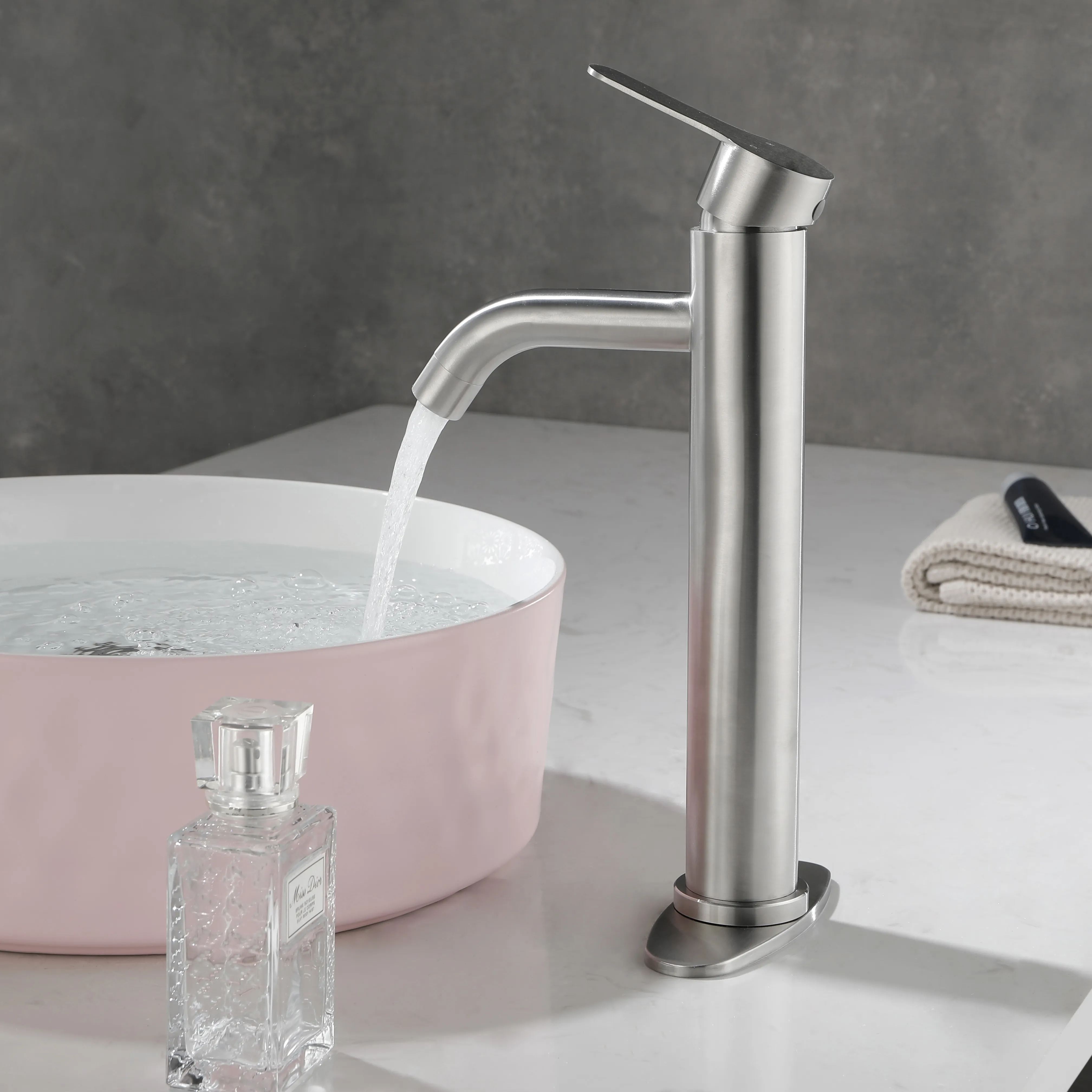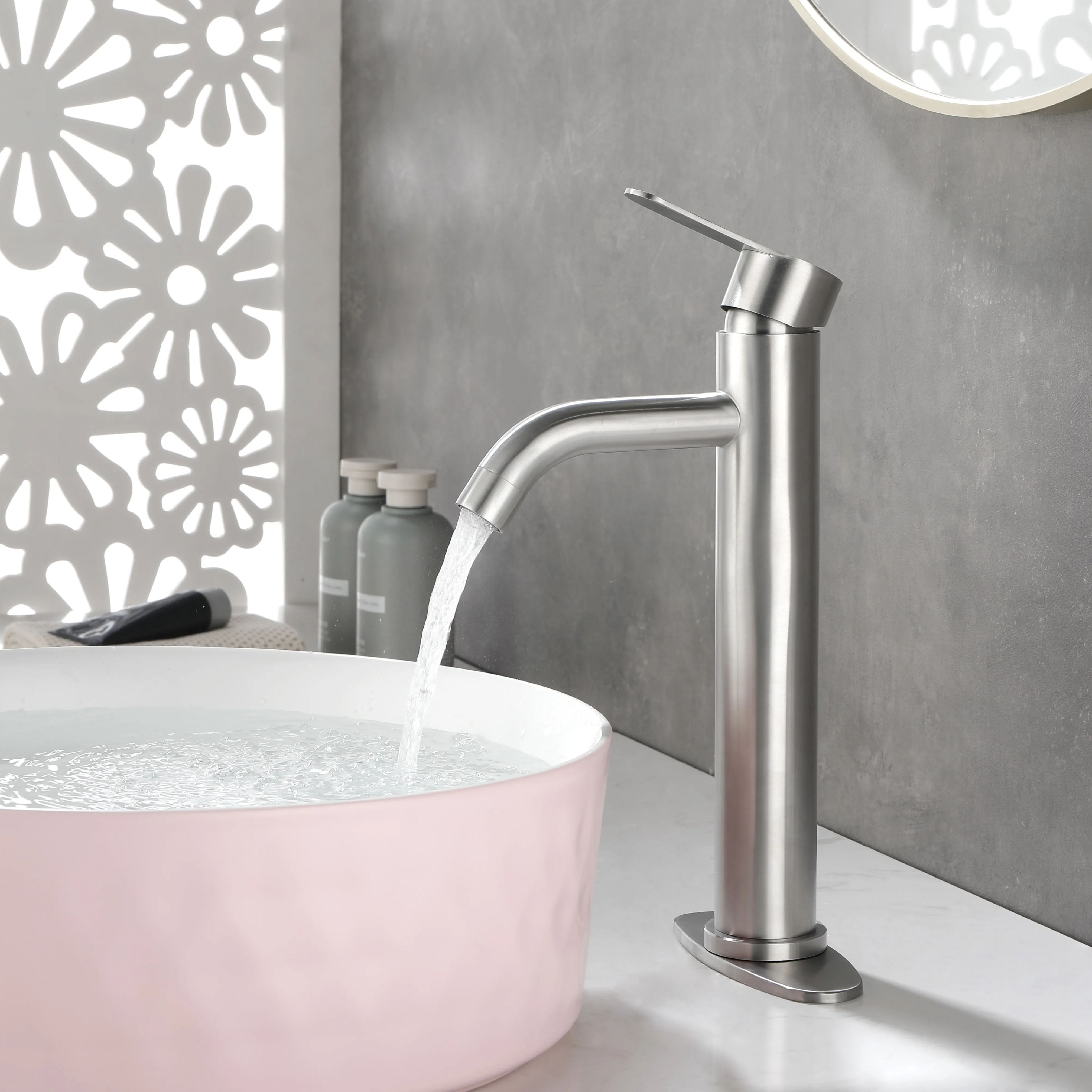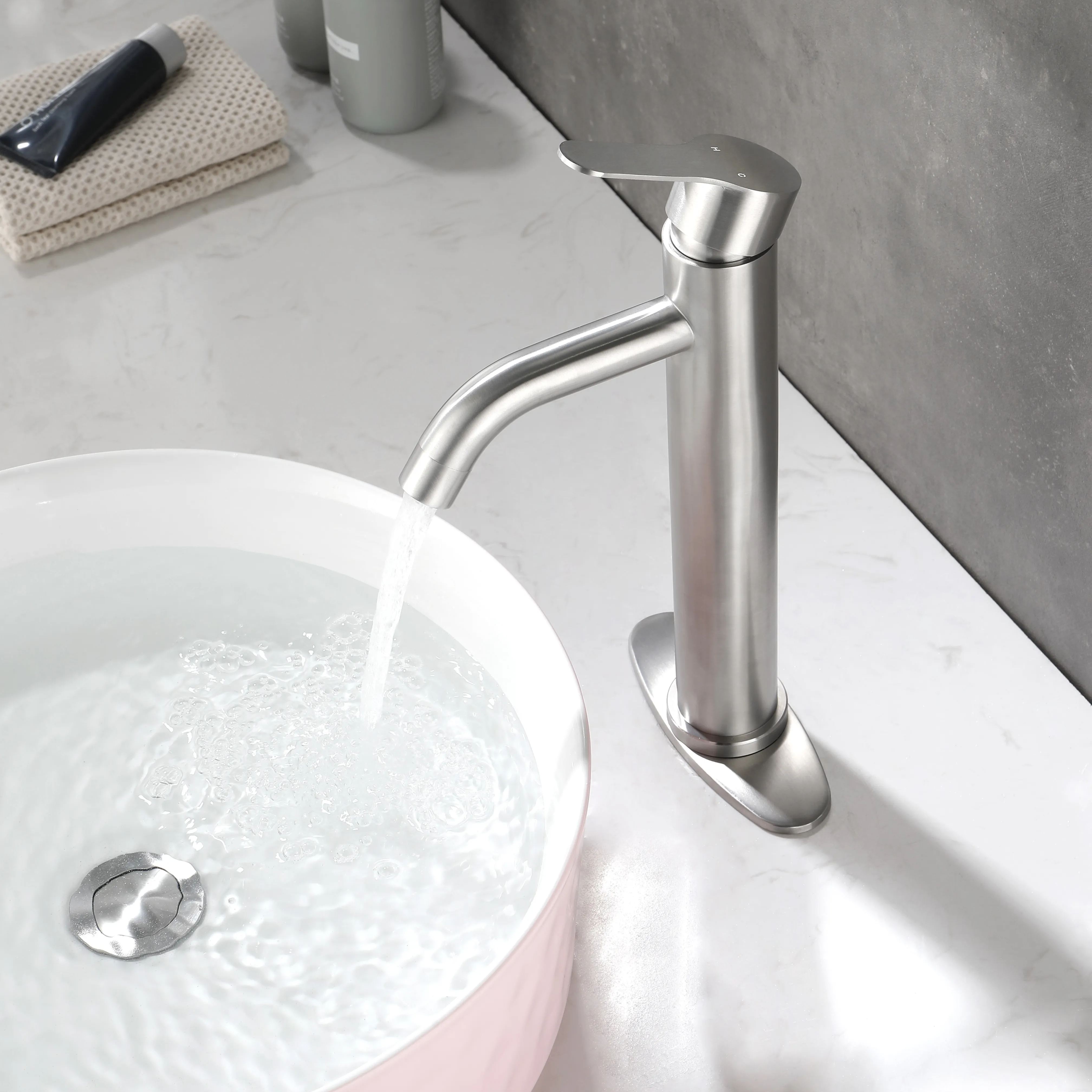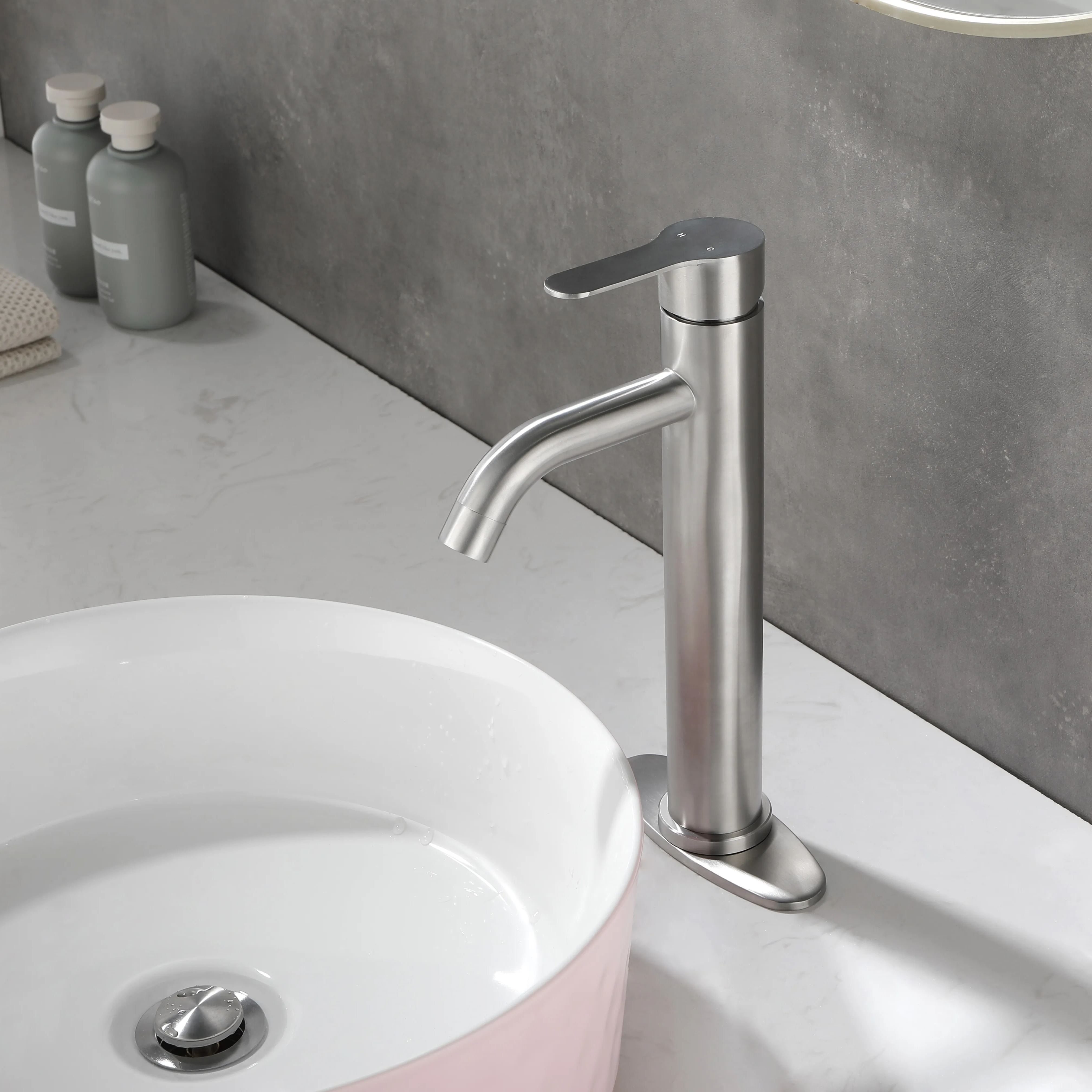 Bathroom Sink Faucet Single Handle Stainless Steel Lavatory Commercial Bathroom Faucet Bathtub Basin Vanity Faucets with Deck Plate & Drain Assembly Fit for 1 & 3 Hole, MODERN DESIGN - bathroom faucet designed with timeless style mixed with distinctly modern features to bring a refreshed modern look to your bathroom.EASY TO USE - The single-handle lever makes switching from hot to cold water easy.PREMIUM QUALITY - This matte black bathroom sink faucet is constructed with 304 stainless steel body and ceramic disc cartridge to deliver leak proof & rugged performance.EVERYDAY CONVENIENCE - Bathroom vanity sink faucets with effortless flow and water temperature control, making it more convenient for your daily life. Aerated flow is ideal for everyday bathroom tasks, like brushing teeth and washing hands.drain included.