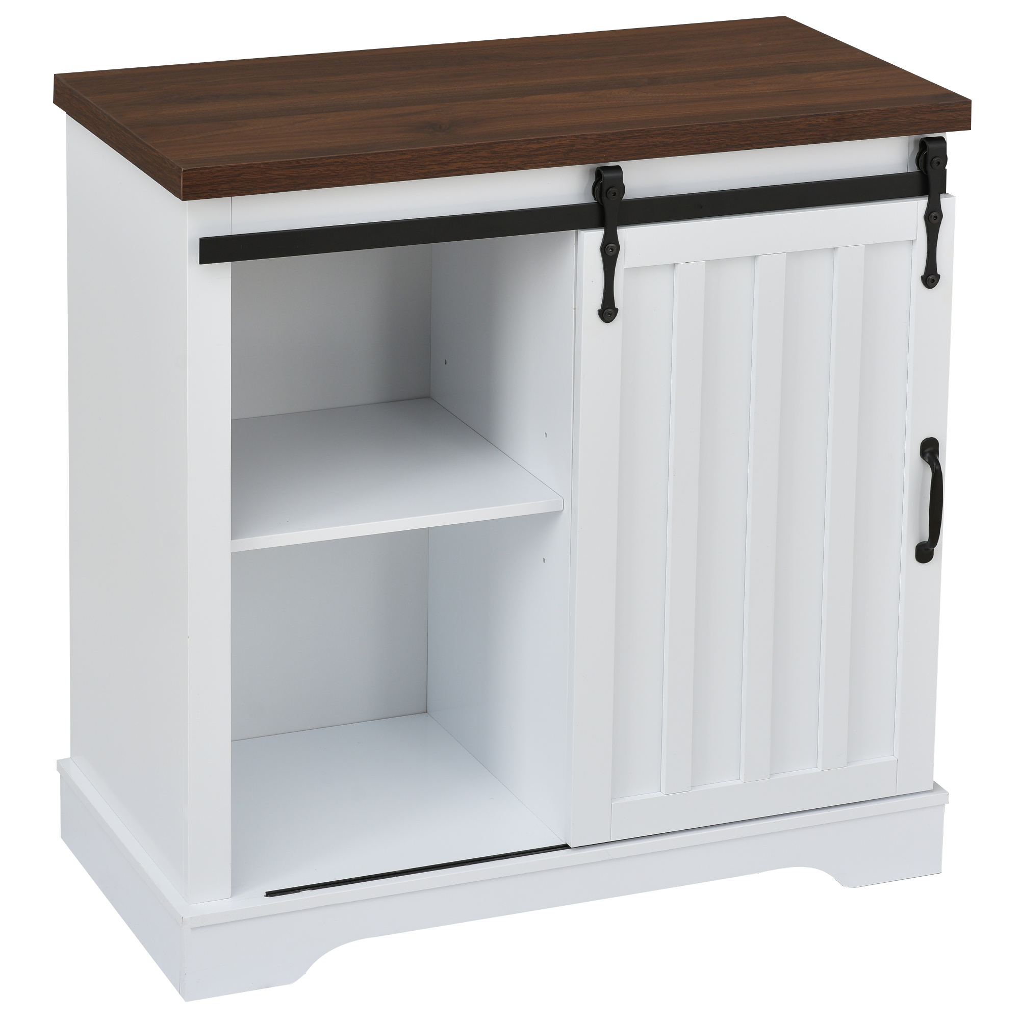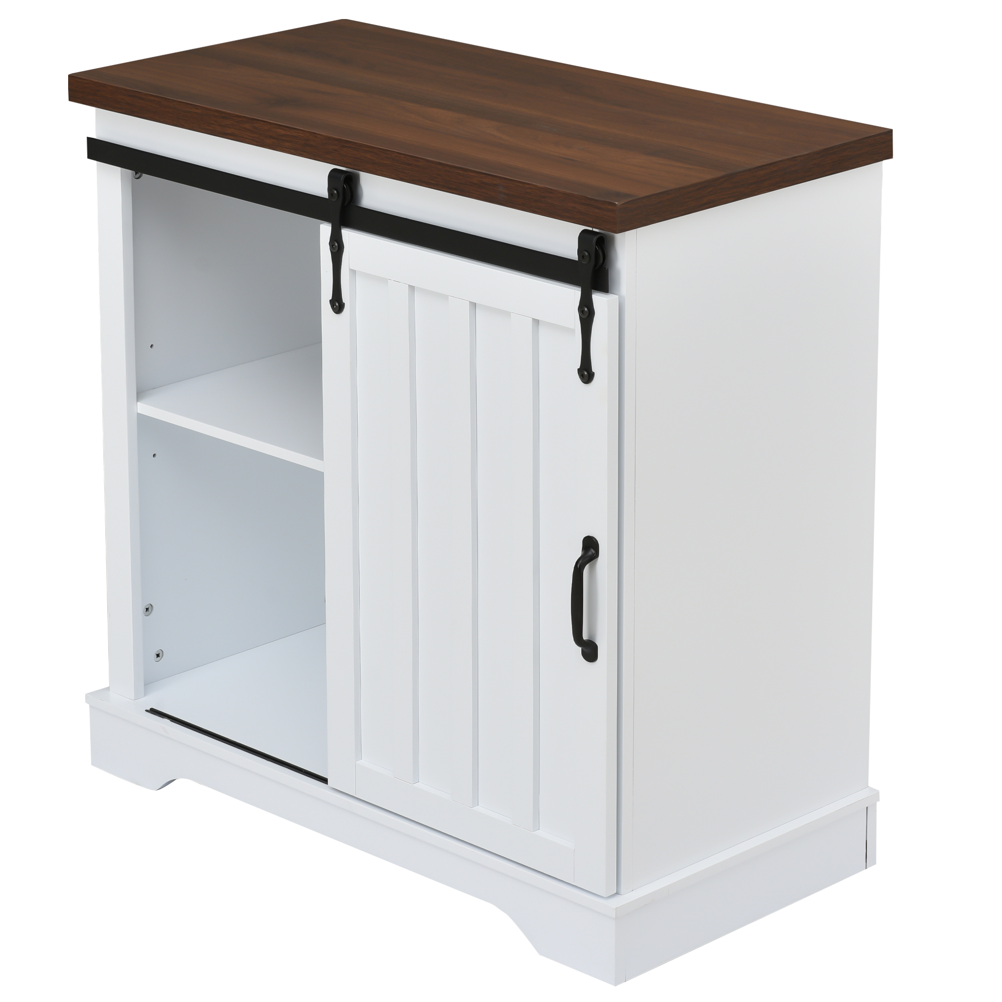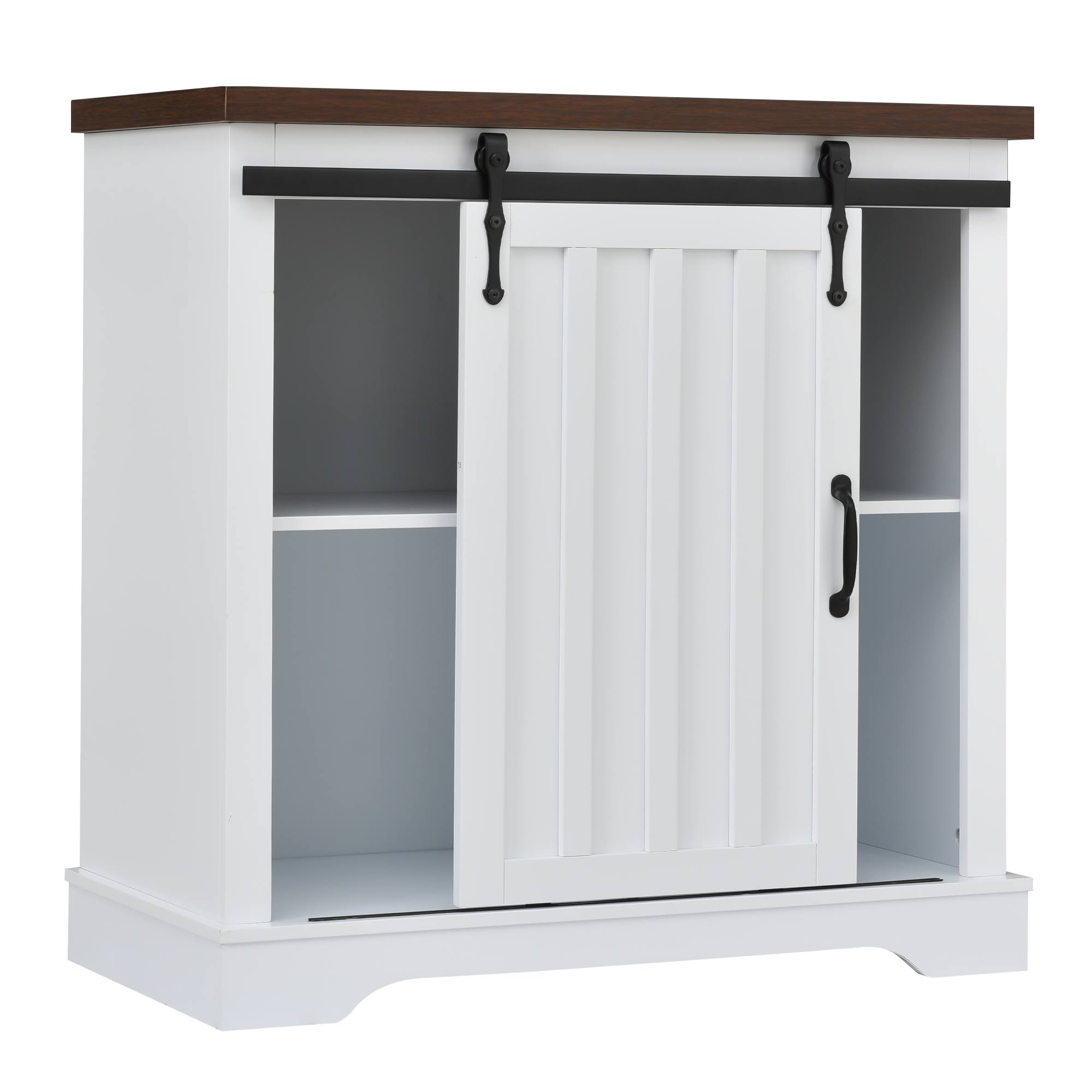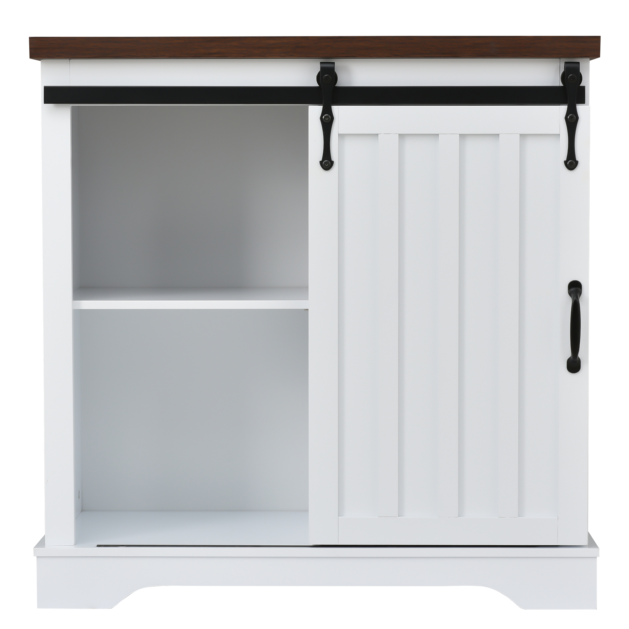 Bathroom Storage Cabinet, Freestanding Accent Cabinet, Sliding Barn Door, Thick Top, Adjustable Shelf, White, and Brown