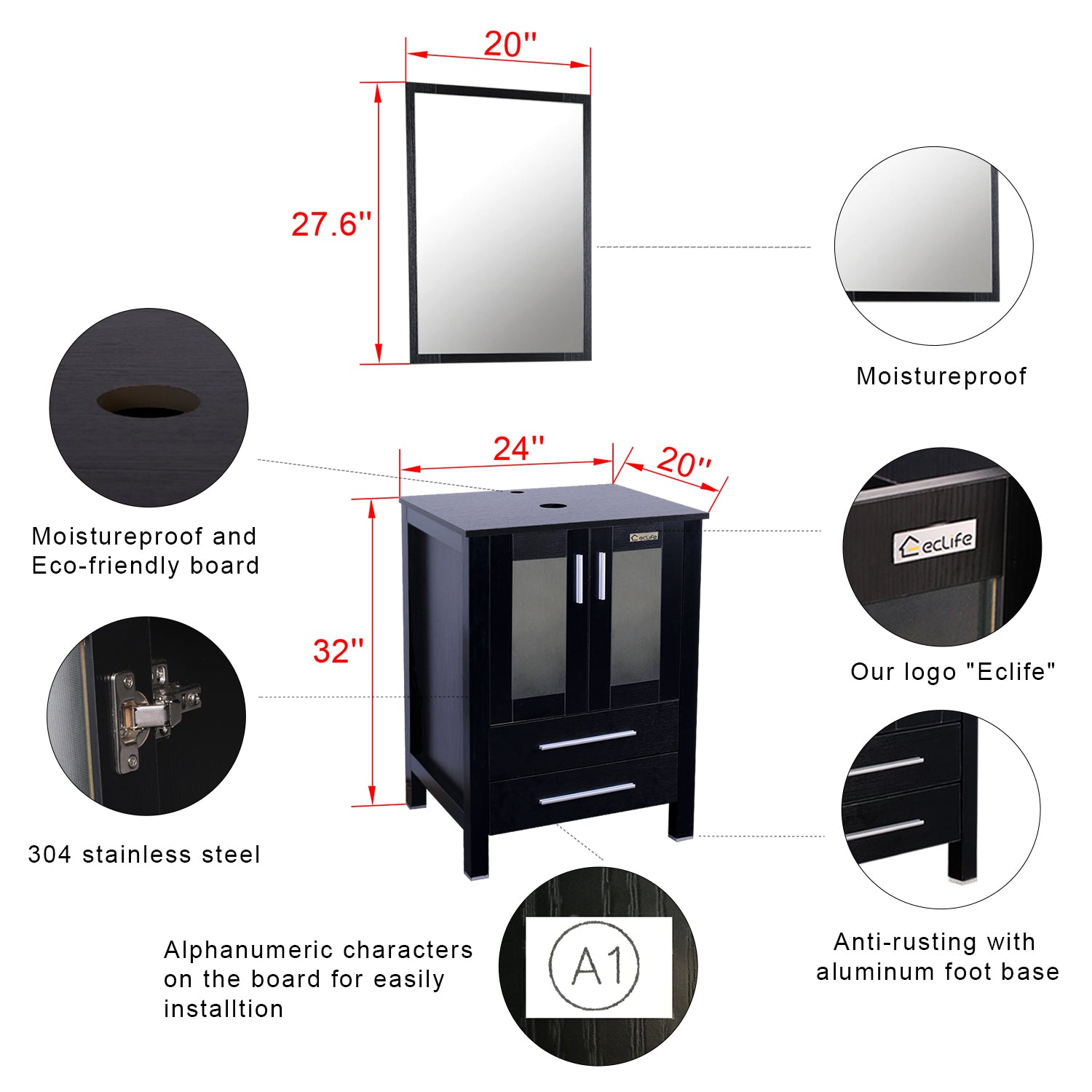 All mounting hardware and wall mounted mirror included;