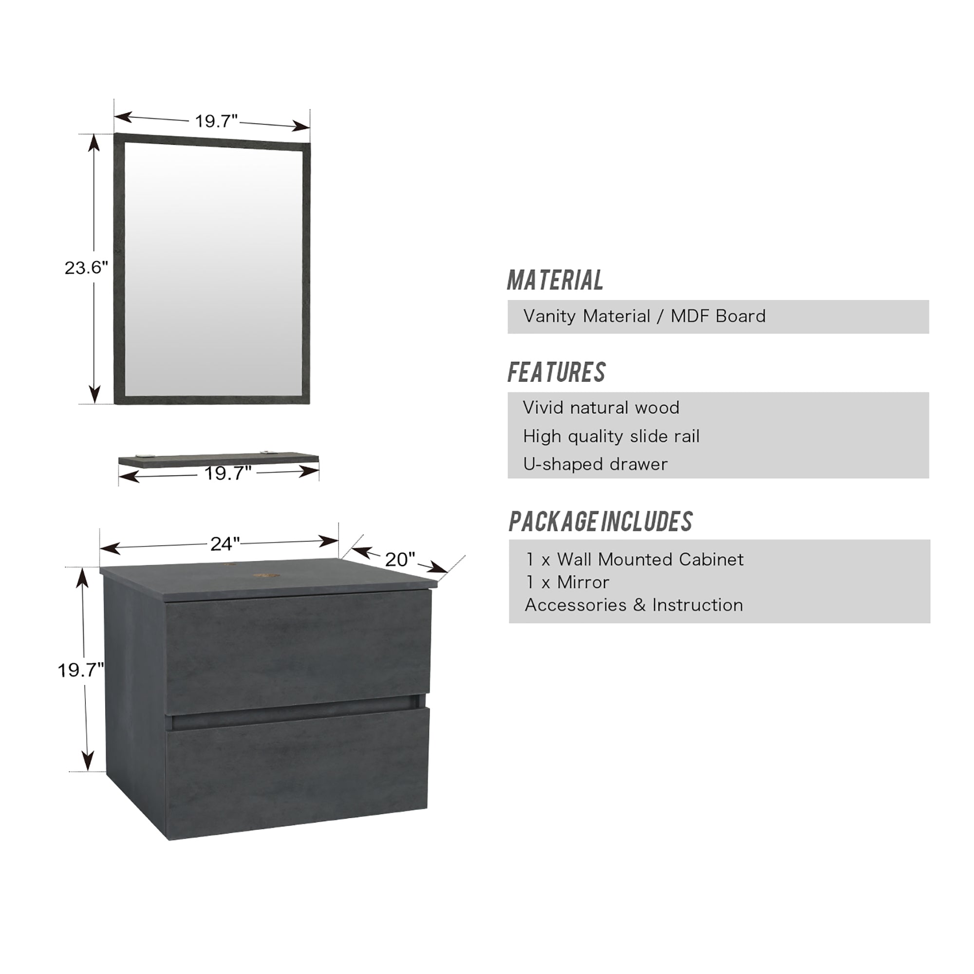 Wall-mounted mirror included;