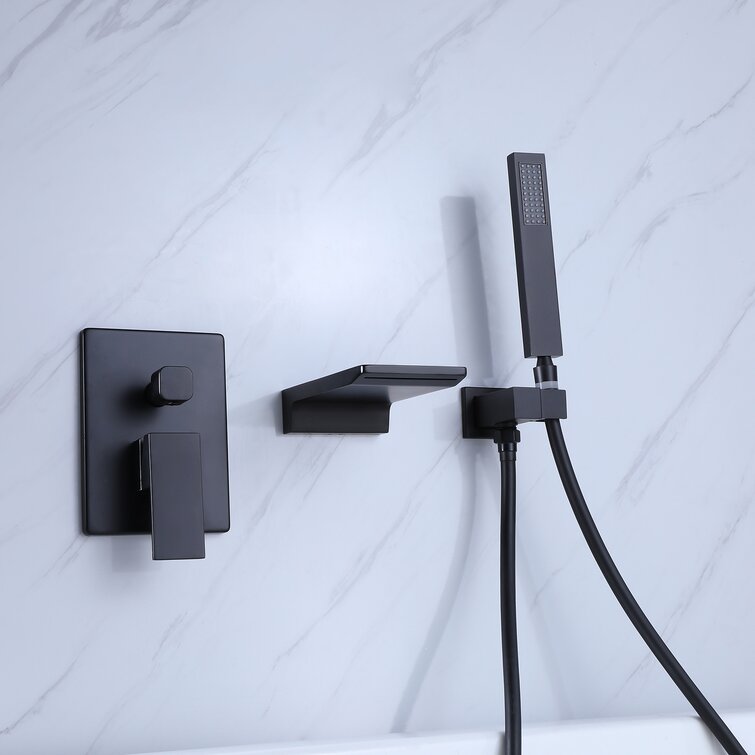 Tub spout delivers a gentle sheet of laminar water to suit your washing needs. What's more, the high flow wide spout fills up your bathtub quickly.Constructed from high quality brass for durability and reliability.Handheld shower hose to satisfy different family members' shower needs,offer maximum flexibility and movement, such as bathing for children and cleaning your pets.Tub shower faucet set has 2 modes for bathing: hand shower head, waterfall tub faucet, come with a diverter knob to which could easily switch. The flow of bathtub faucet is 1.75GPM, and the hand-held is 1.5GPM. Single handle allows you to quickly adjust the temperature and flow.