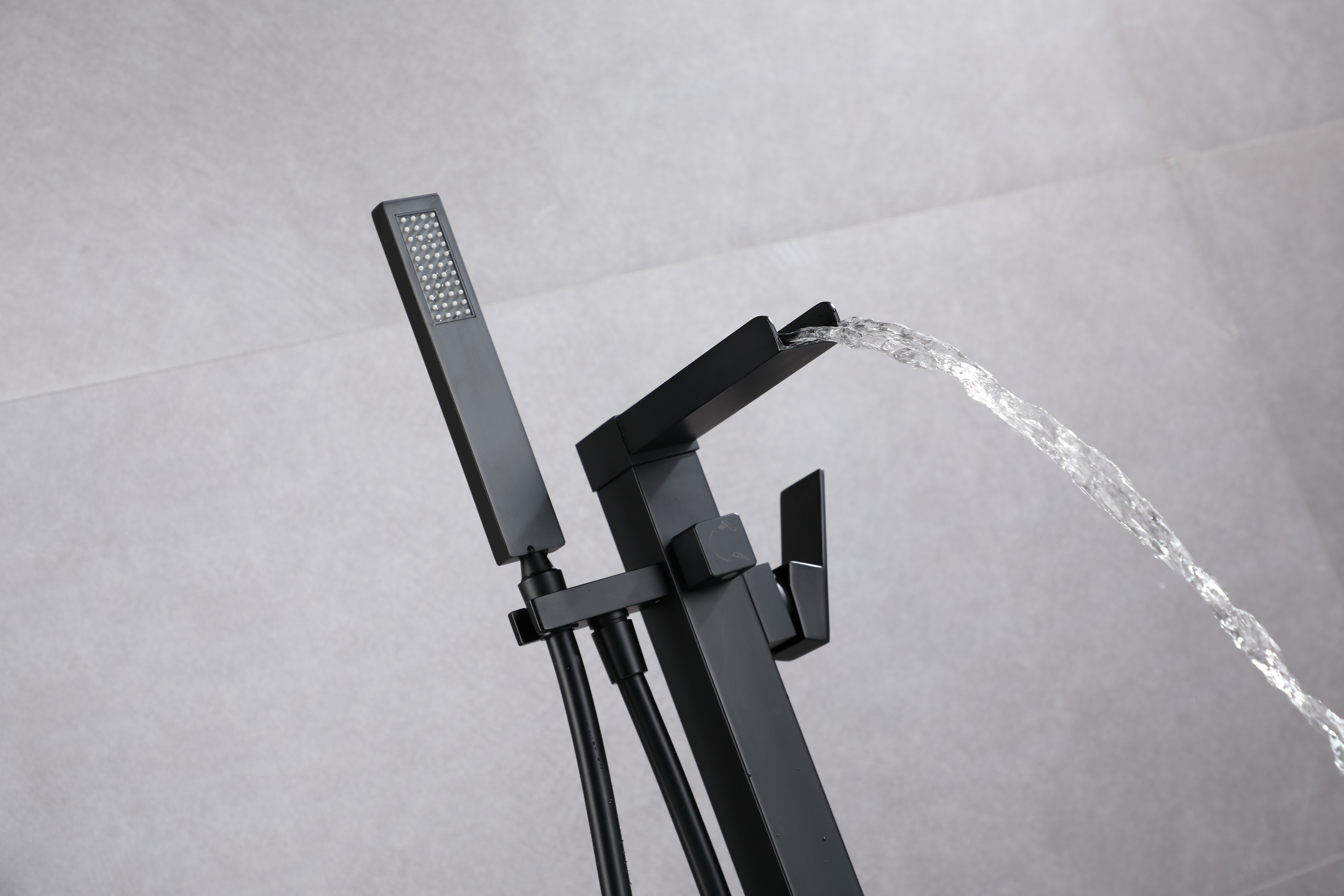Bathtub Faucet Waterfall Tub Filler Floor Mount Brass Single Handle Bathroom Faucets with Hand Shower