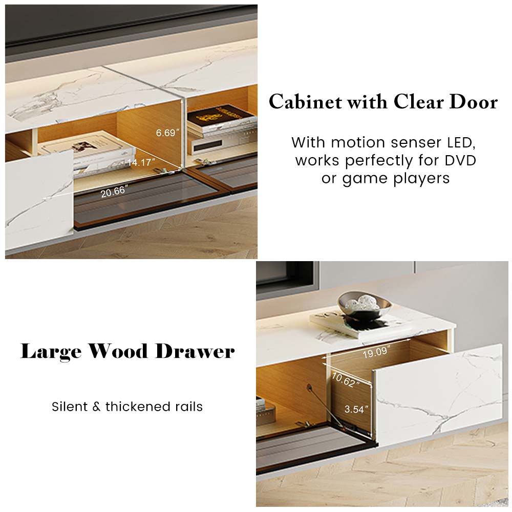 【Product Testing】Extremely stable and durable marble TV cabinet with a unique and stylish design. The thick and smooth desktop has a high gloss. Marble patterns resist ultraviolet rays and heat up to 1200 degrees Celsius.