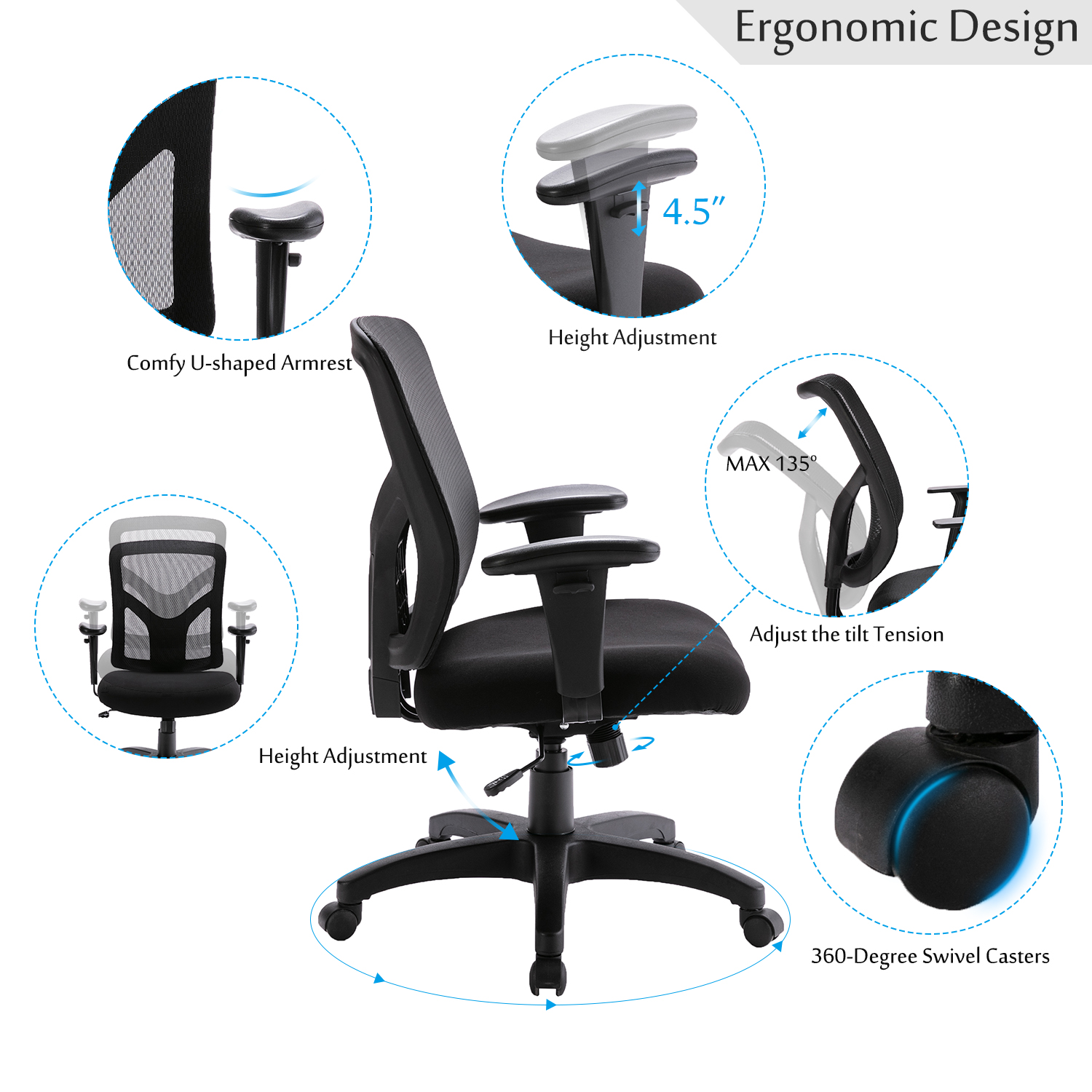 Breathable Mesh Back: Perfectly supporting your weight, size, and even temperature, it will help you feel more comfortable in jobs that require extended sitting. Additionally, the breathable mesh material features a mesh back that allows airflow to keep you cool.