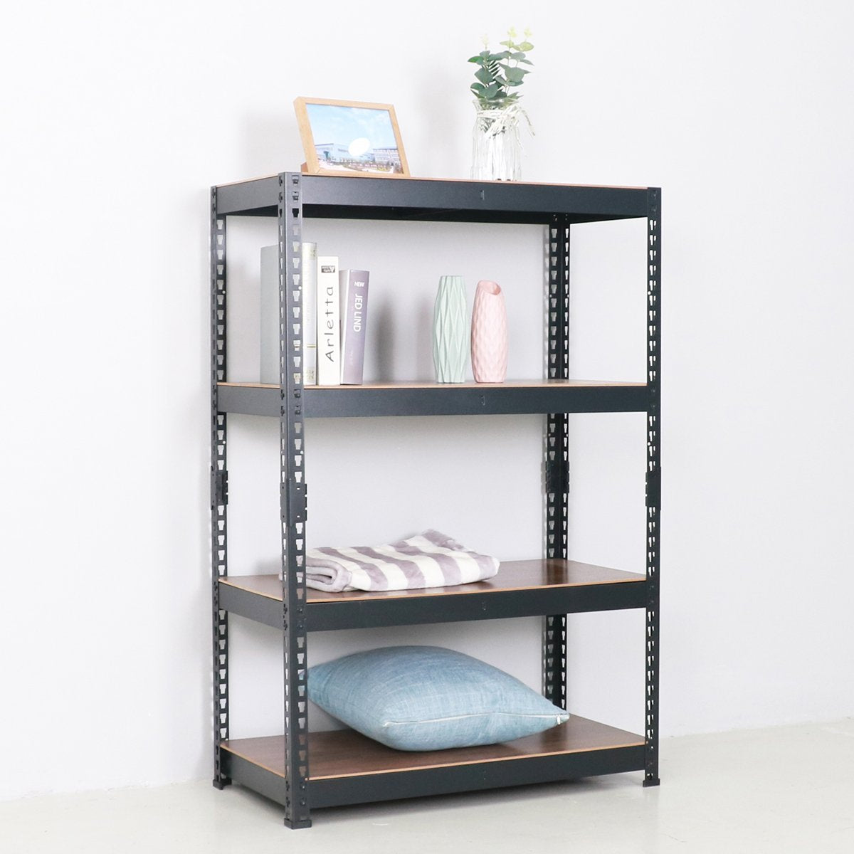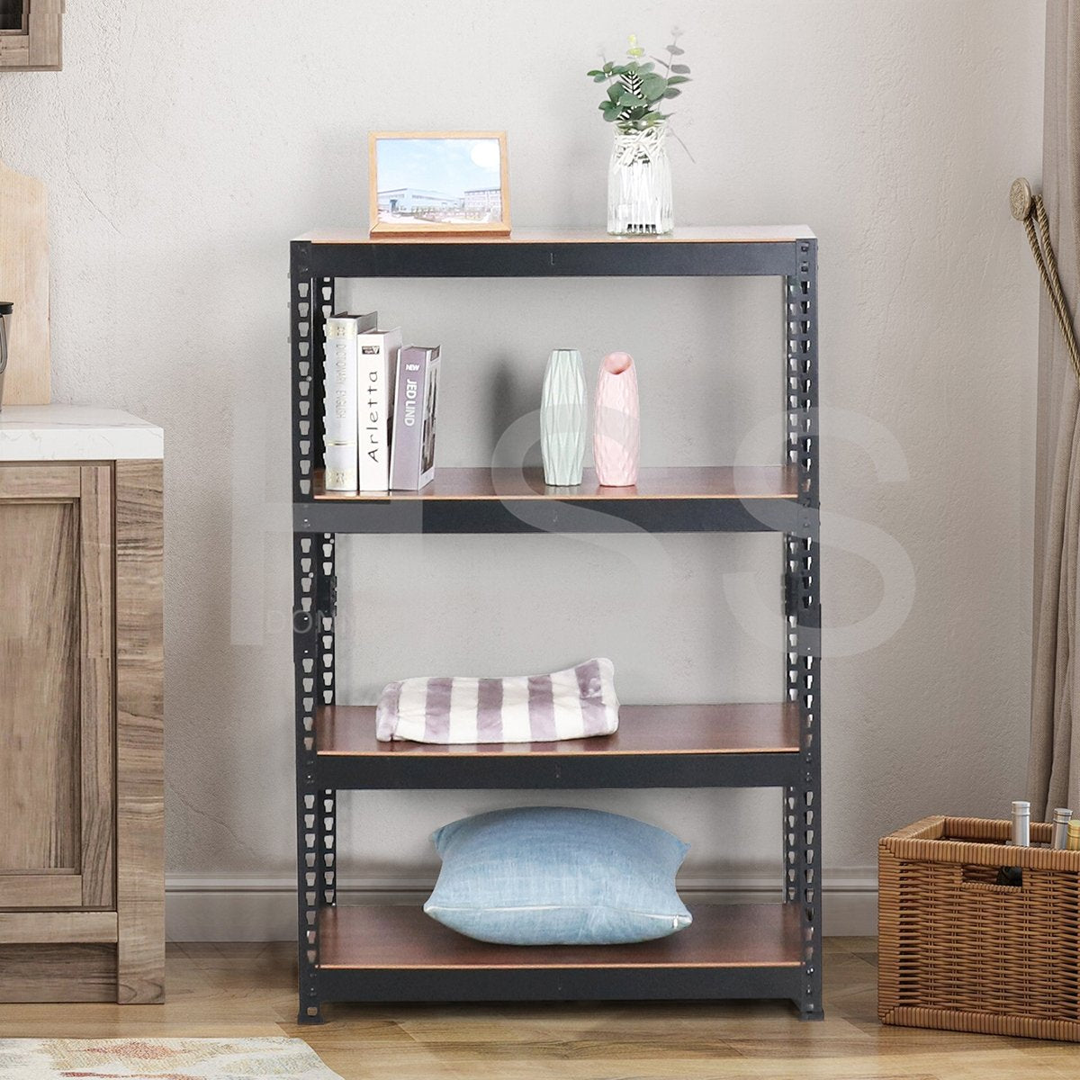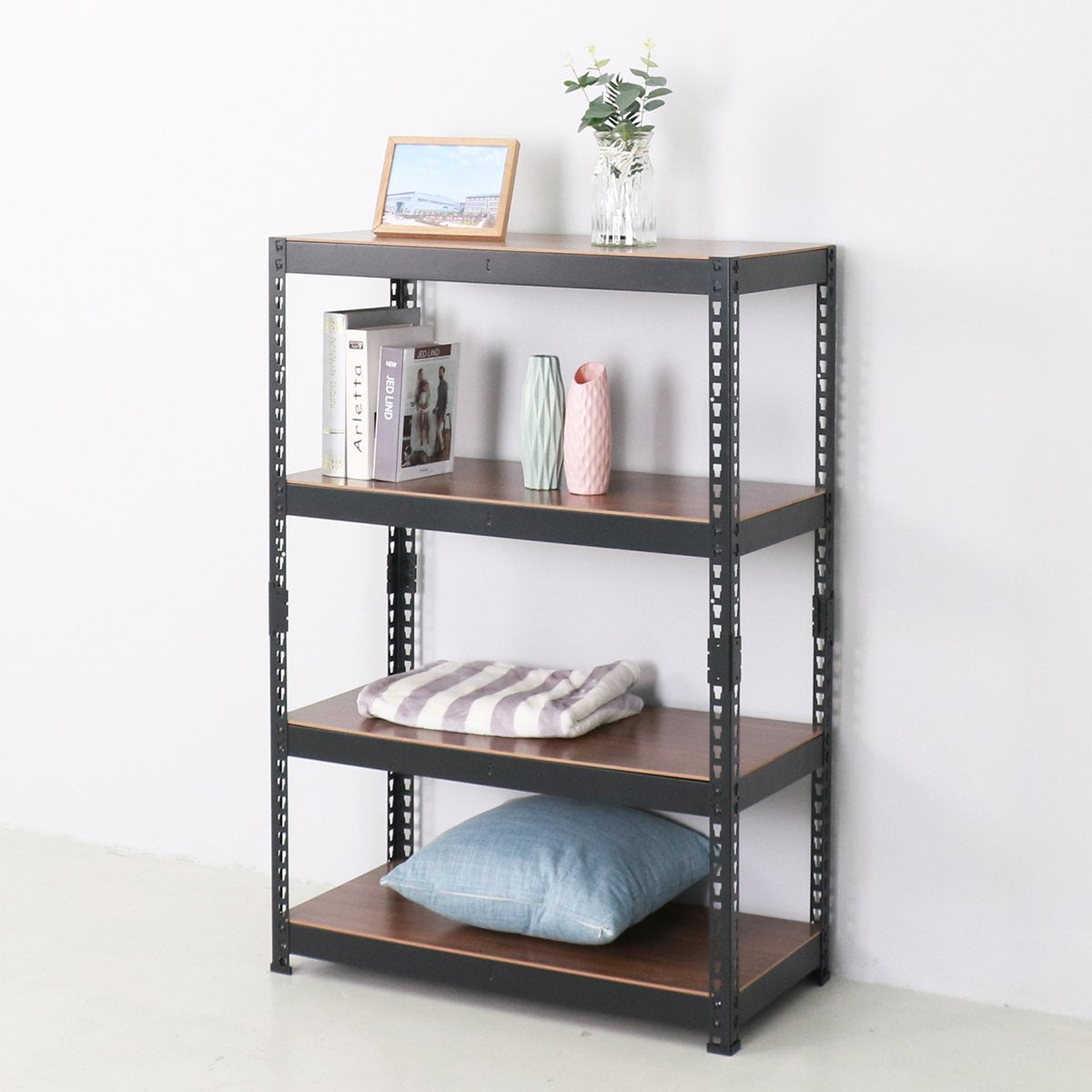 This is the 4-shelf multipurpose shelf which is simple, versatile, durable and chic . It's a handsome set of shelves for your home or just made to hold everything from books to plants, knickknack, and more. It's also a fold-up shelf unit that can be easily put away when not in use. The frame is sturdy metal with black powder coating for a go-with-everything look. All the shelves are 15 mm MDF in walnut color and nice and wide for holding lots of items. Can be used in your home of kitchen, pantry, garage, kids rooms, or anywhere else that needs a shelving unit. If you are looking for a shelf like that. Don't hesitate to buy one.