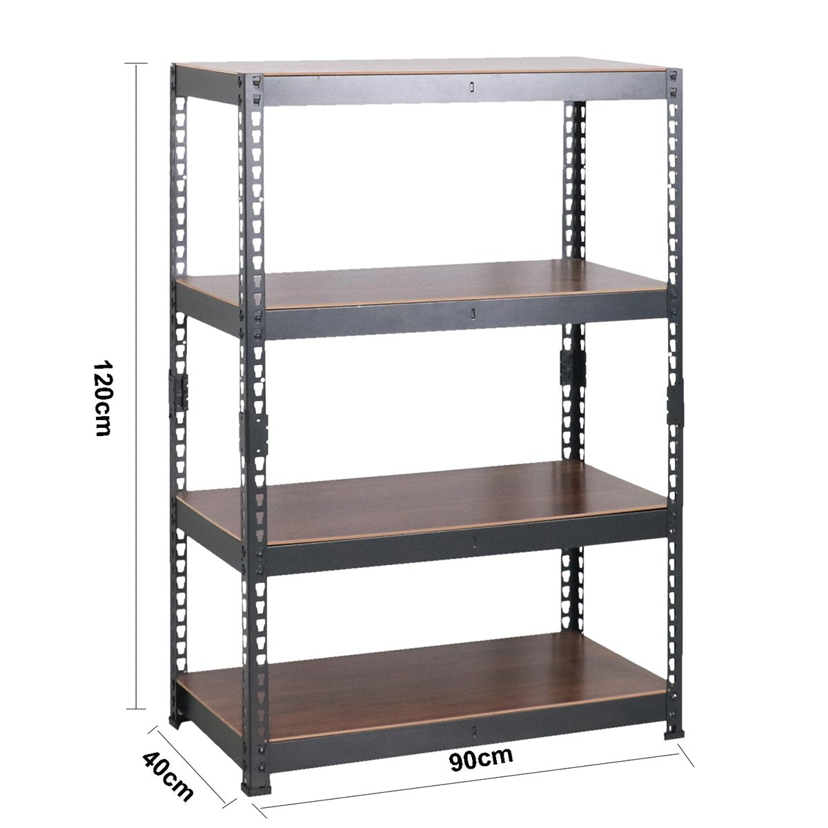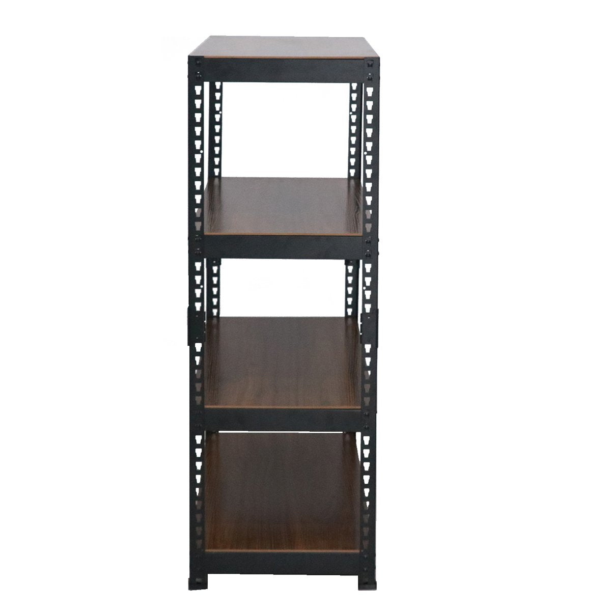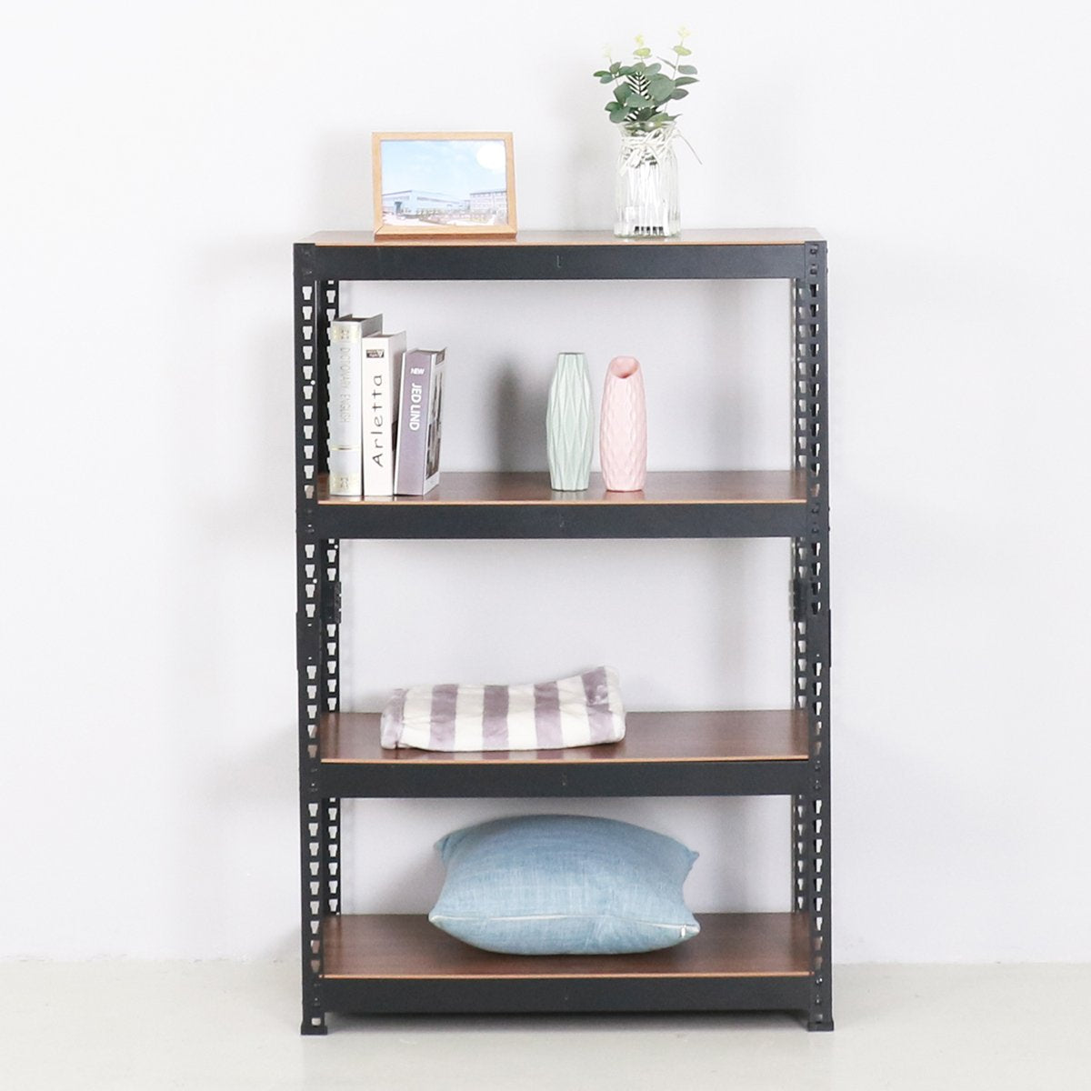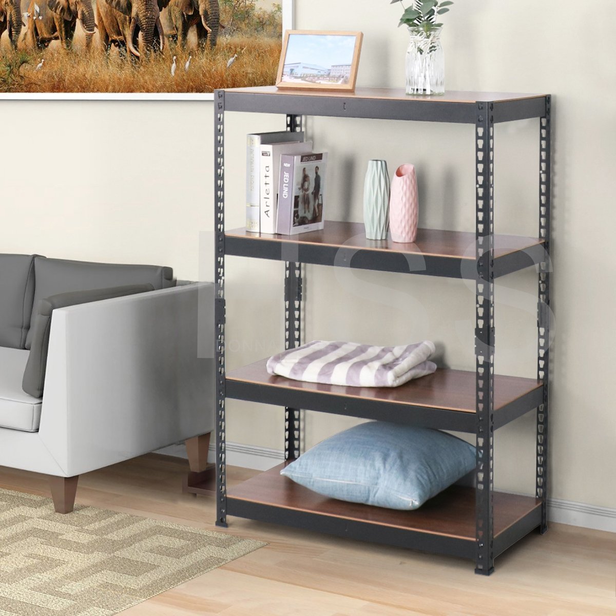 This is the 4-shelf multipurpose shelf which is simple, versatile, durable and chic . It's a handsome set of shelves for your home or just made to hold everything from books to plants, knickknack, and more. It's also a fold-up shelf unit that can be easily put away when not in use. The frame is sturdy metal with black powder coating for a go-with-everything look. All the shelves are 15 mm MDF in walnut color and nice and wide for holding lots of items. Can be used in your home of kitchen, pantry, garage, kids rooms, or anywhere else that needs a shelving unit. If you are looking for a shelf like that. Don't hesitate to buy one.