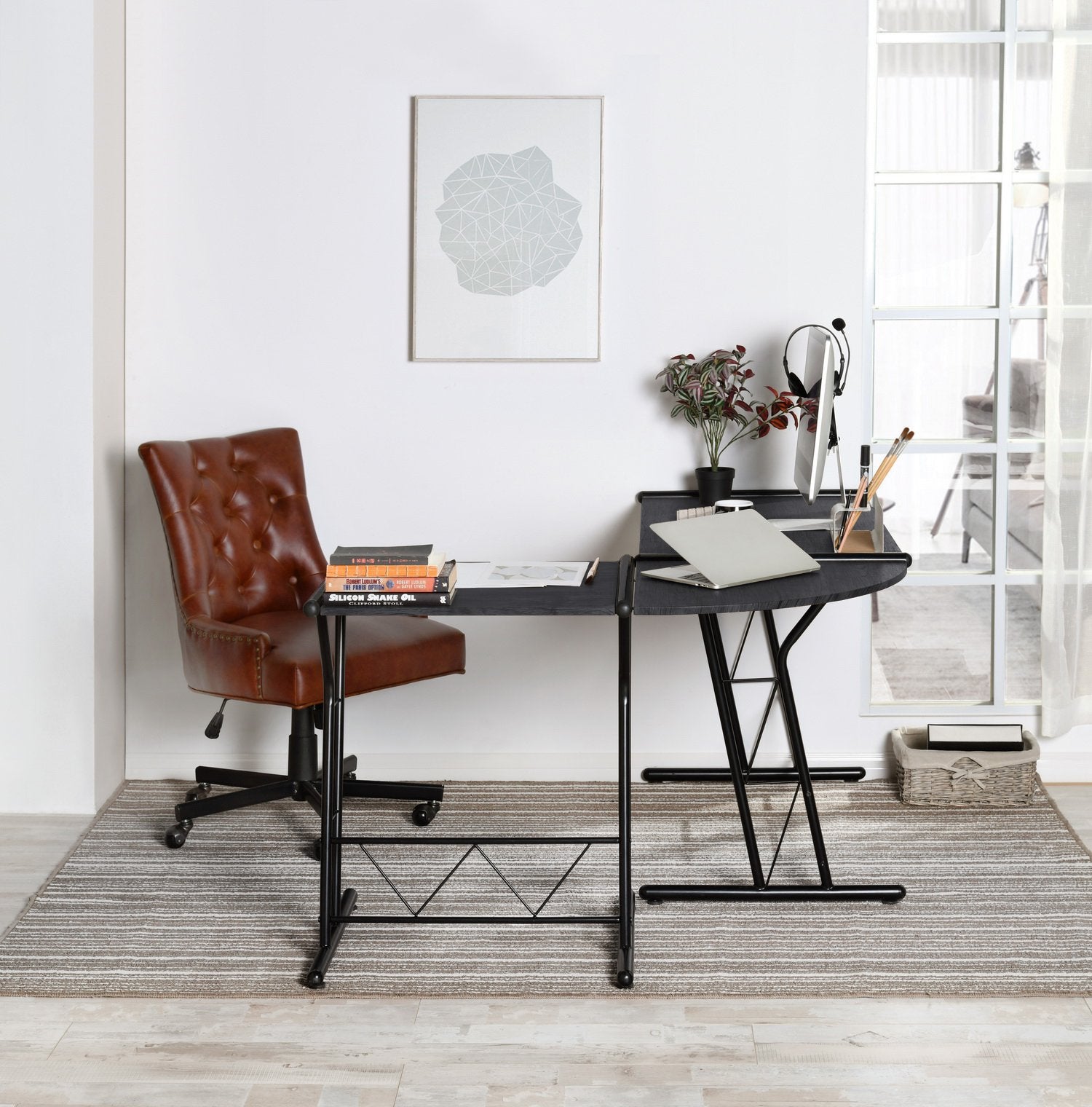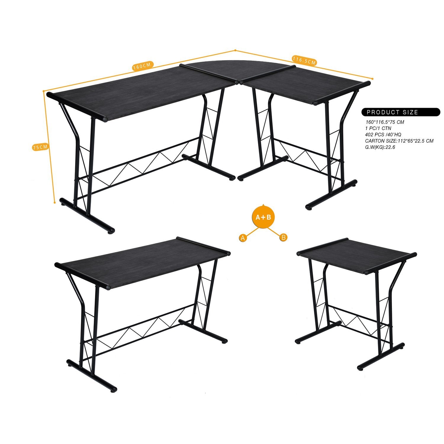 The corner computer desk gives you huge office space and improves your office efficiency. This office desk has a large office countertop to meet your full needs with different working items. At the same time, high-quality particle board countertop and solid iron frame give you a safe and stable office environment. The footpad can be adjusted to protect the ground to a certain extent and adapt to the uneven ground. You can also put it in the bedroom, game room, study room, etc. If you are looking for a computer desk, don't hesitate to buy it.