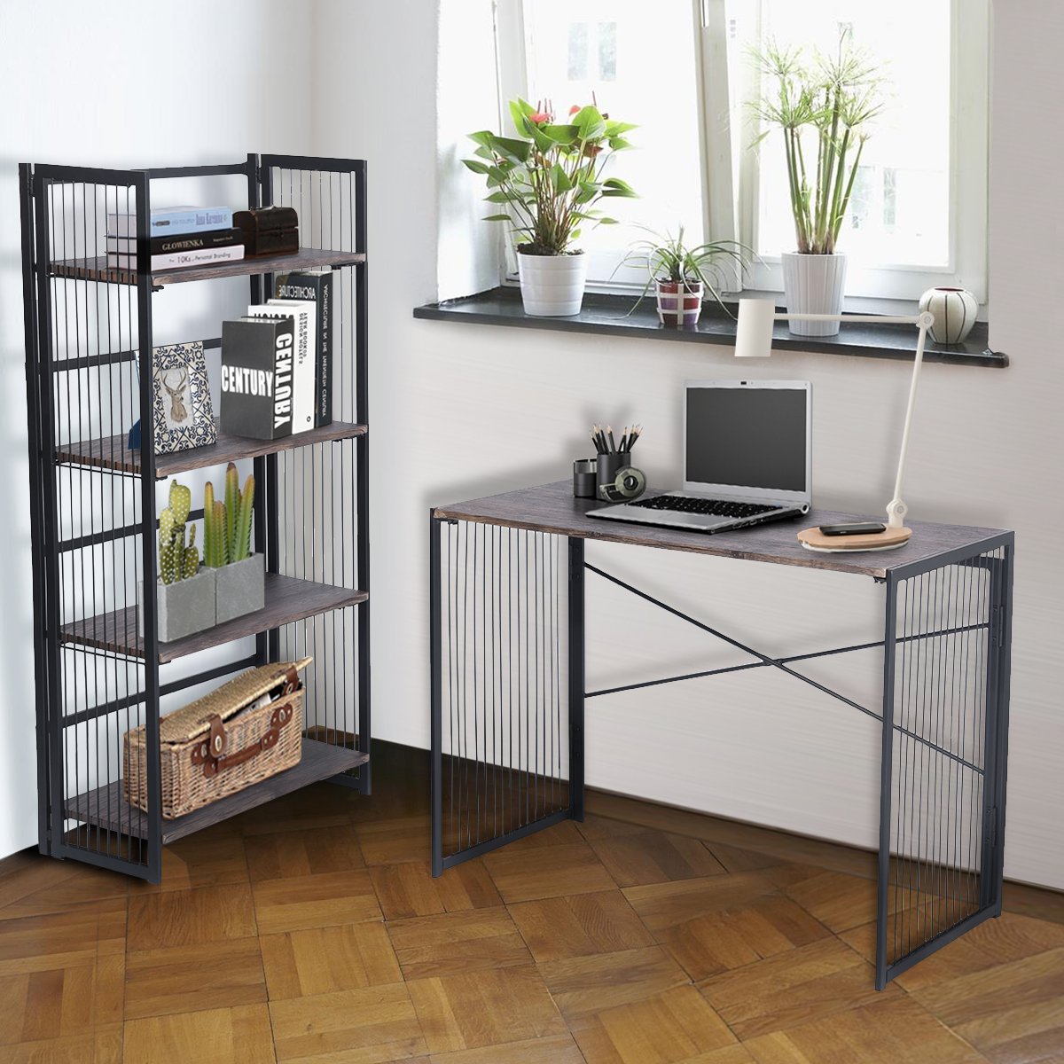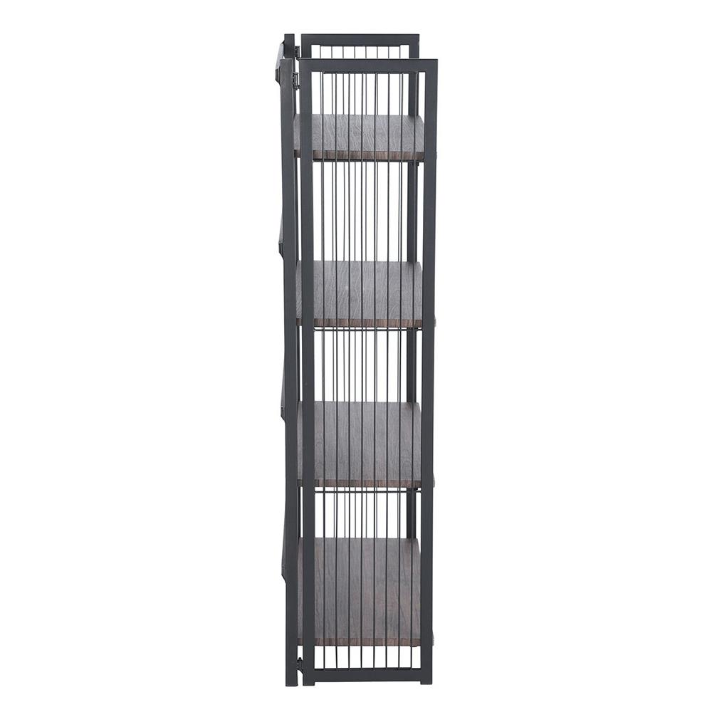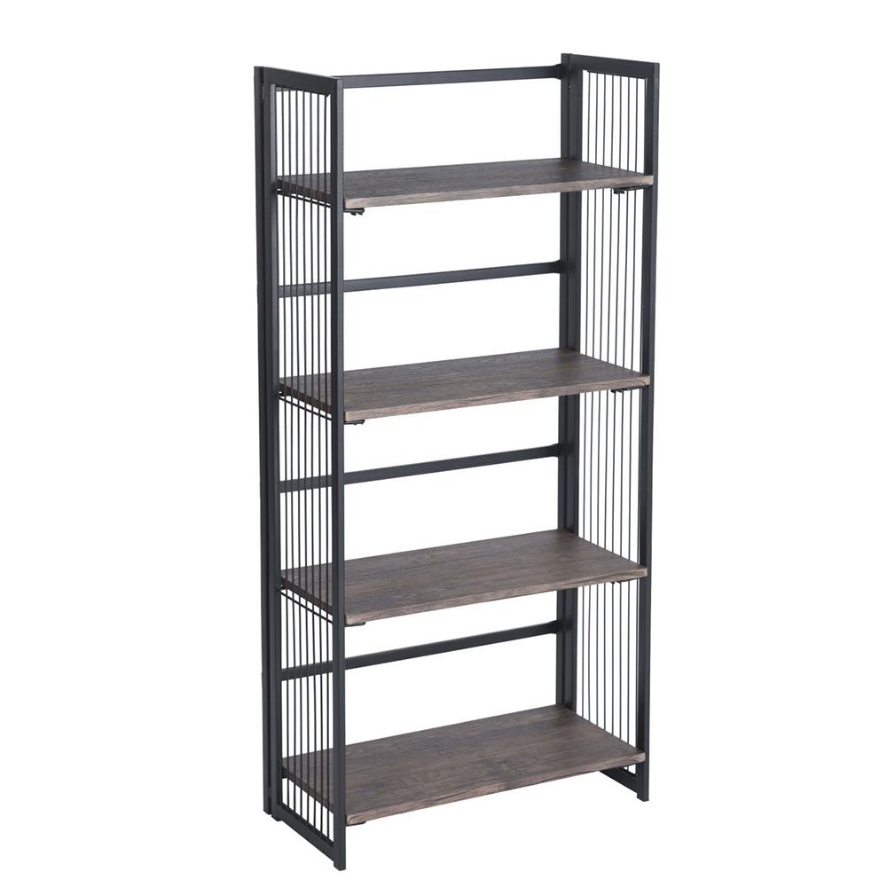 This is a handsome set of shelves for your home or office just made to hold everything from books to plants, knick-knacks, and more. It's also a fold-up shelf unit that can be easily put away when not in use. The frame is sturdy metal with black powder coating for a go-with-everything look. All four of the shelves are 15mm MDF in walnut color and nice and wide for holding lots of items. Can be used in your home office, kitchen, pantry, garage, kids rooms, or anywhere else that needs a shelving unit.