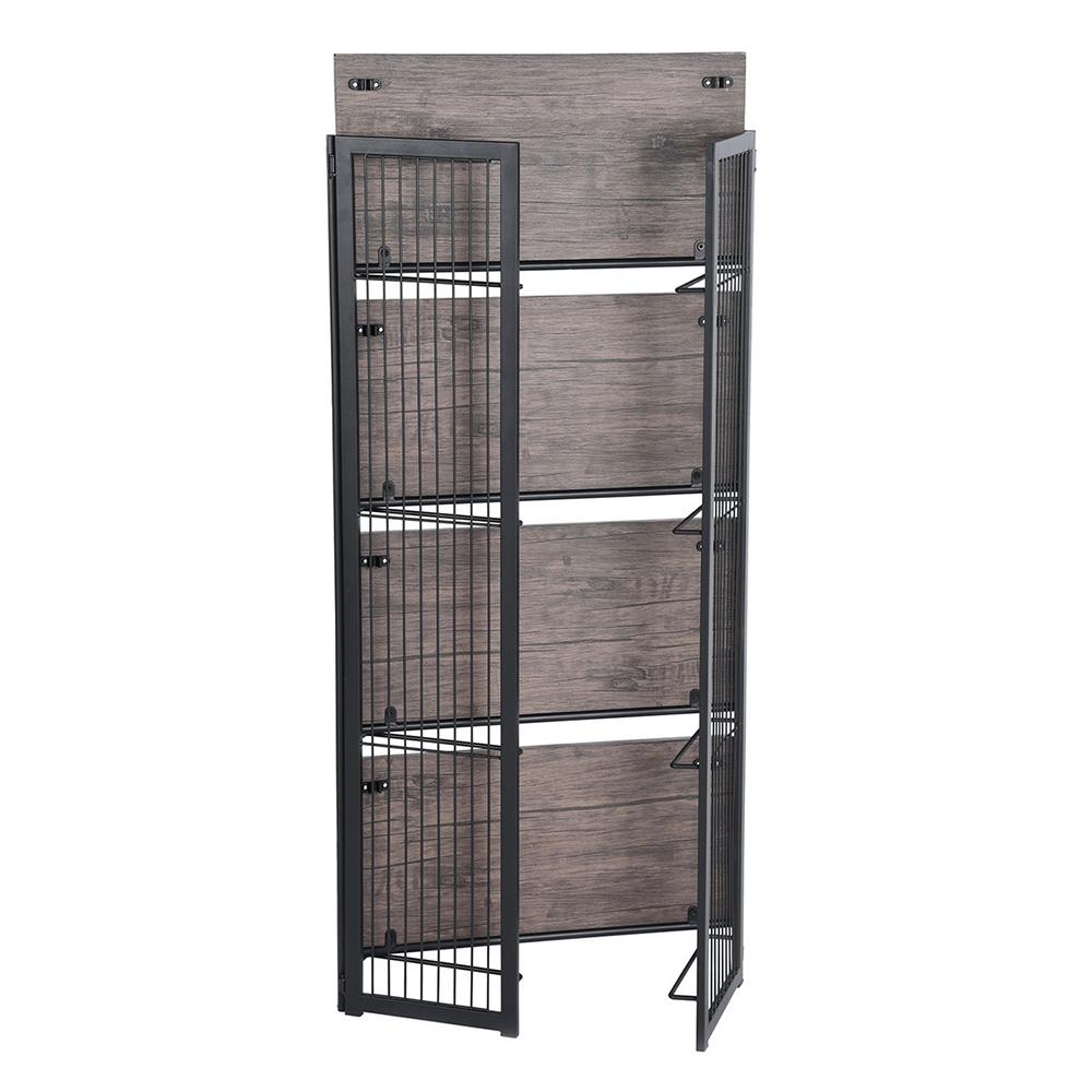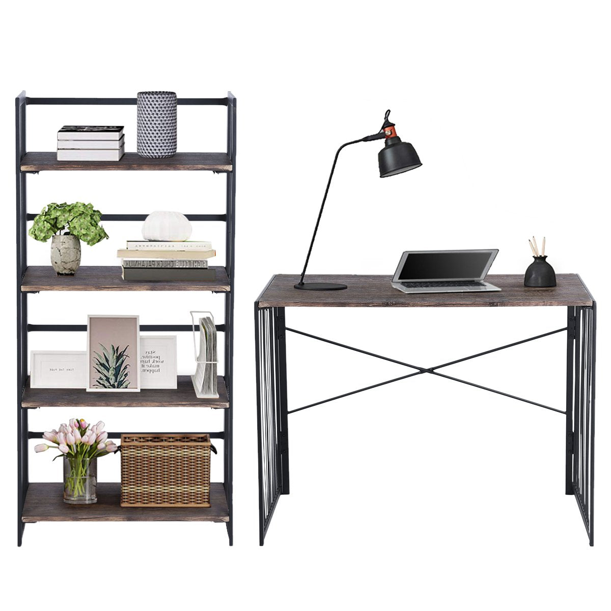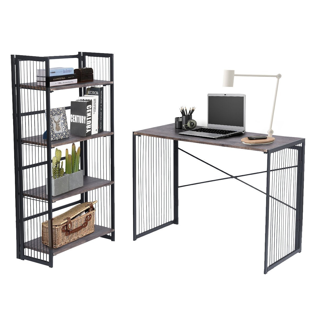 This is a handsome set of shelves for your home or office just made to hold everything from books to plants, knick-knacks, and more. It's also a fold-up shelf unit that can be easily put away when not in use. The frame is sturdy metal with black powder coating for a go-with-everything look. All four of the shelves are 15mm MDF in walnut color and nice and wide for holding lots of items. Can be used in your home office, kitchen, pantry, garage, kids rooms, or anywhere else that needs a shelving unit.