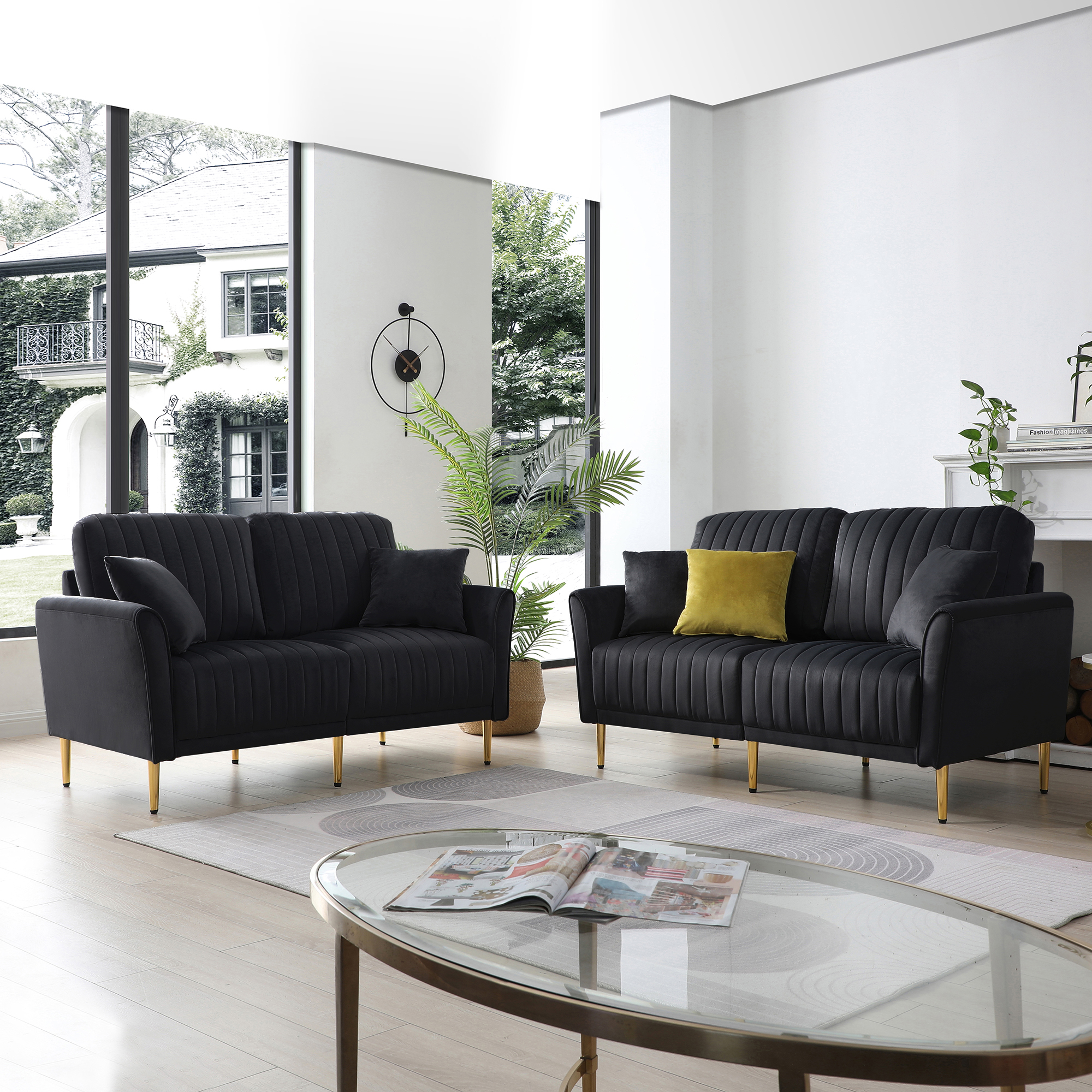 Fall back into a dream-like sofa with more than eight different combinations to make a unique home style your own, more than six color choices bring you a timeless luxury inspired home, join us and step into the warm elegance of this contemporary living space. Premium velvet cover, handcrafted channel tufting and opulent metal legs unite to evoke a feeling of monumental luxury.