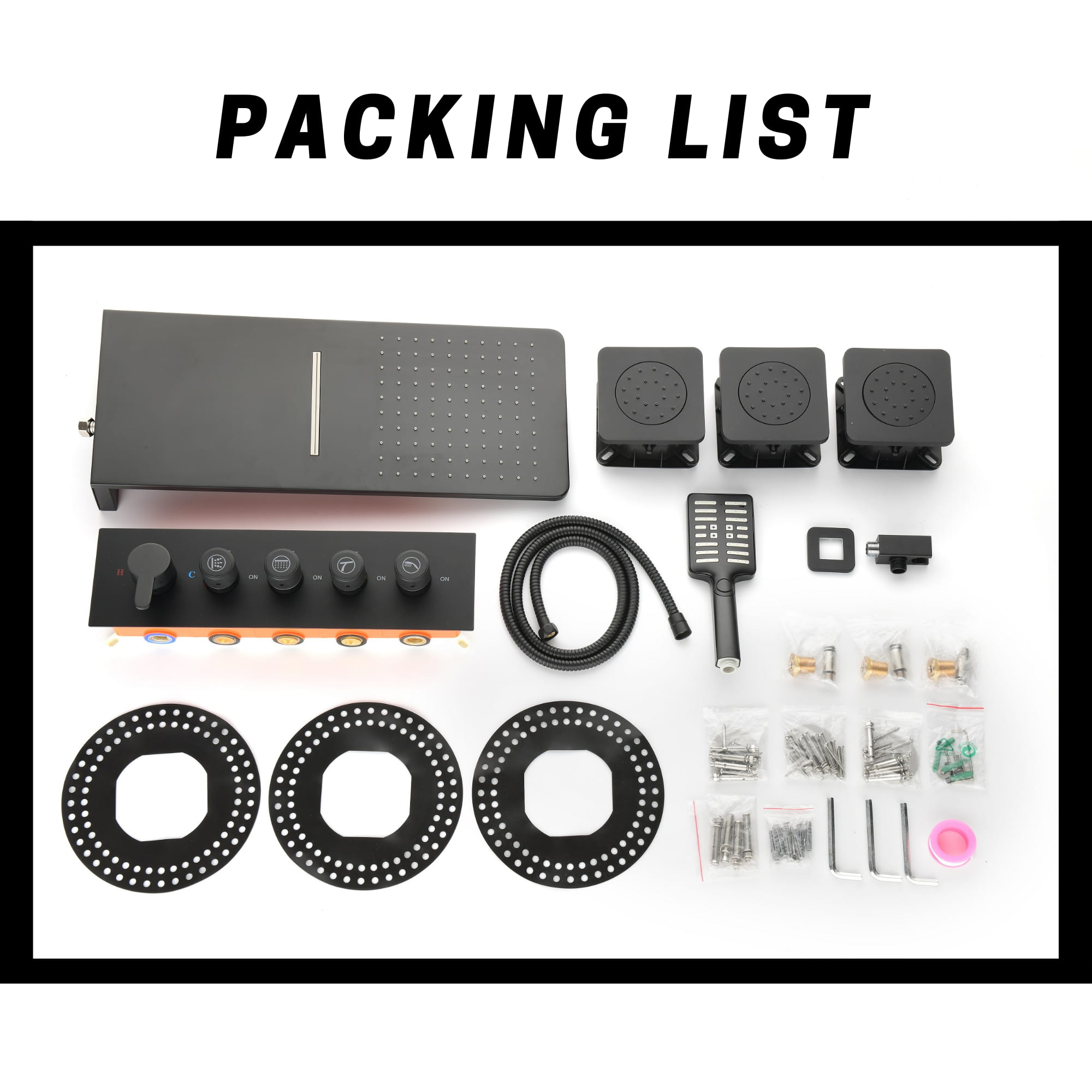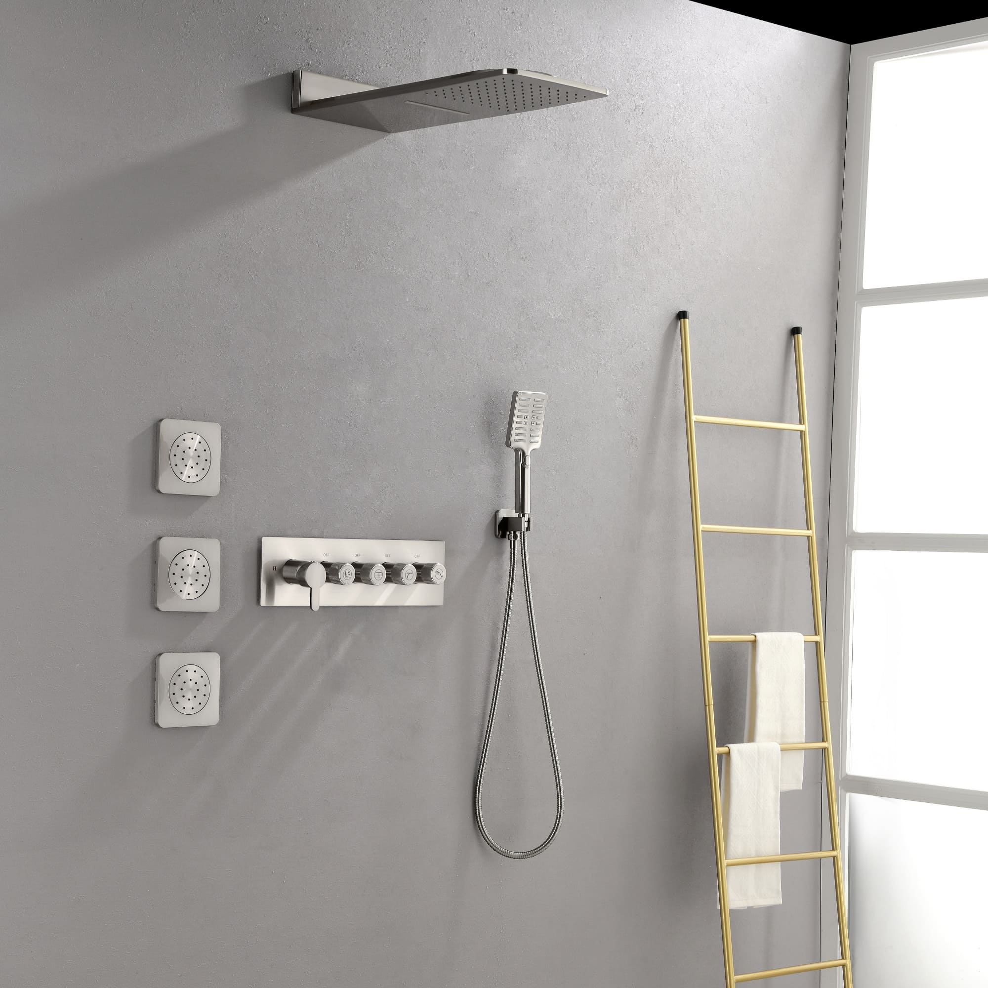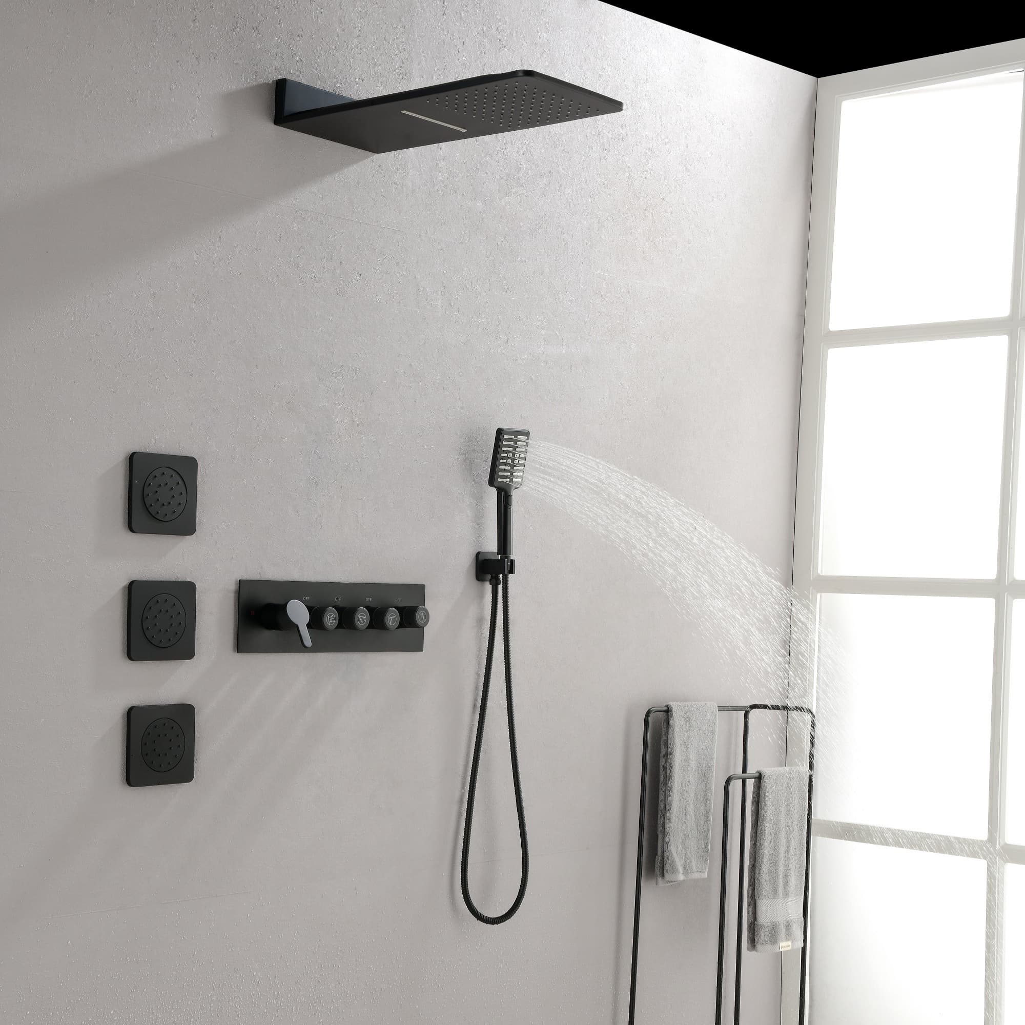 Multiple Functions: Dual functional waterfall rain shower head offers a wide radius of full rain and waterfall spray on your skin, hand shower for targeted cleaning and washing, three spray jets for body massage.