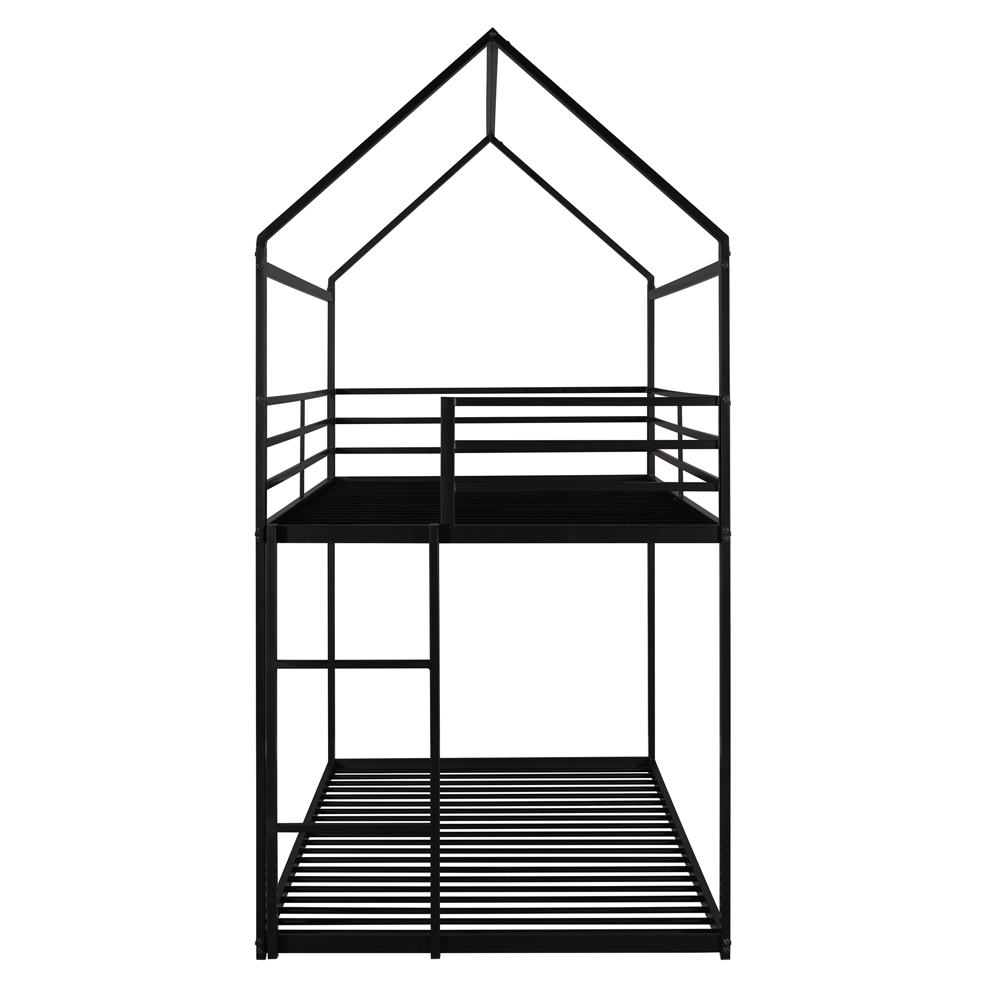This house bunk bed have Safety, and a stylish compact design, This bunk bed is the perfect fit for kids Teens, The lower bunk sits directly on the floor while 2 guardrails are included for the top bunk, recommended for 6-year-olds and up. A fixed ladder keeps the footprint compact, while the contemporary ship lap design creates a classic, clean look. Twin over twin bunk bed with bed slats; no box spring necessary. Requires two twin mattresses;please note the Mattress is not included. Assembly required.