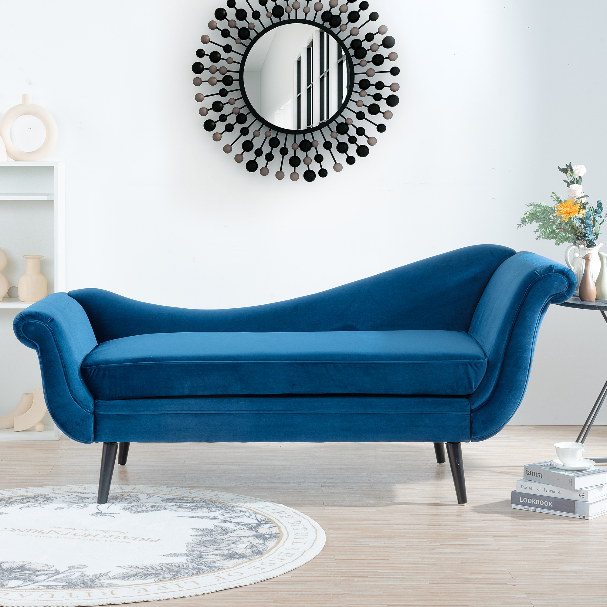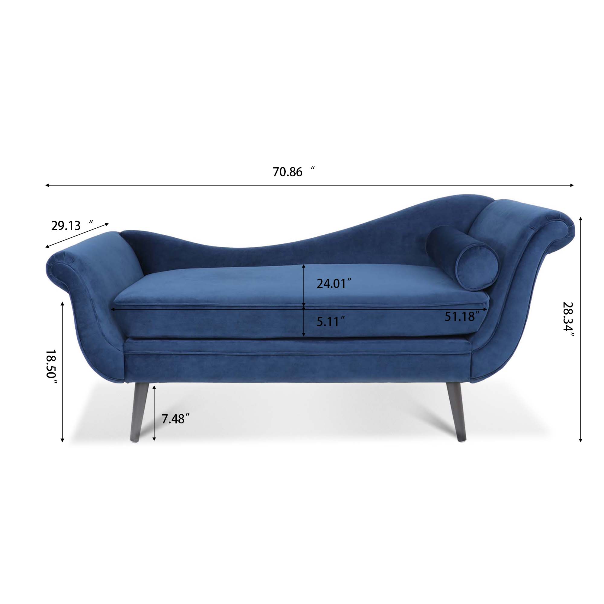 Accent the corner of your living room or den with a luxurious atmosphere that will have you feeling like royalty in your own home. Featuring beautifully scrolled arms and a recessed backrest, this lounge is the perfect conversation piece. Our chaise lounge is finished with splayed tapered legs, making this an elegant addition to your decor. Whether you are looking to upgrade your entryway or accentuate your favorite window with comfortable seating, this chaise lounge offers a classic yet modern feel.