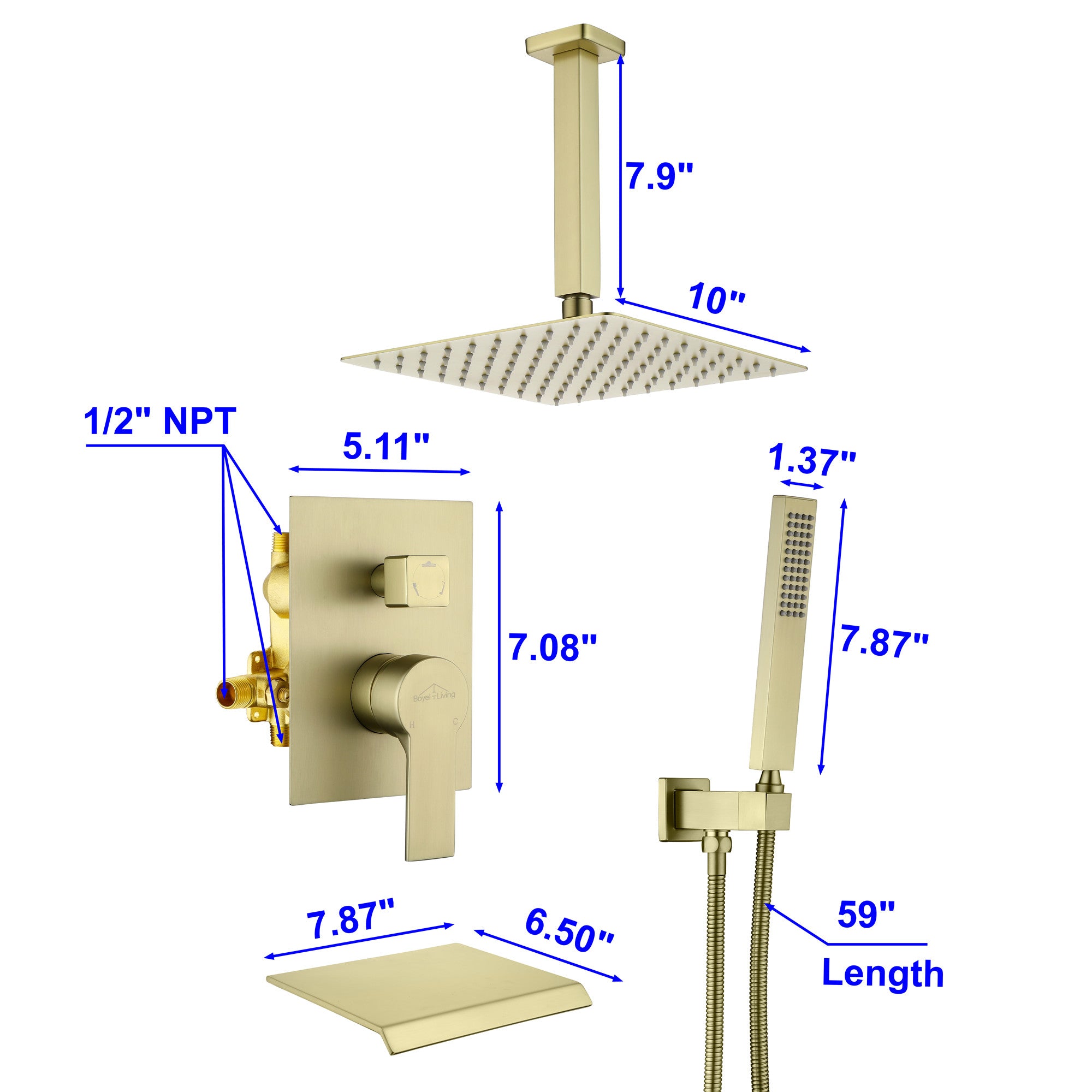 - 3-Function In 1 Knob Design: Just simply switch the diverter knob to select 10 inches shower head, hand shower, or tub spout to start your wonderful & relaxed shower.