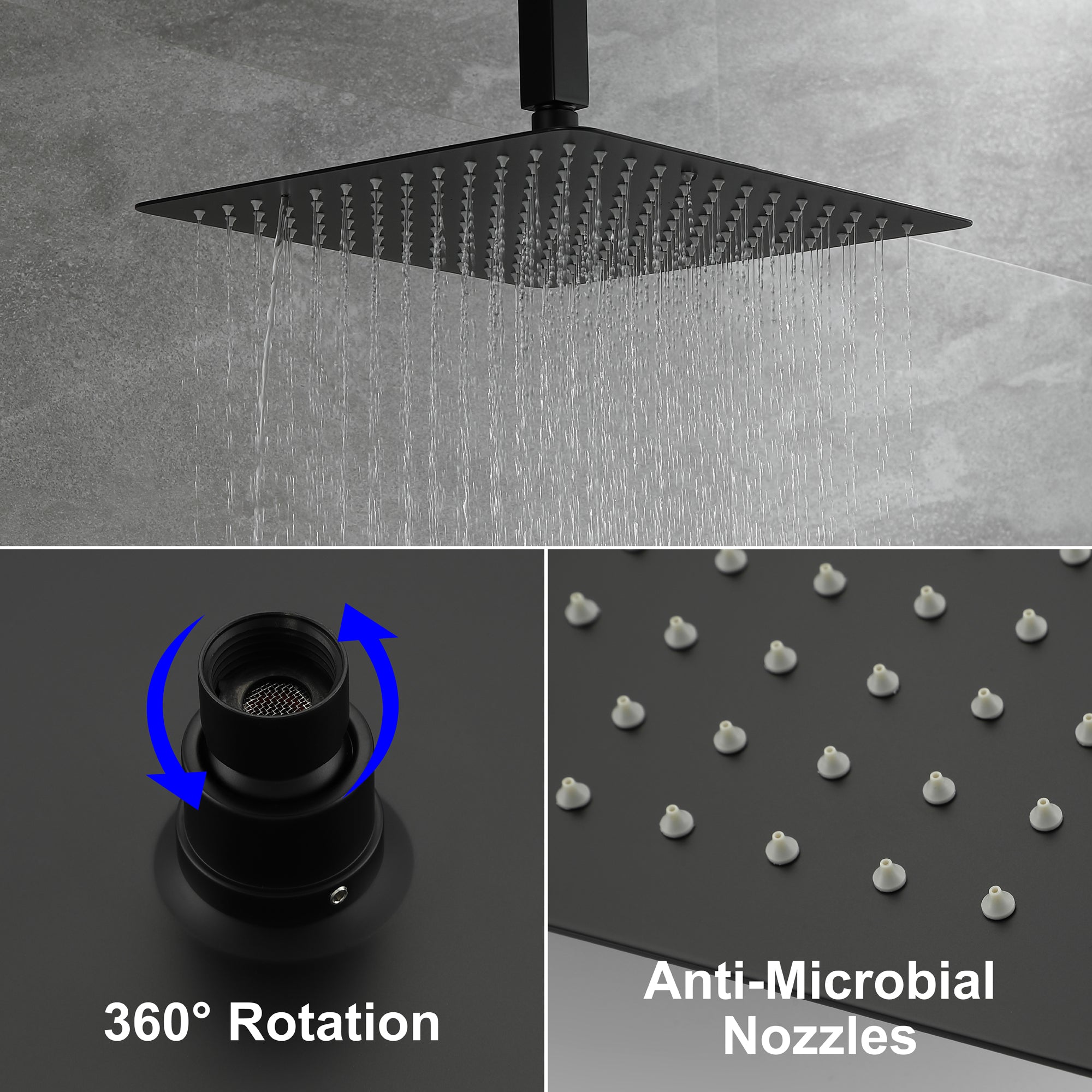 - 3-Function In 1 Knob Design: Just simply switch the diverter knob to select 12 inches shower head, hand shower, or tub spout to start your wonderful & relaxing shower.