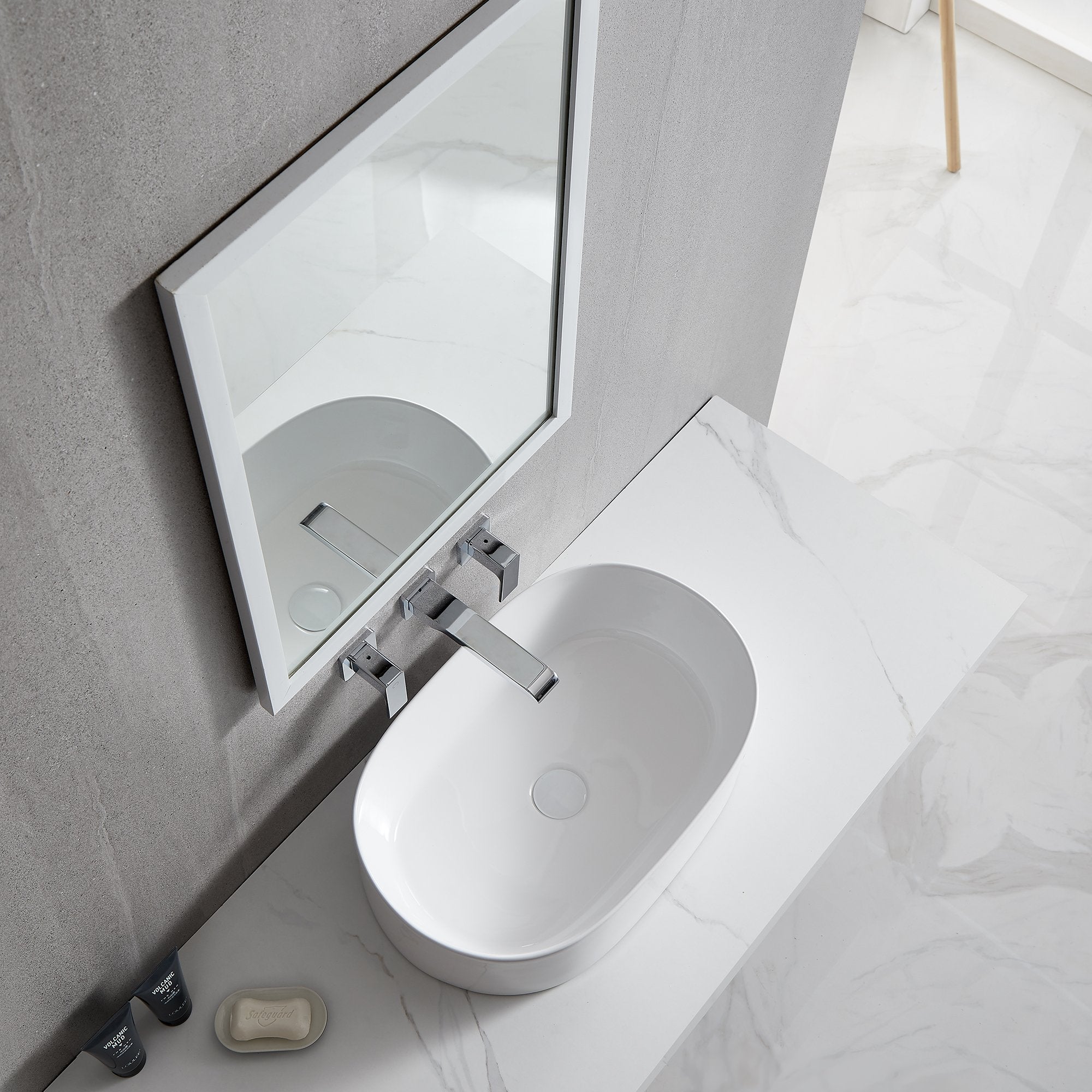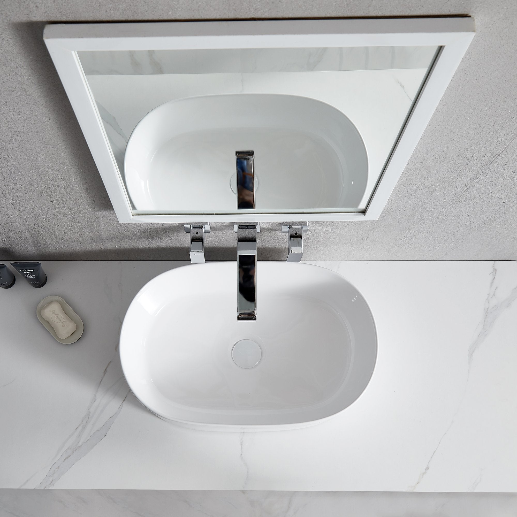 Ceramic Oval Above Counter White Bathroom Sink Art Basin