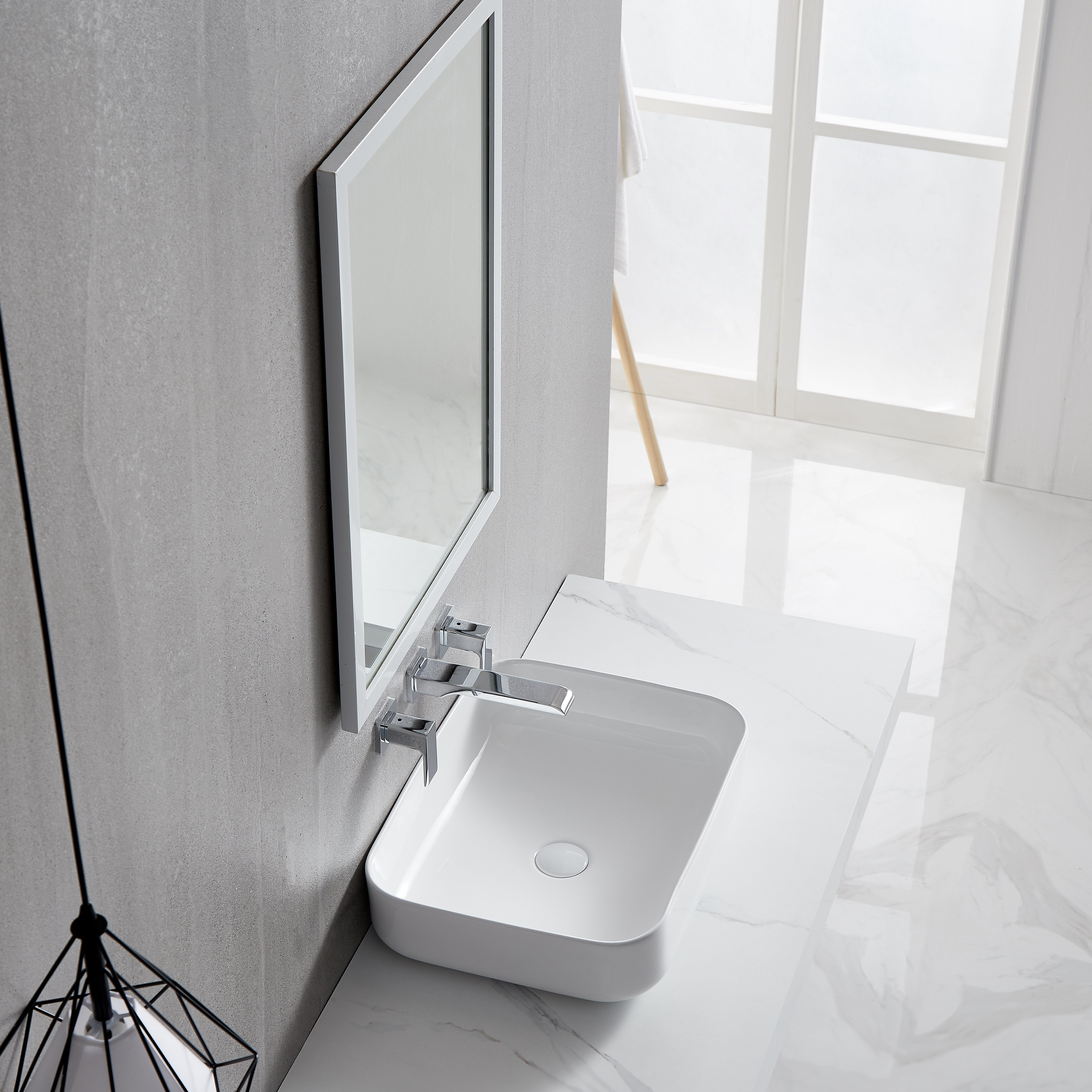 Ceramic Rectangular Above Counter White Bathroom Sink Art Basin